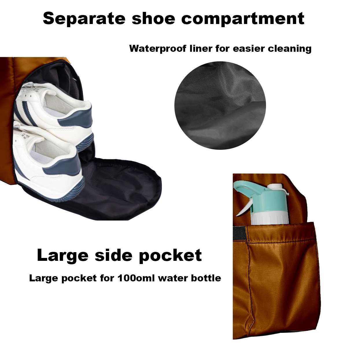 <p>Multifunctional Gym Travel Bag Made of Twill Fabric 22cm x 48cm x 35cm (8.7in x 18.9in x 13.8in) Made of lightweight and durable twill fabric, this bag is perfect for an active lifestyle. The spacious main compartment easily holds clothing, towels, and a full set of gym gear. A smart pocket precisely stores your phone, earphones, and gym membership card. A ventilated shoe compartment can hold size 10 athletic shoes, and a waterproof wet bag isolates swimwear or sweaty clothing, effectively preventing odors and clutter. It's a professional gym bag suitable for spinning and strength training, a stylish everyday handbag, and can also meet diverse needs such as pickleball, weekend trips, and overnight stays. Combining functionality and style, it seamlessly integrates into various scenarios.<br></p>