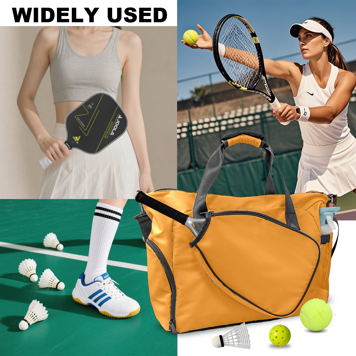 Lightweight Pickleball Tote Bag with Large Capacity, Shoe Compartment, Large Paddle Storage, Water Bottle Holder & Fence Hook for Women & Men Orange1