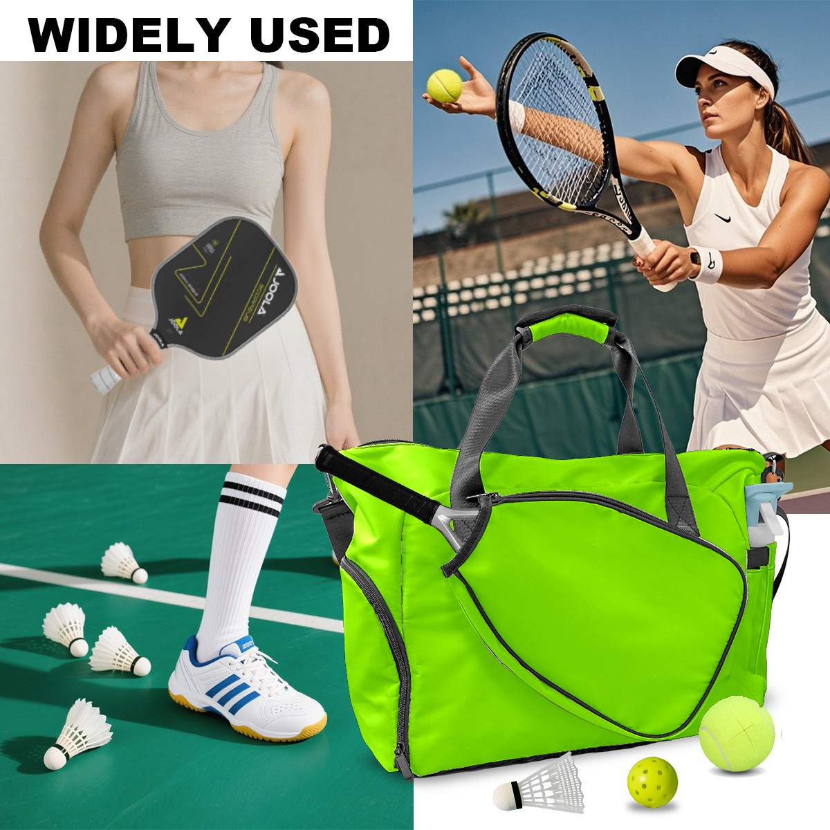 Lightweight Pickleball Tote Bag with Large Capacity, Shoe Compartment, Large Paddle Storage, Water Bottle Holder & Fence Hook for Women & Men Green 1