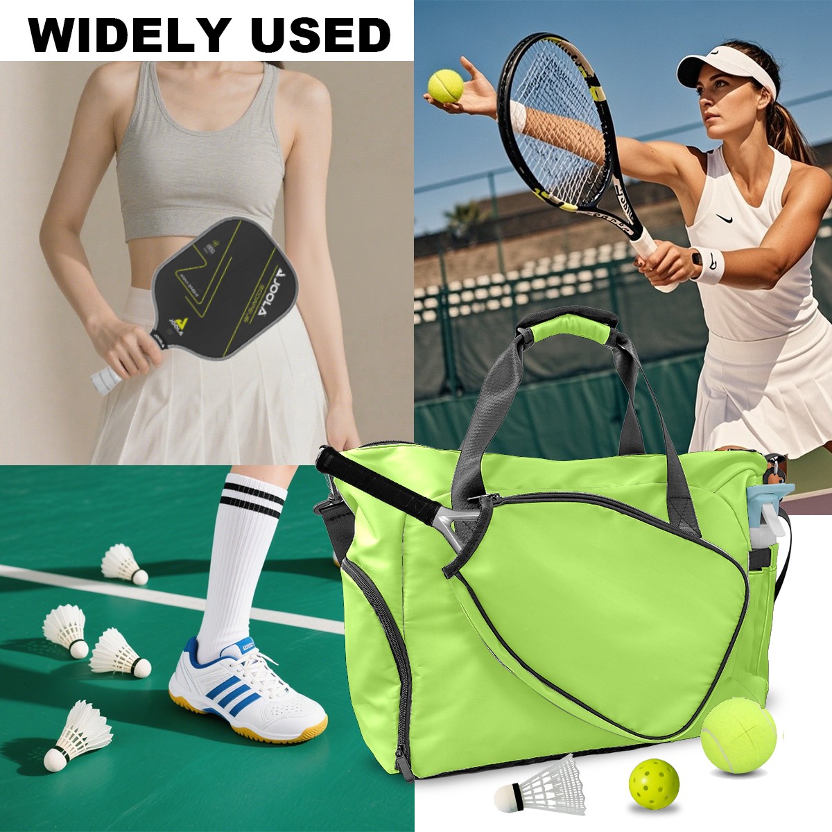 Lightweight Pickleball Tote Bag with Large Capacity, Shoe Compartment, Large Paddle Storage, Water Bottle Holder & Fence Hook for Women & Men Green