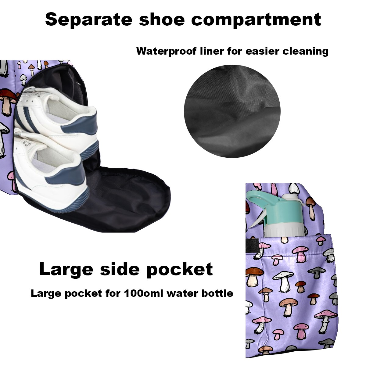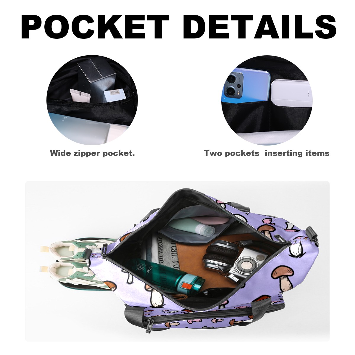 • <p>Multifunctional Gym Travel Bag Made of Twill Fabric 22cm x 48cm x 35cm (8.7in x 18.9in x 13.8in) Made of lightweight and durable twill fabric, this bag is perfect for an active lifestyle. The spacious main compartment easily holds clothing, towels, and a full set of gym gear. A smart pocket precisely stores your phone, earphones, and gym membership card. A ventilated shoe compartment can hold size 10 athletic shoes, and a waterproof wet bag isolates swimwear or sweaty clothing, effectively preventing odors and clutter. It's a professional gym bag suitable for spinning and strength training, a stylish everyday handbag, and can also meet diverse needs such as pickleball, weekend trips, and overnight stays. Combining functionality and style, it seamlessly integrates into various scenarios.<br></p>