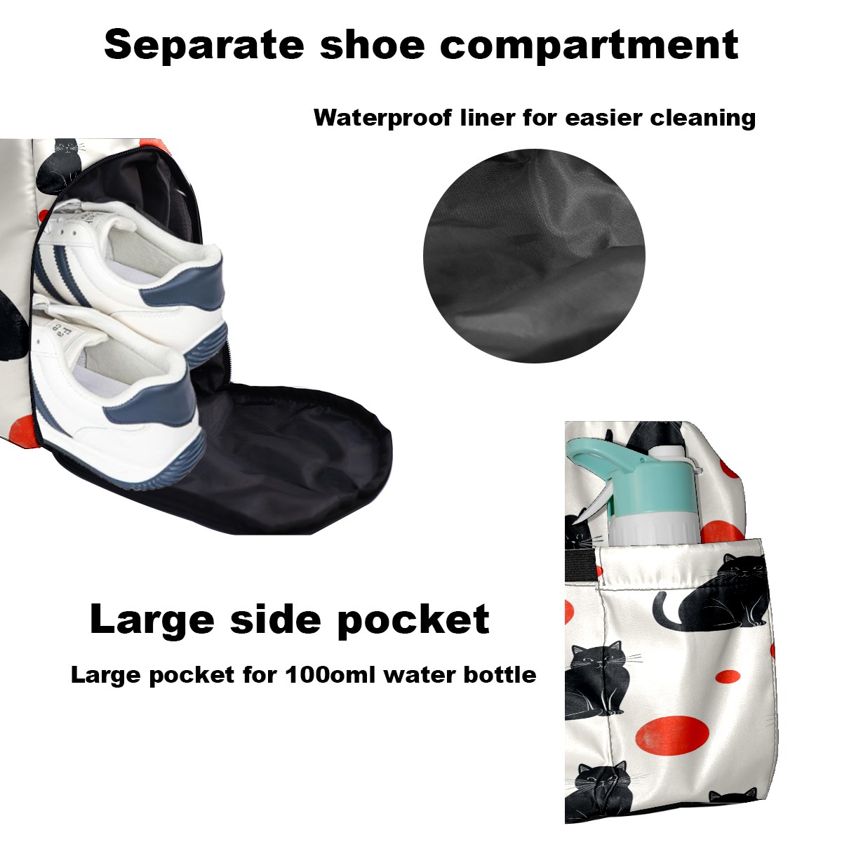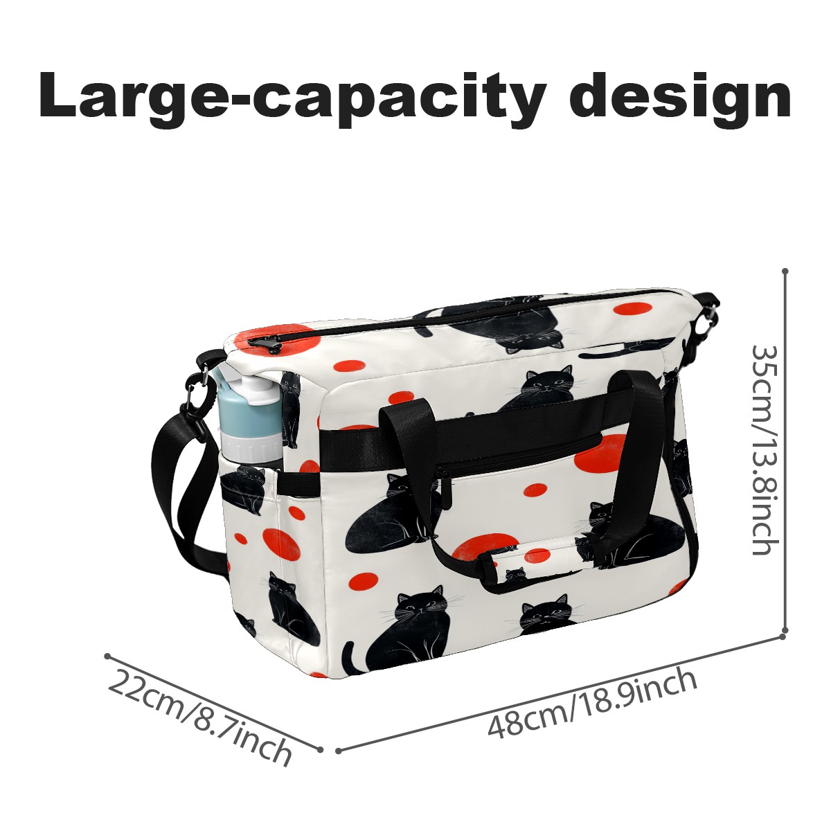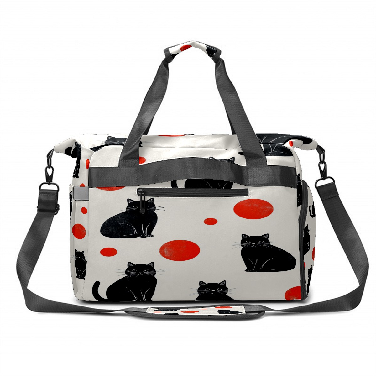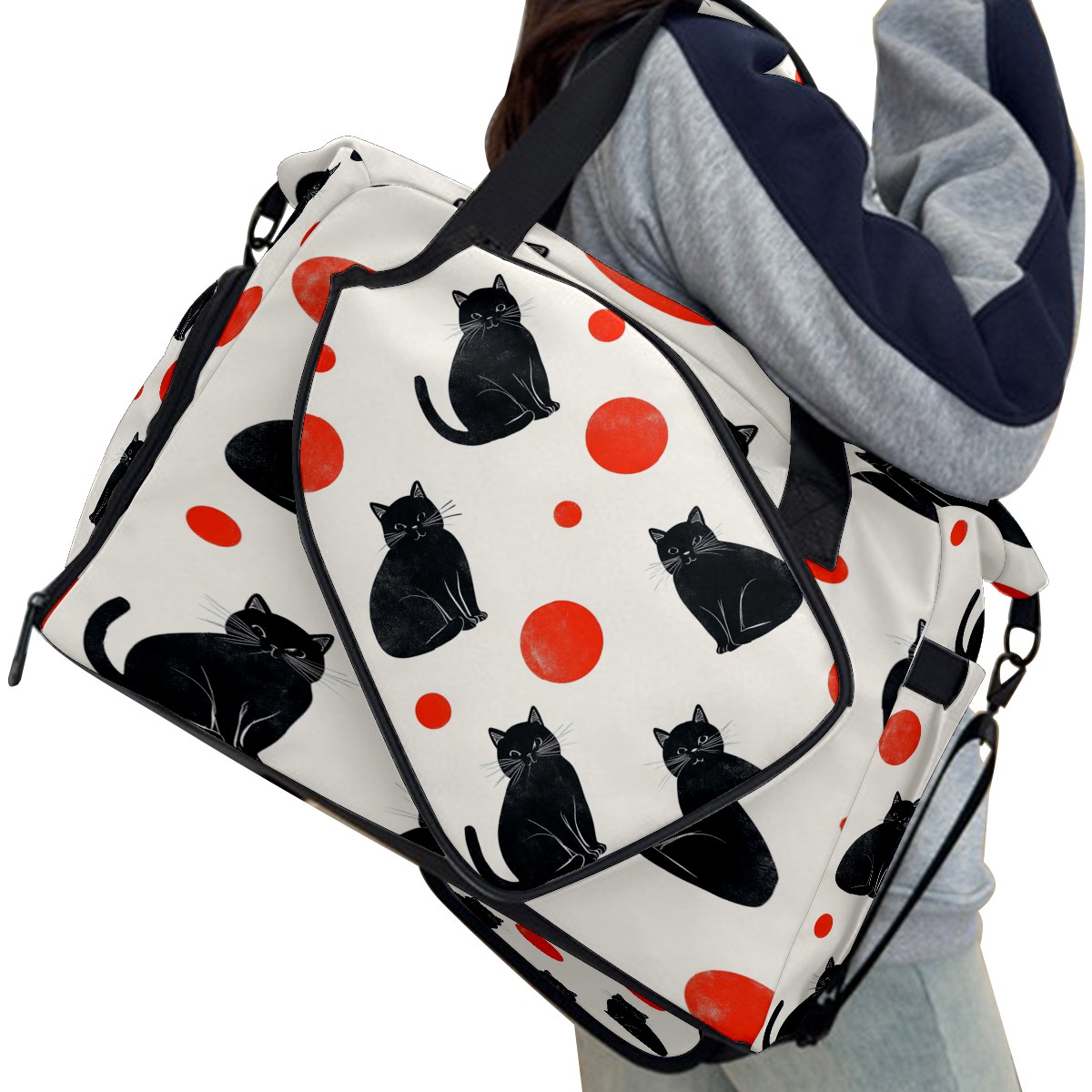 Lightweight Pickleball Tote Bag with Large Capacity, Shoe Compartment, Large Paddle Storage, Water Bottle Holder & Fence Hook for Women & Men Black Cats Red Dots