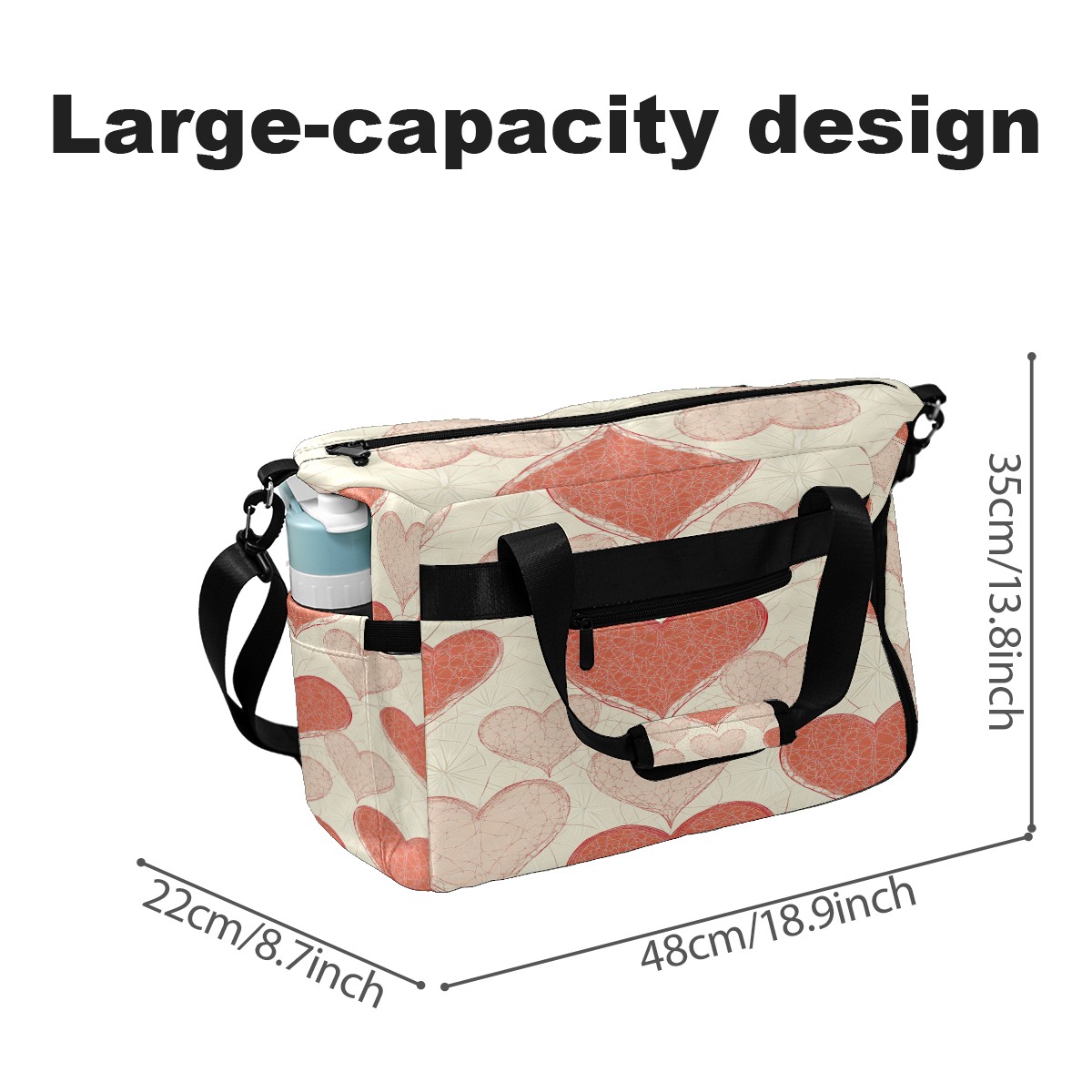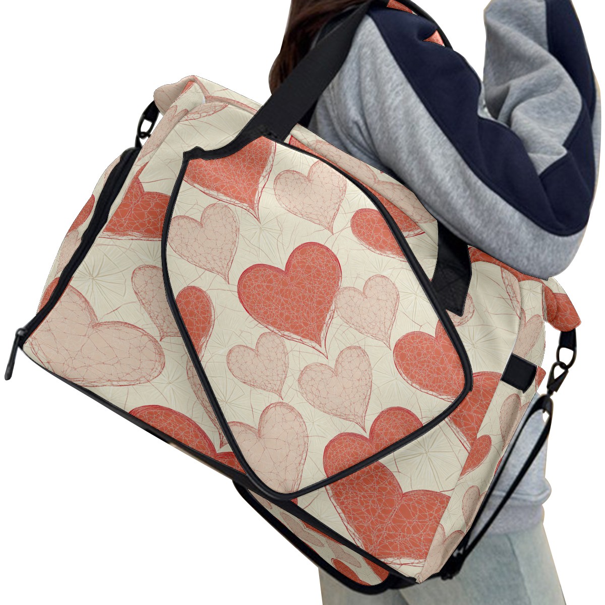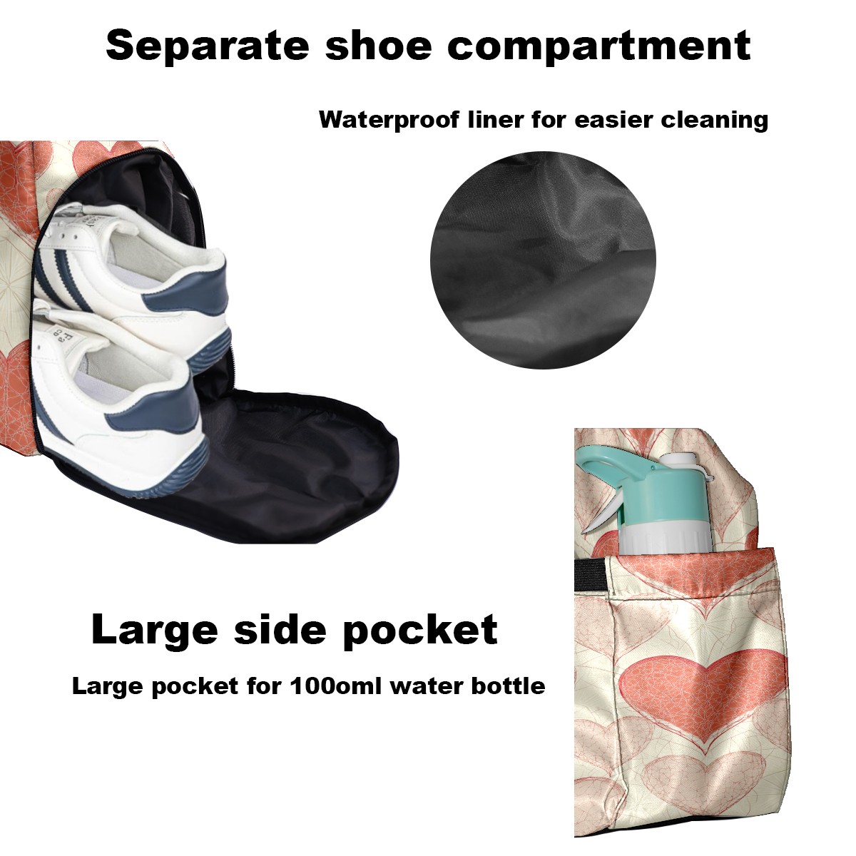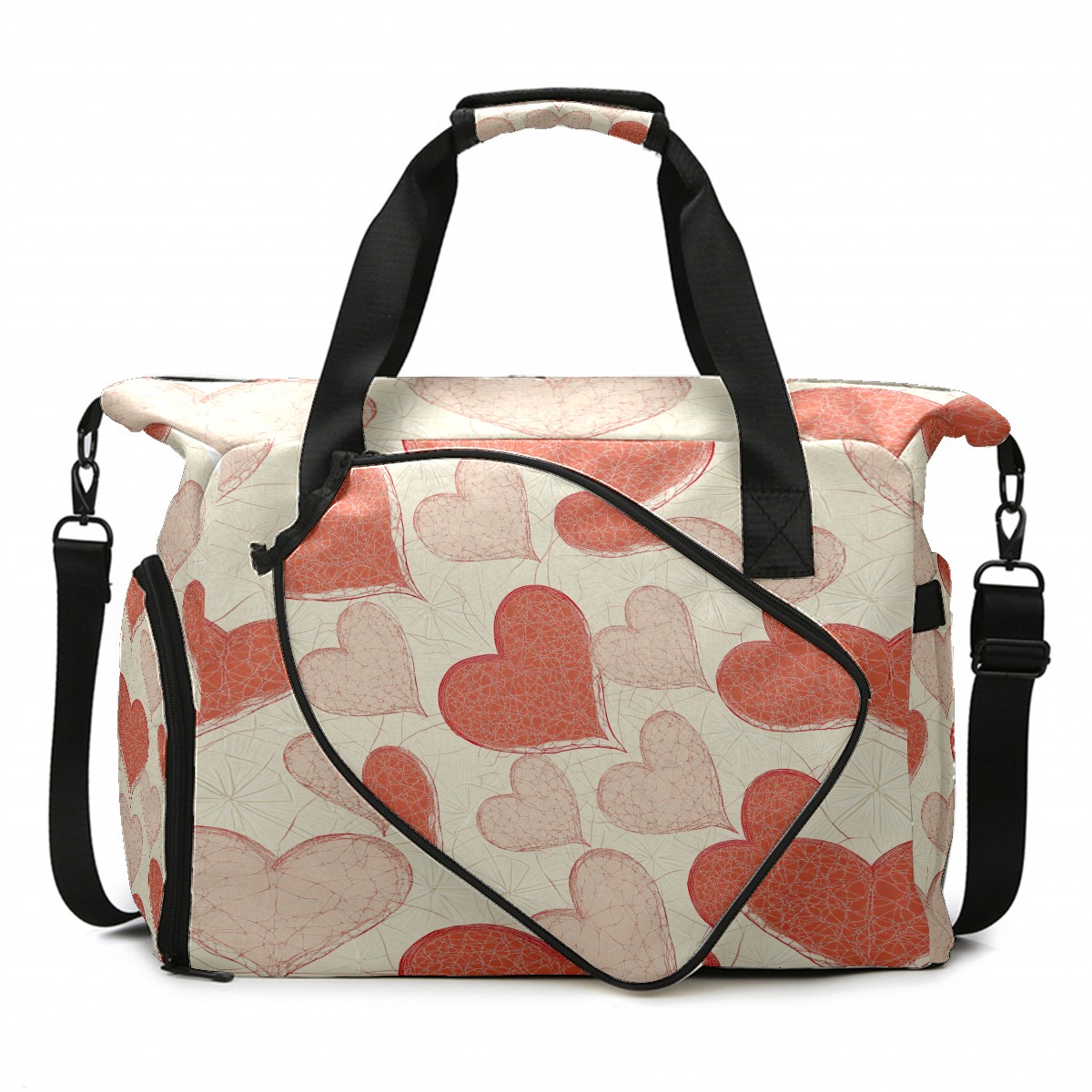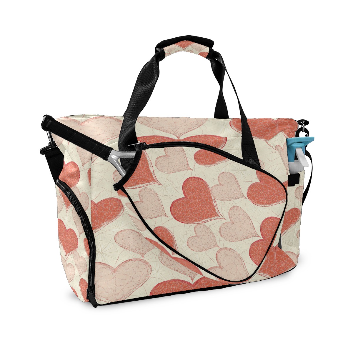 Lightweight Pickleball Tote Bag with Large Capacity, Shoe Compartment, Large Paddle Storage, Water Bottle Holder & Fence Hook for Women & Men Pale Pink Hearts