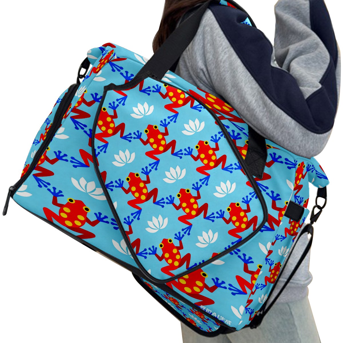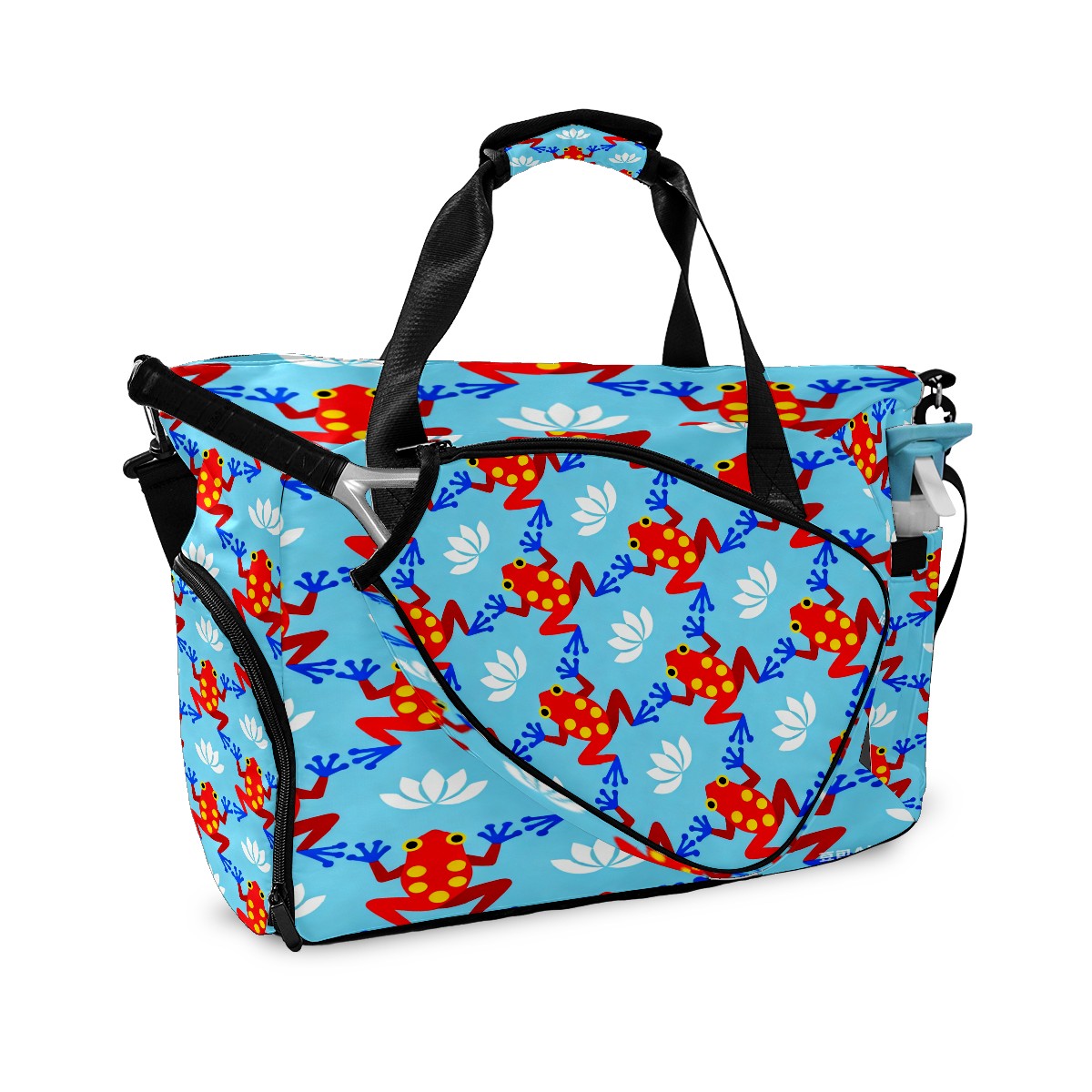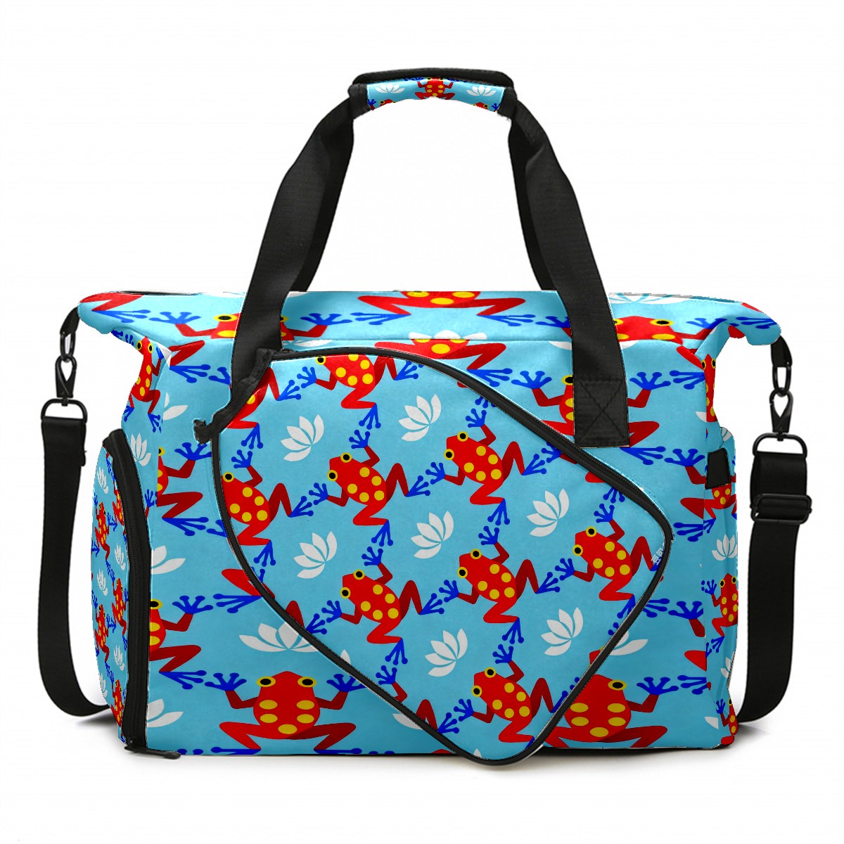 Lightweight Pickleball Tote Bag with Large Capacity, Shoe Compartment, Large Paddle Storage, Water Bottle Holder & Fence Hook for Women & Men Red Frog Pattern