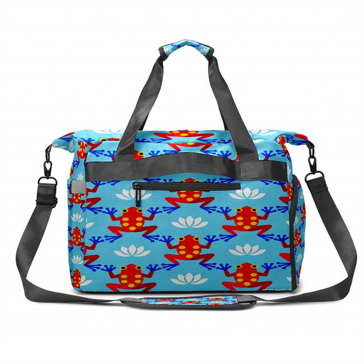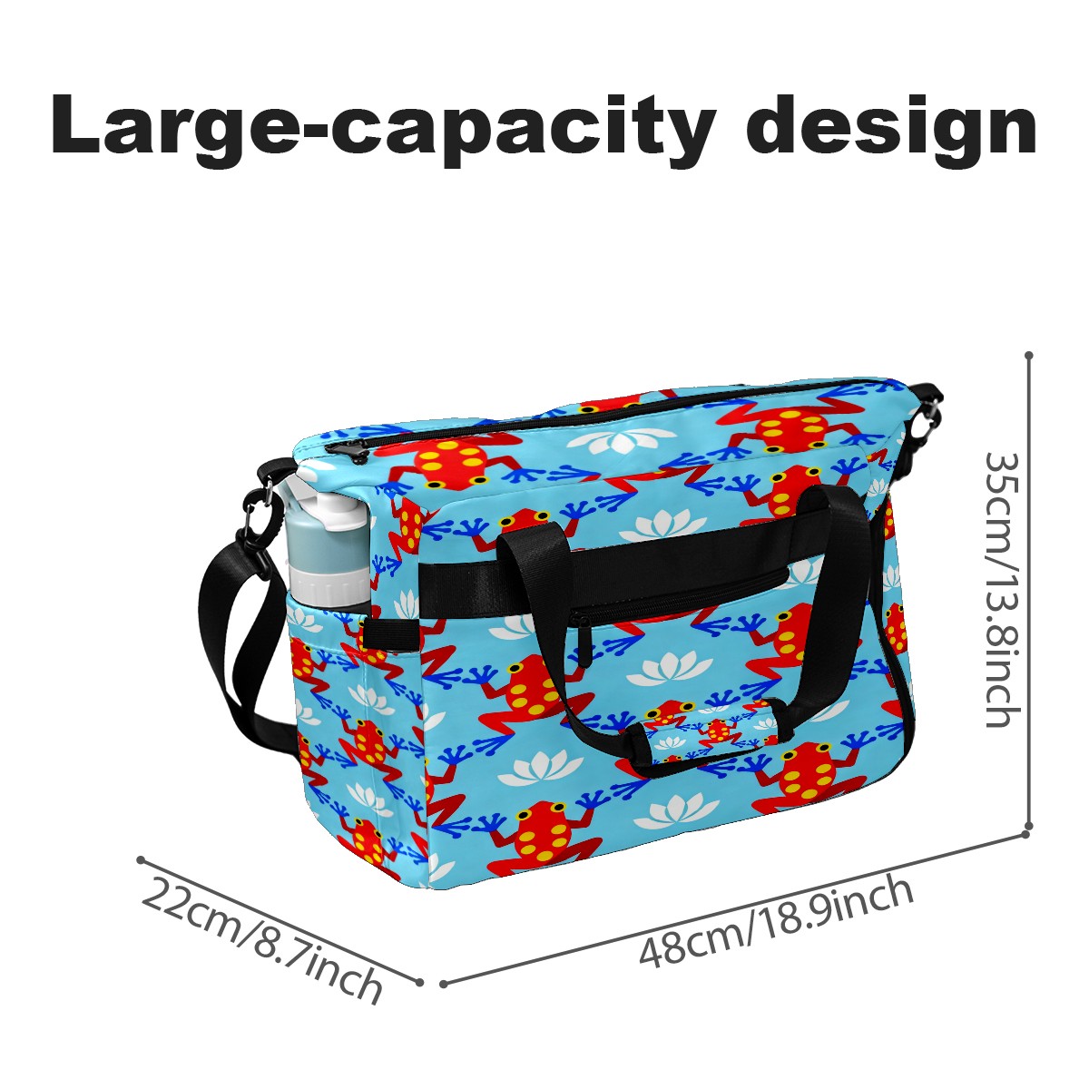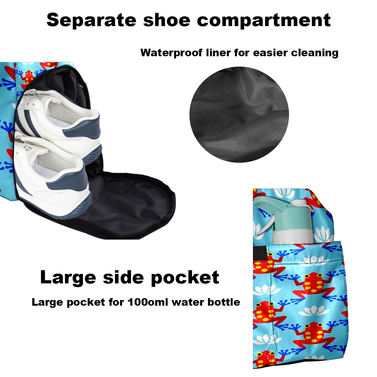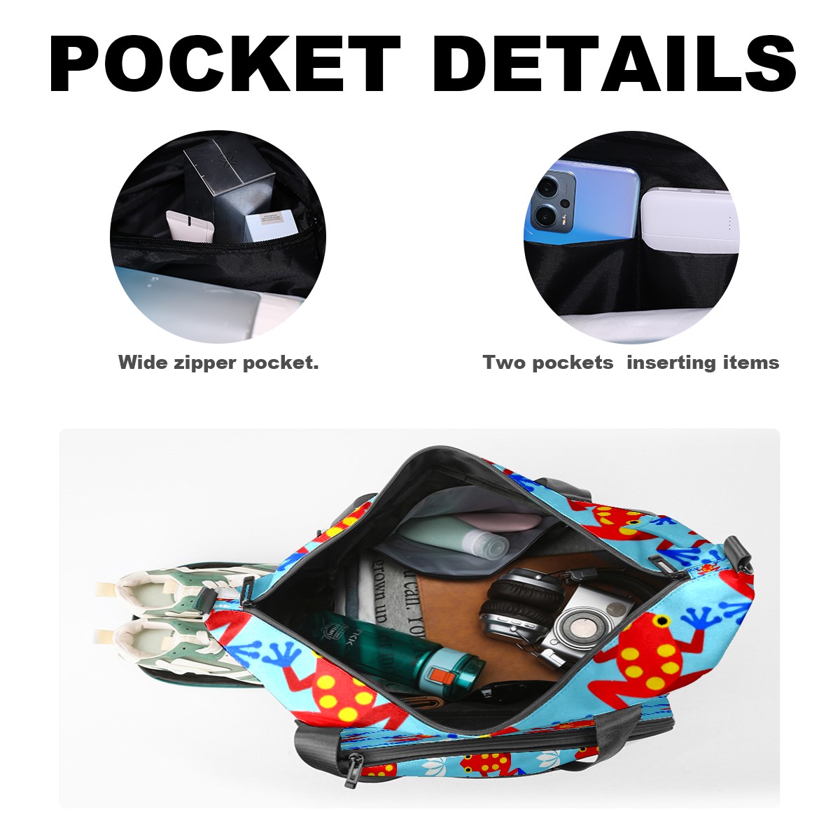 Lightweight Pickleball Tote Bag with Large Capacity, Shoe Compartment, Large Paddle Storage, Water Bottle Holder & Fence Hook for Women & Men Red Frog Pattern