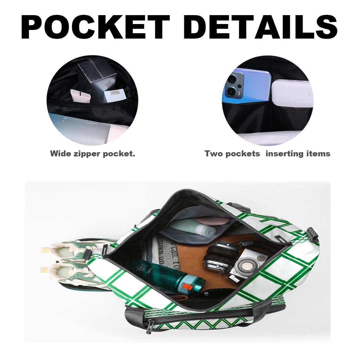 • <p>Multifunctional Gym Travel Bag Made of Twill Fabric 22cm x 48cm x 35cm (8.7in x 18.9in x 13.8in) Made of lightweight and durable twill fabric, this bag is perfect for an active lifestyle. The spacious main compartment easily holds clothing, towels, and a full set of gym gear. A smart pocket precisely stores your phone, earphones, and gym membership card. A ventilated shoe compartment can hold size 10 athletic shoes, and a waterproof wet bag isolates swimwear or sweaty clothing, effectively preventing odors and clutter. It's a professional gym bag suitable for spinning and strength training, a stylish everyday handbag, and can also meet diverse needs such as pickleball, weekend trips, and overnight stays. Combining functionality and style, it seamlessly integrates into various scenarios.<br></p>