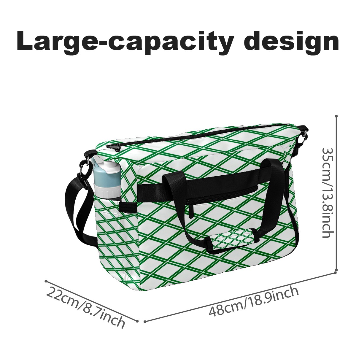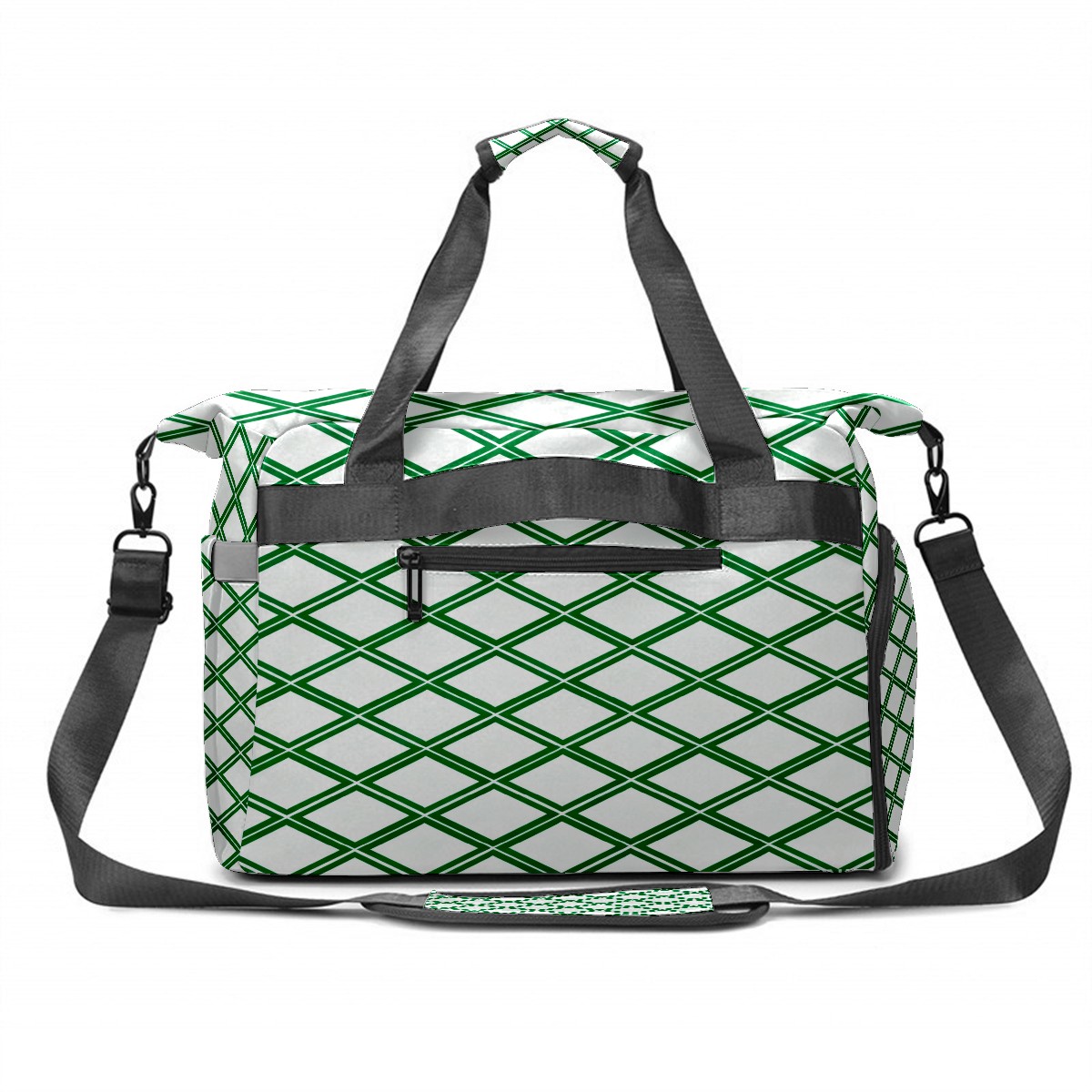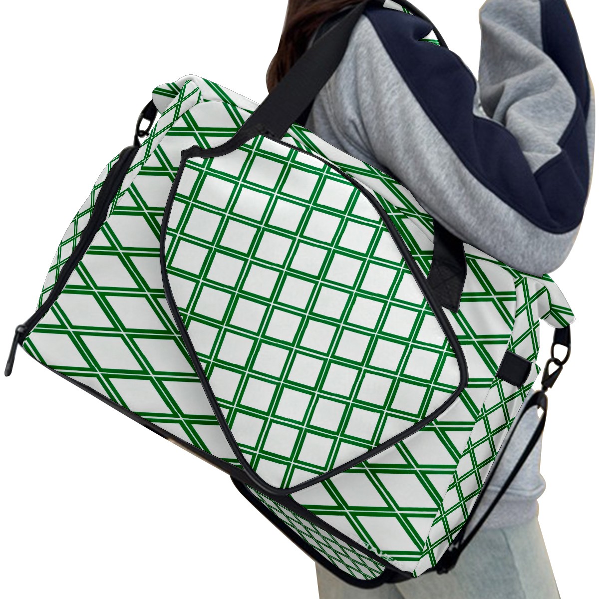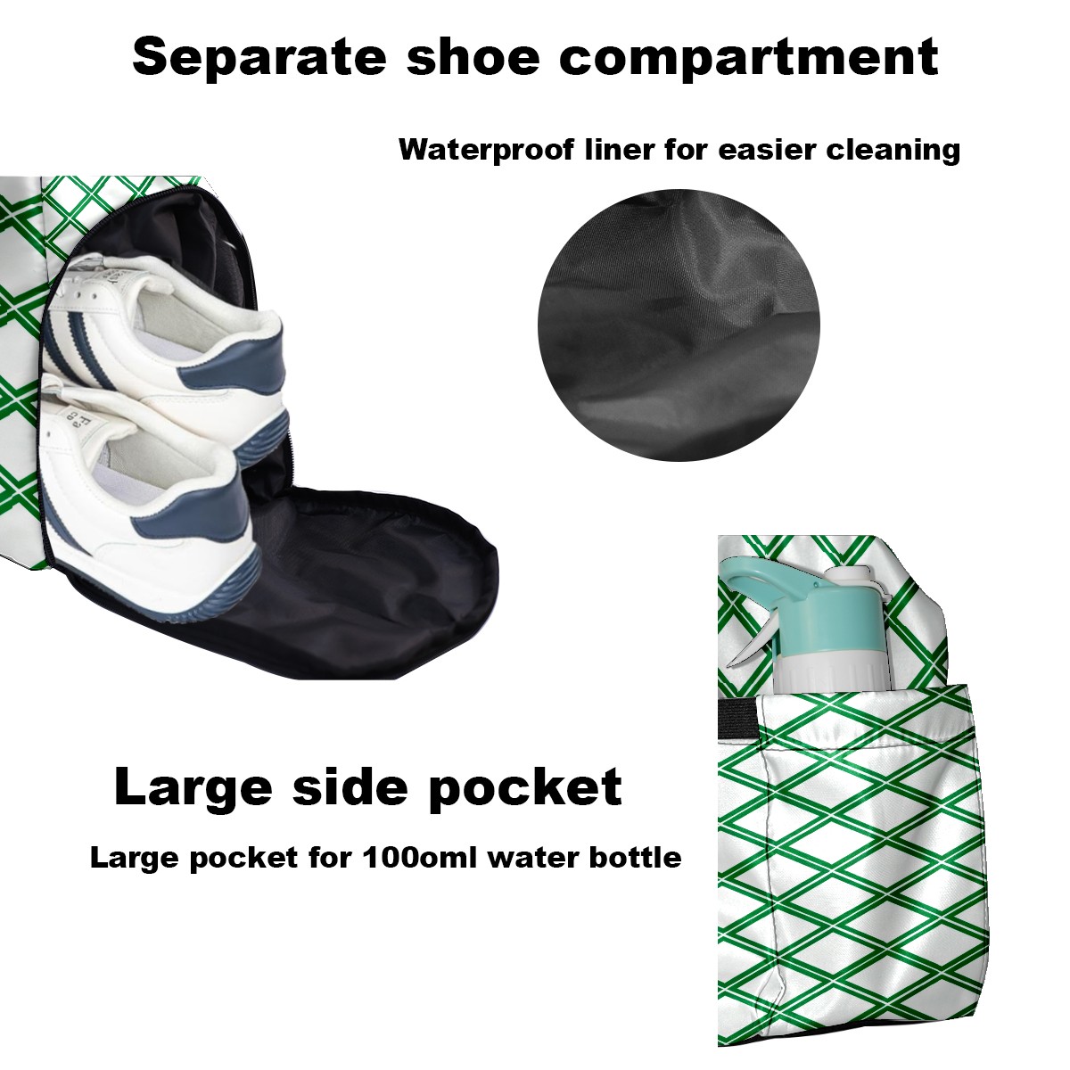 Lightweight Pickleball Tote Bag with Large Capacity, Shoe Compartment, Large Paddle Storage, Water Bottle Holder & Fence Hook for Women & Men Green Geometric Pattern