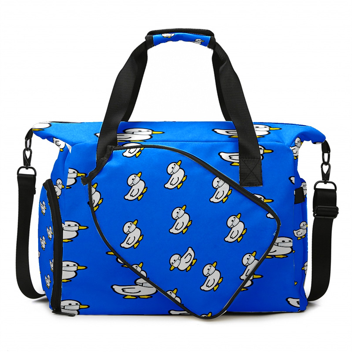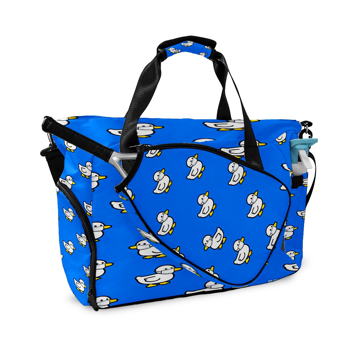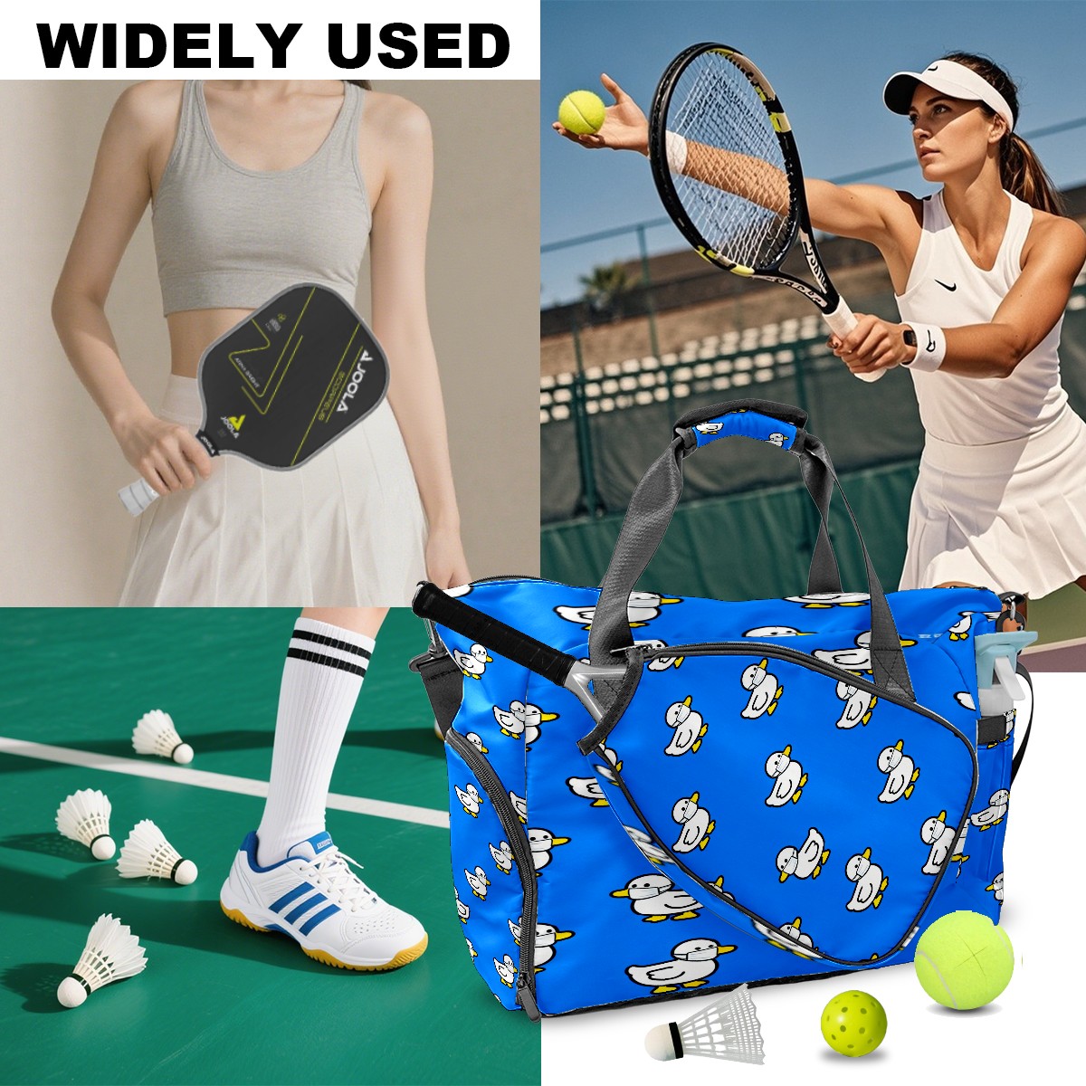 Lightweight Pickleball Tote Bag with Large Capacity, Shoe Compartment, Large Paddle Storage, Water Bottle Holder & Fence Hook for Women & Men White Cartoon Duck