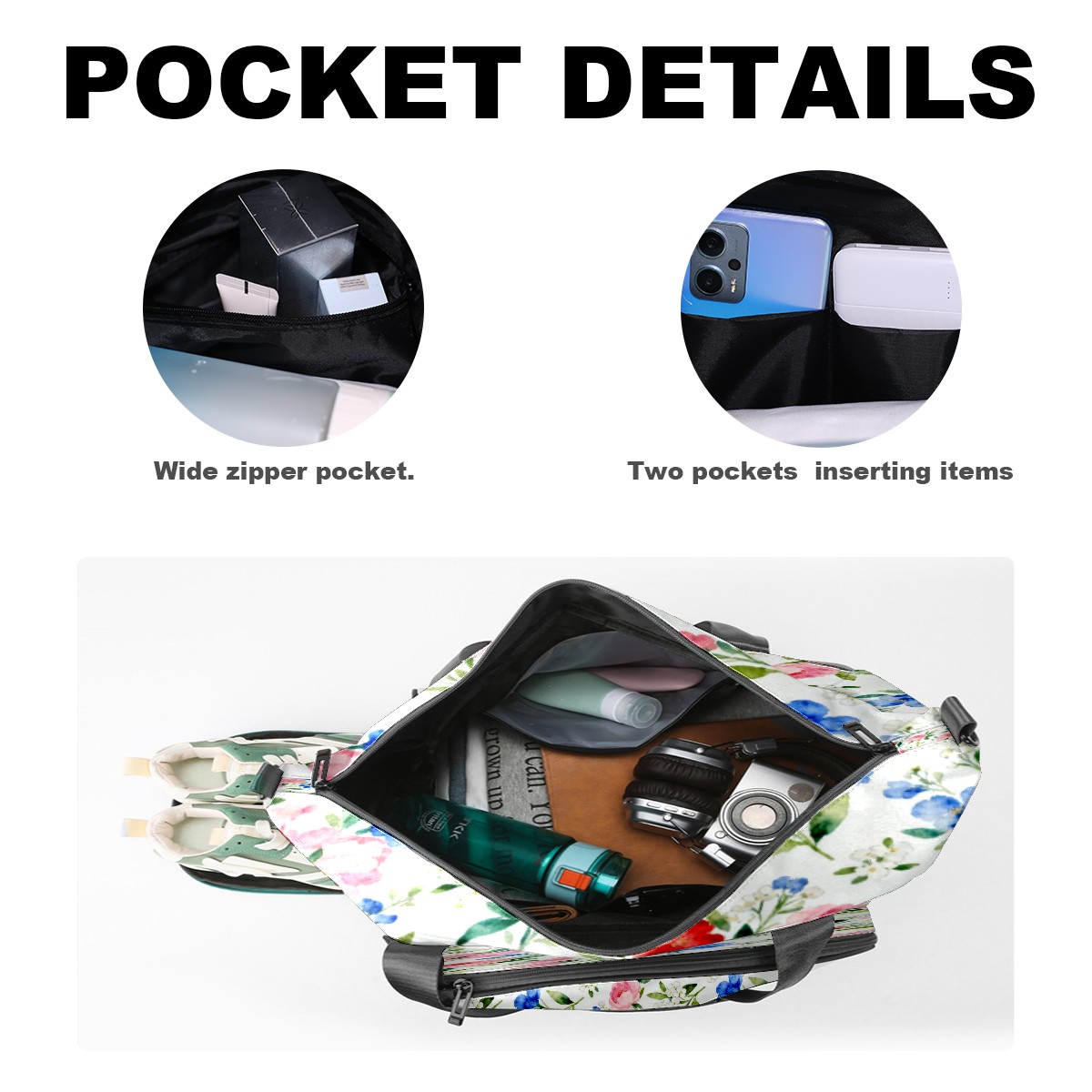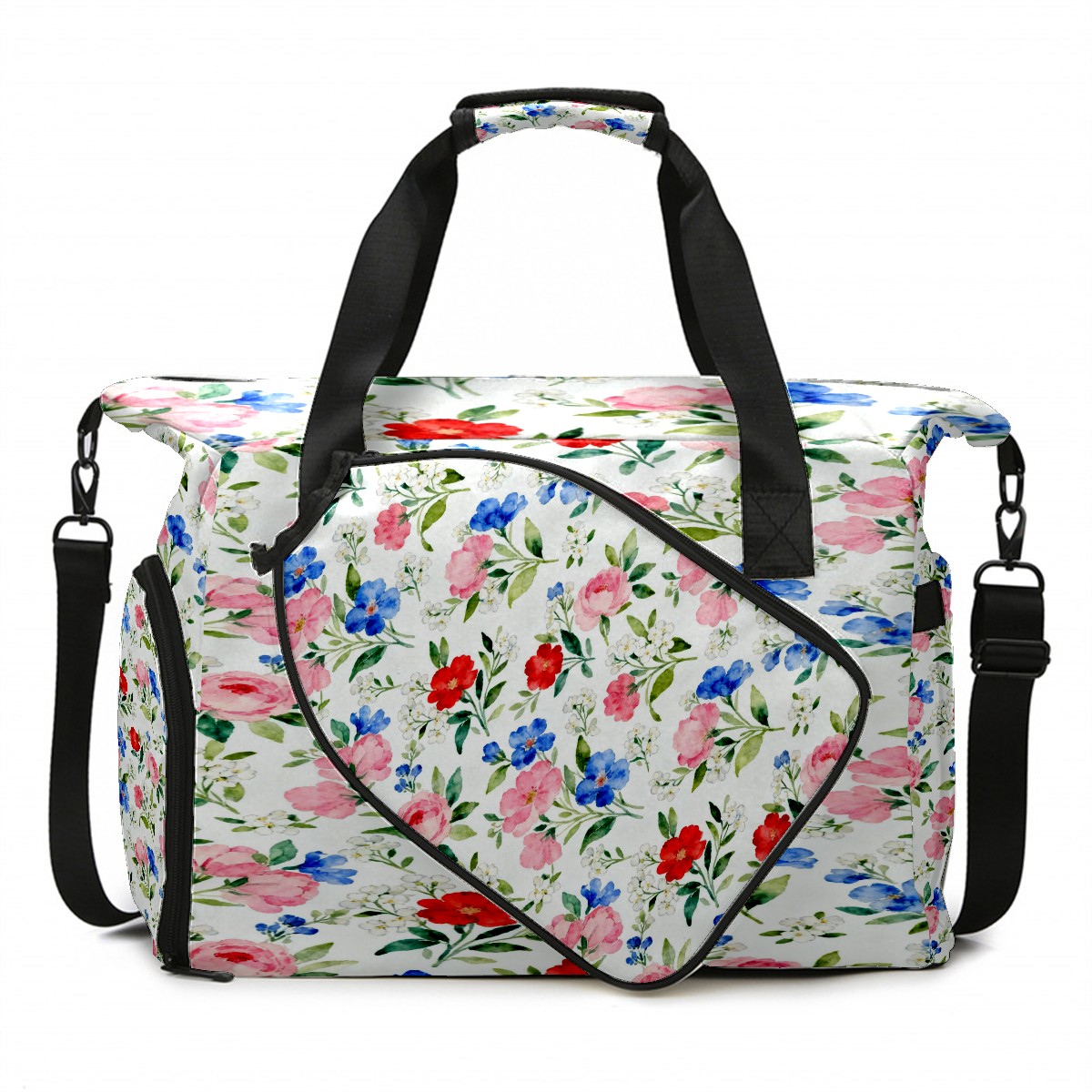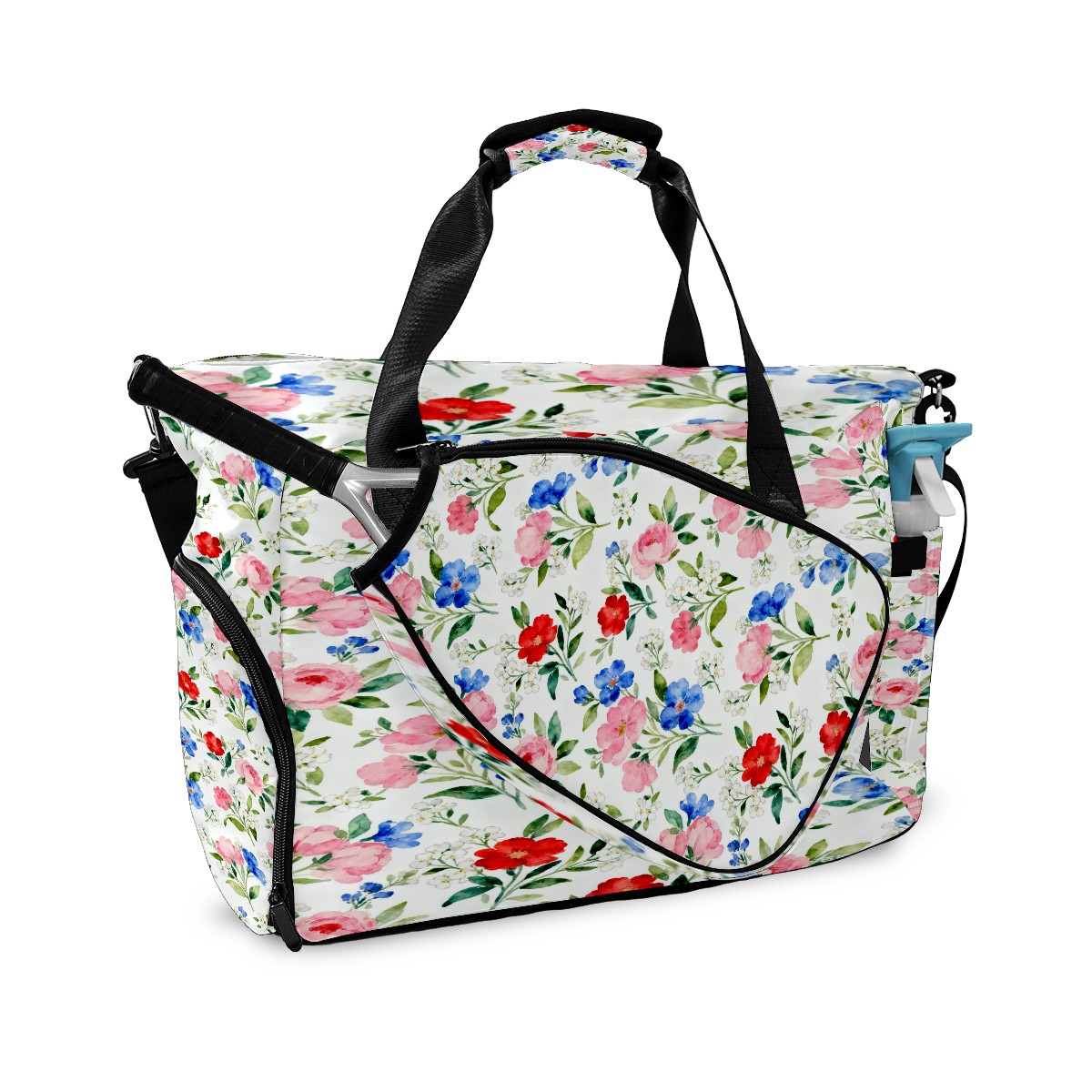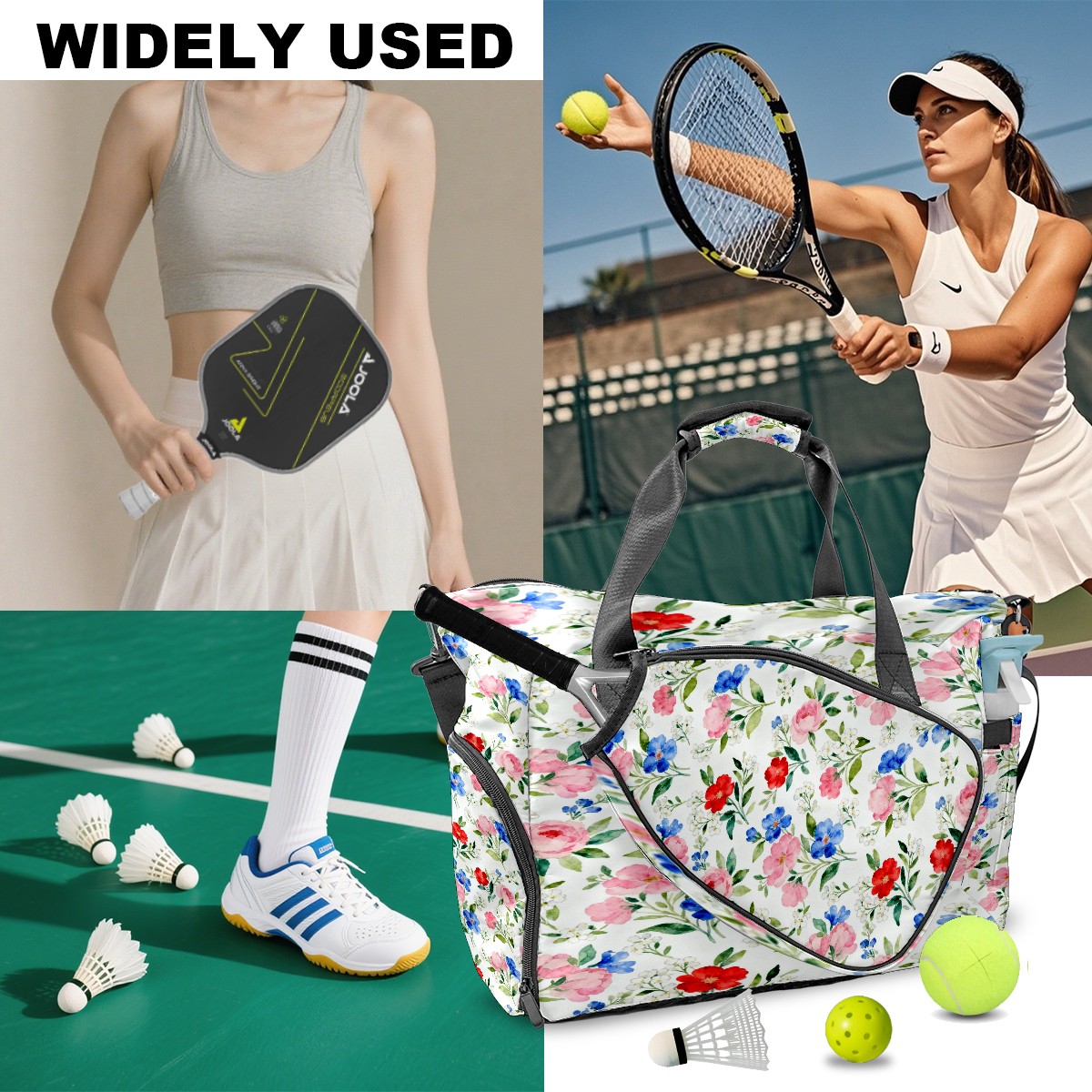 Lightweight Pickleball Tote Bag with Large Capacity, Shoe Compartment, Large Paddle Storage, Water Bottle Holder & Fence Hook for Women & Men Colorful Flowers