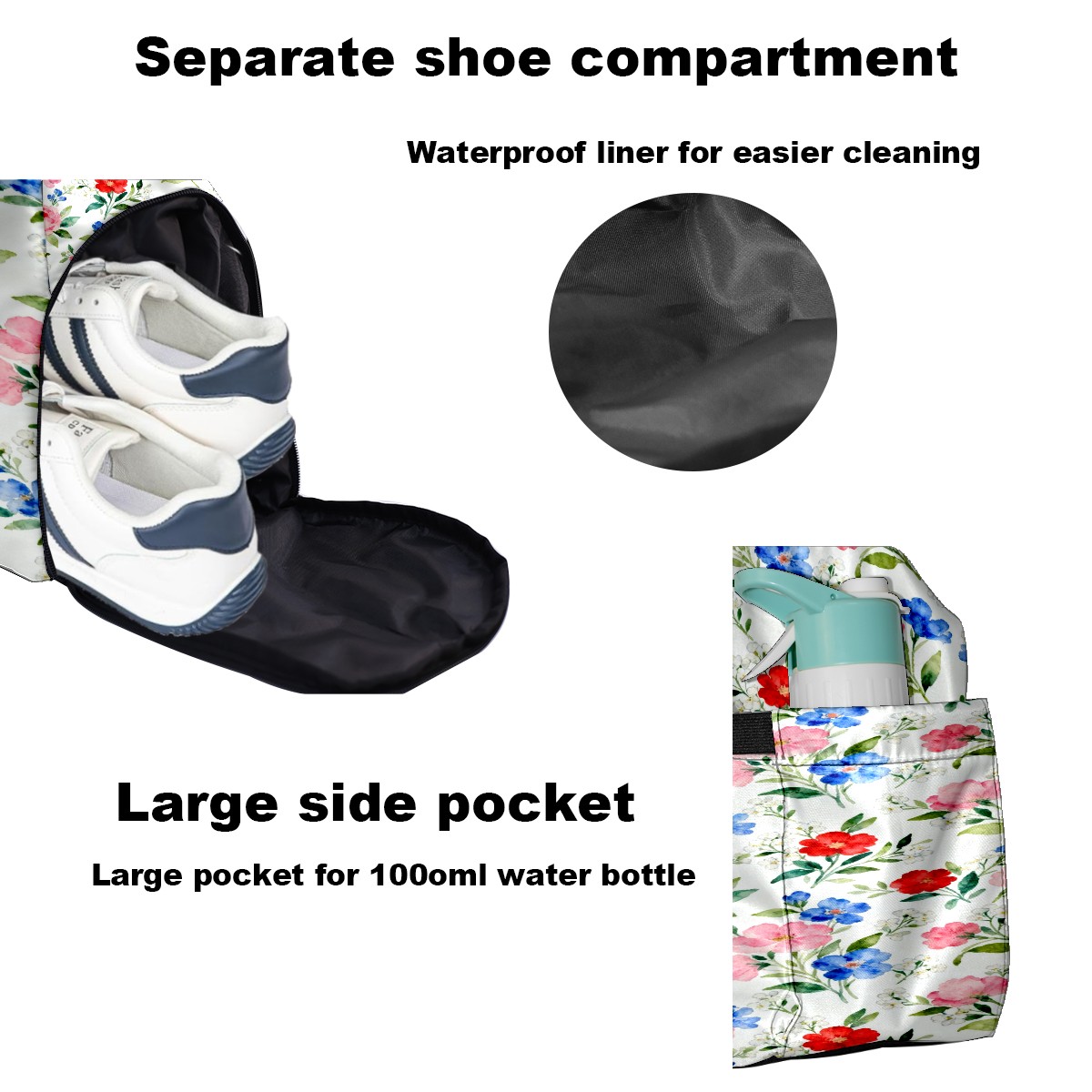 • <p>Multifunctional Gym Travel Bag Made of Twill Fabric 22cm x 48cm x 35cm (8.7in x 18.9in x 13.8in) Made of lightweight and durable twill fabric, this bag is perfect for an active lifestyle. The spacious main compartment easily holds clothing, towels, and a full set of gym gear. A smart pocket precisely stores your phone, earphones, and gym membership card. A ventilated shoe compartment can hold size 10 athletic shoes, and a waterproof wet bag isolates swimwear or sweaty clothing, effectively preventing odors and clutter. It's a professional gym bag suitable for spinning and strength training, a stylish everyday handbag, and can also meet diverse needs such as pickleball, weekend trips, and overnight stays. Combining functionality and style, it seamlessly integrates into various scenarios.<br></p>