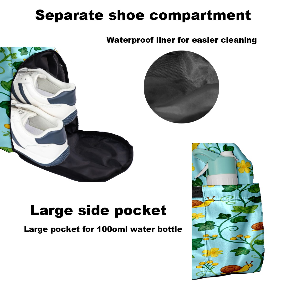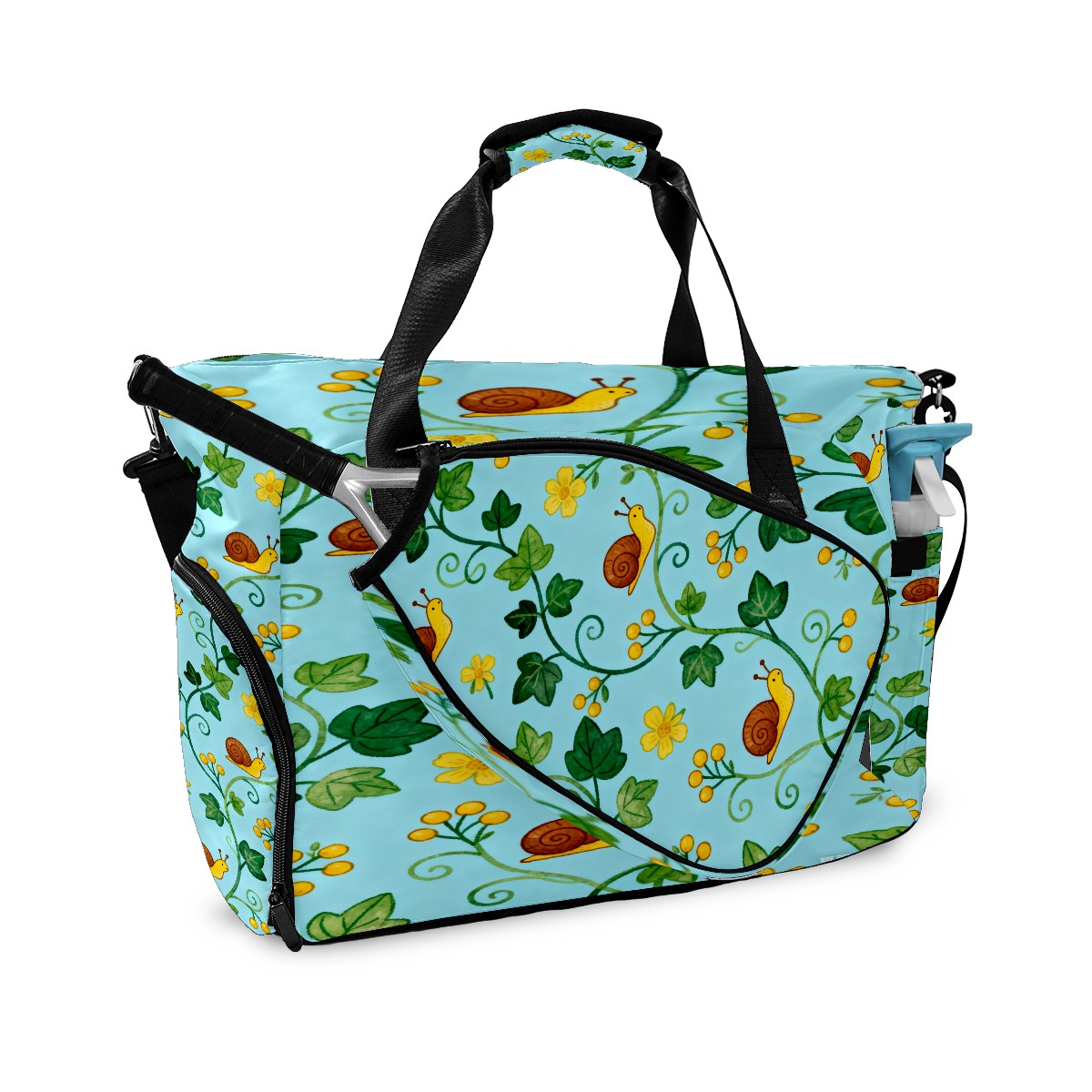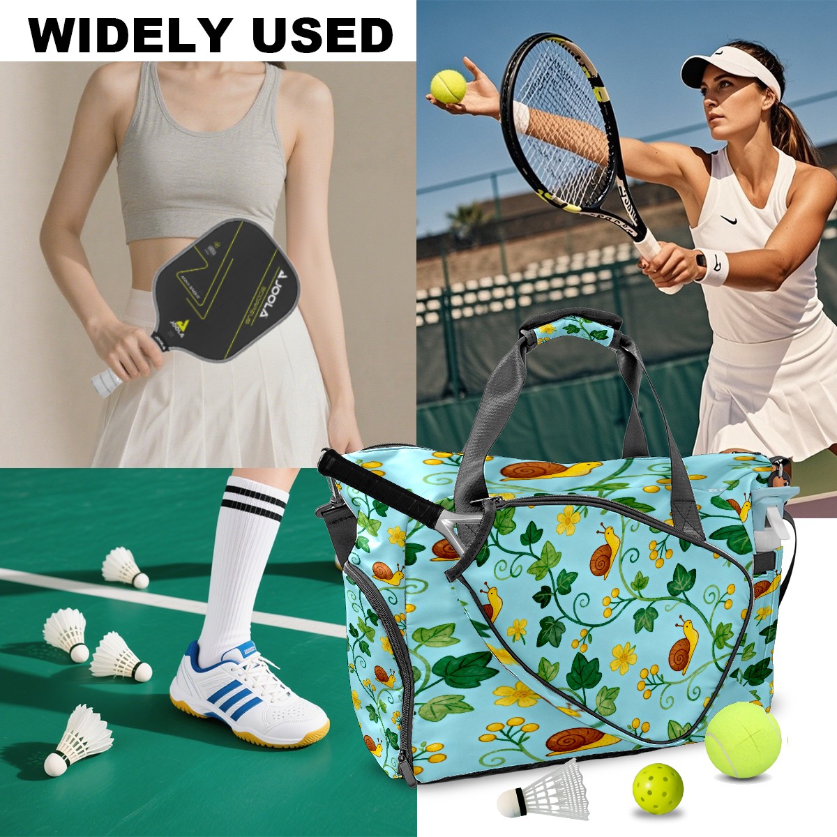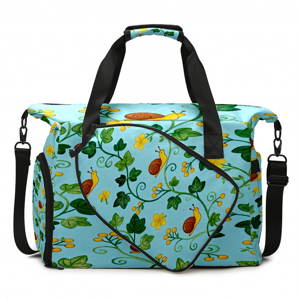 Lightweight Pickleball Tote Bag with Large Capacity, Shoe Compartment, Large Paddle Storage, Water Bottle Holder & Fence Hook for Women & Men Snail And Leaf Pattern