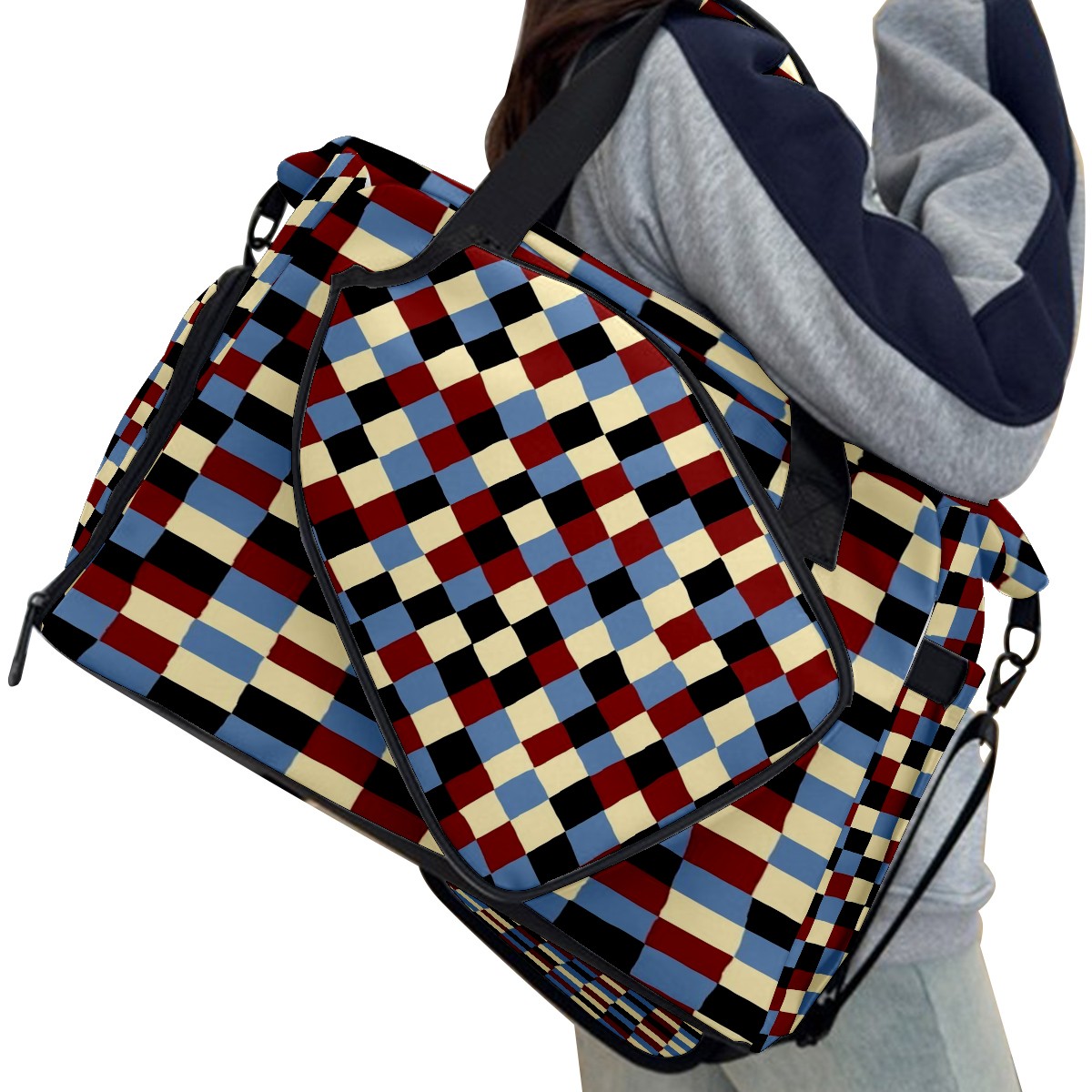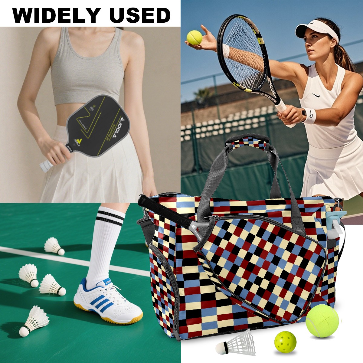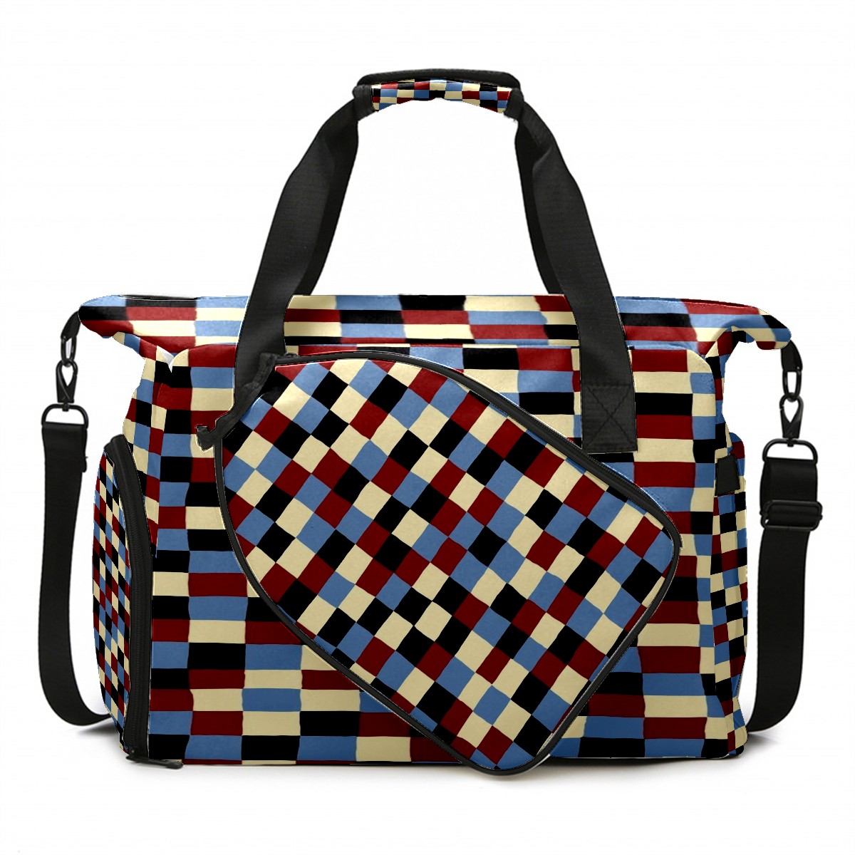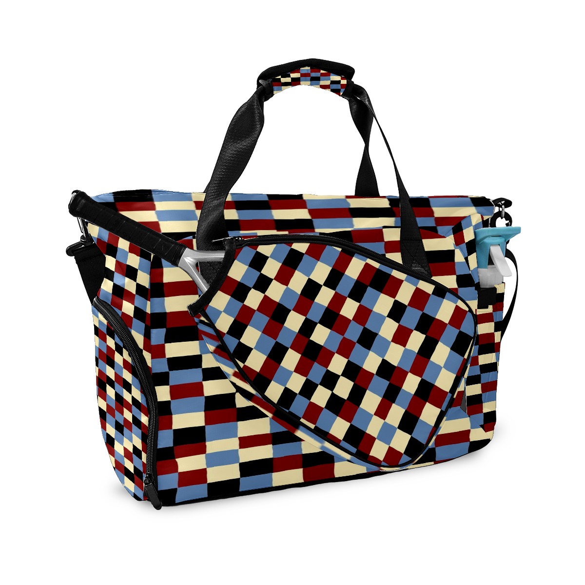 Lightweight Pickleball Tote Bag with Large Capacity, Shoe Compartment, Large Paddle Storage, Water Bottle Holder & Fence Hook for Women & Men Plaid Pattern
