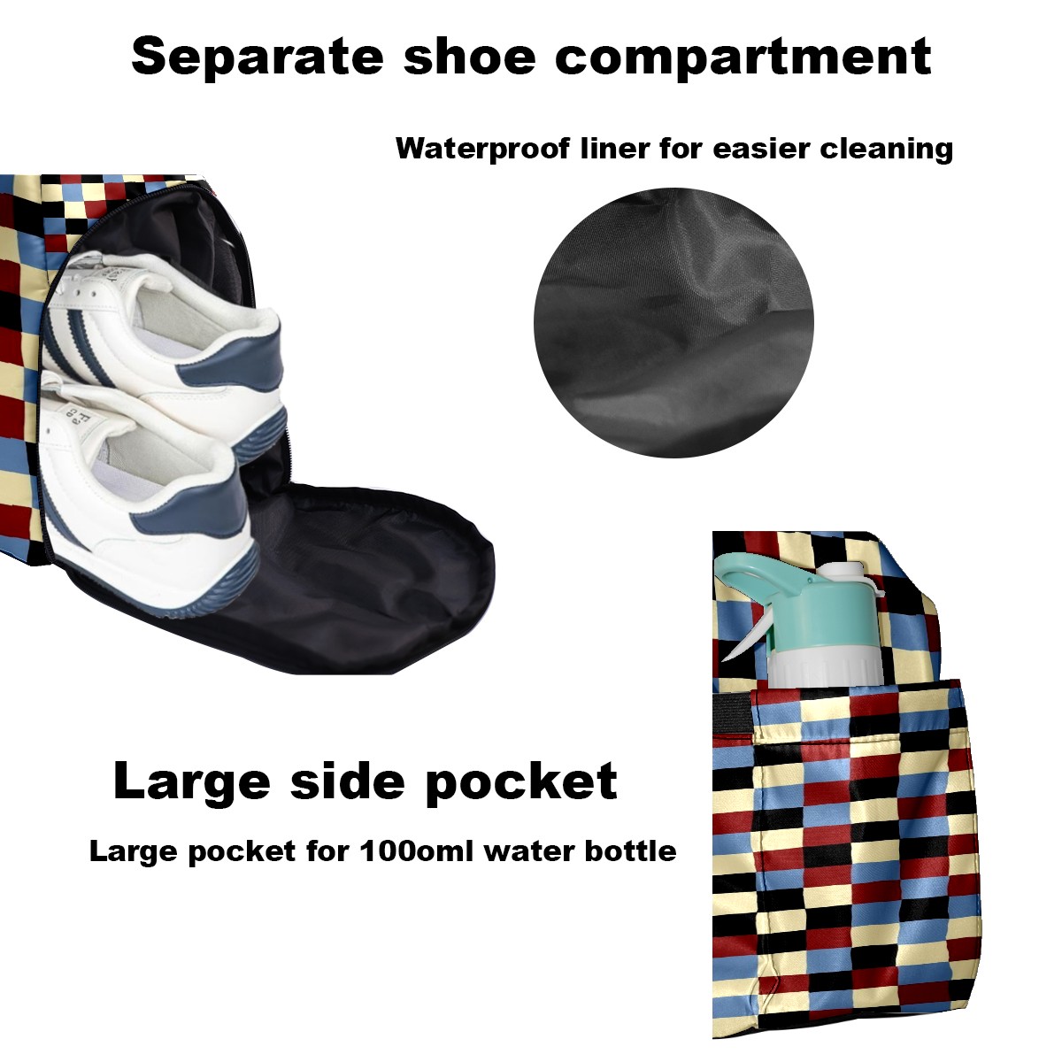 <p>Multifunctional Gym Travel Bag Made of Twill Fabric 22cm x 48cm x 35cm (8.7in x 18.9in x 13.8in) Made of lightweight and durable twill fabric, this bag is perfect for an active lifestyle. The spacious main compartment easily holds clothing, towels, and a full set of gym gear. A smart pocket precisely stores your phone, earphones, and gym membership card. A ventilated shoe compartment can hold size 10 athletic shoes, and a waterproof wet bag isolates swimwear or sweaty clothing, effectively preventing odors and clutter. It's a professional gym bag suitable for spinning and strength training, a stylish everyday handbag, and can also meet diverse needs such as pickleball, weekend trips, and overnight stays. Combining functionality and style, it seamlessly integrates into various scenarios.<br></p>