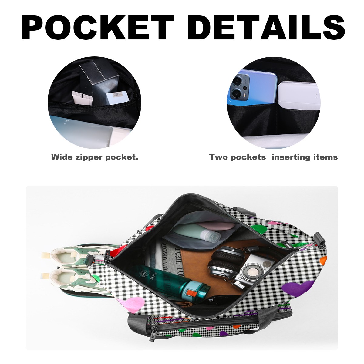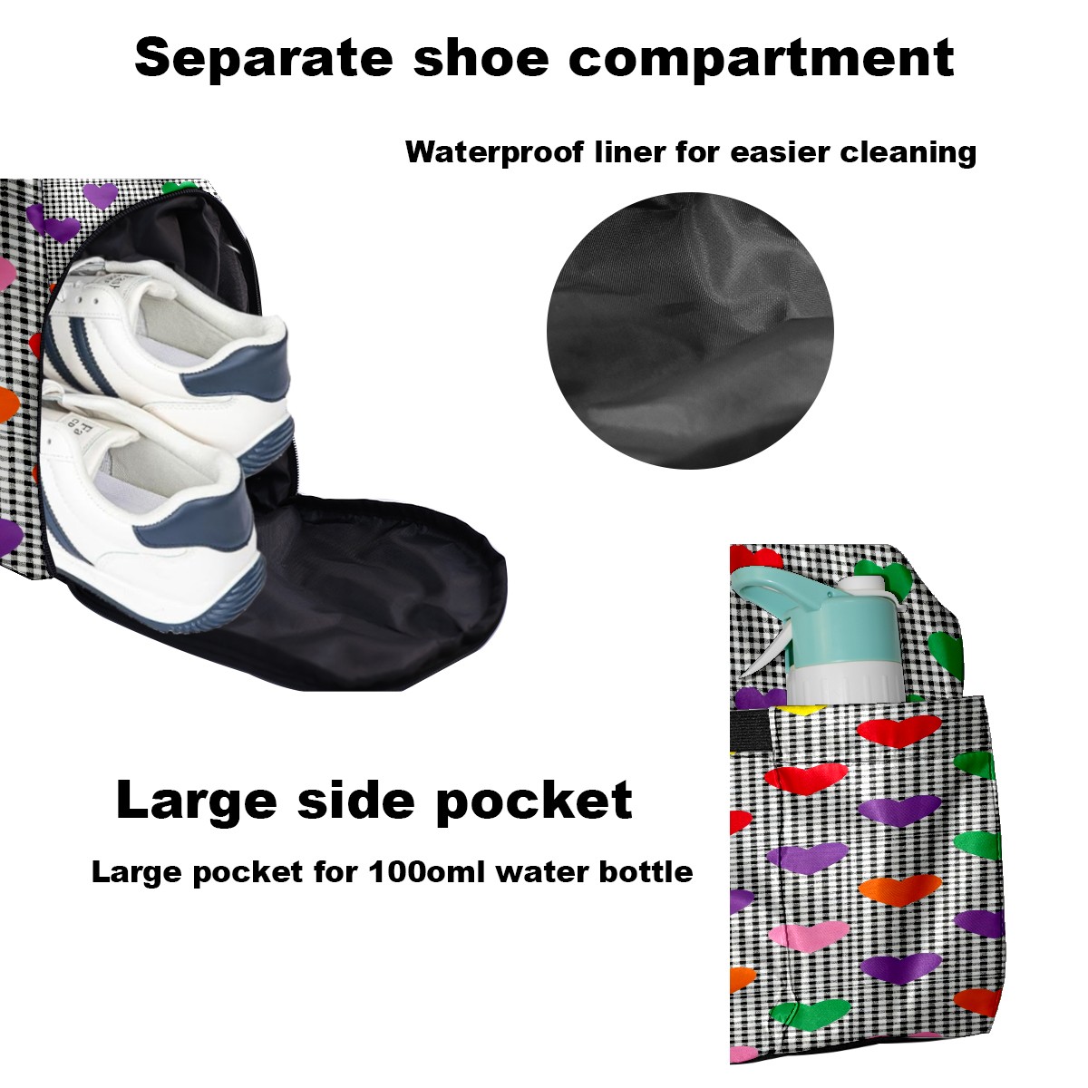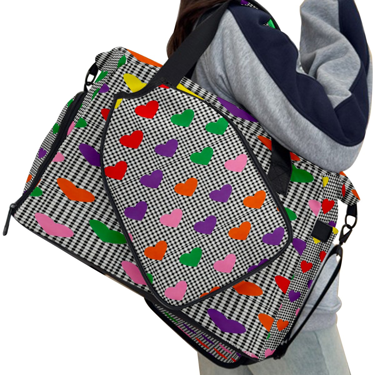 Lightweight Pickleball Tote Bag with Large Capacity, Shoe Compartment, Large Paddle Storage, Water Bottle Holder & Fence Hook for Women & Men Checkered Heart Pattern