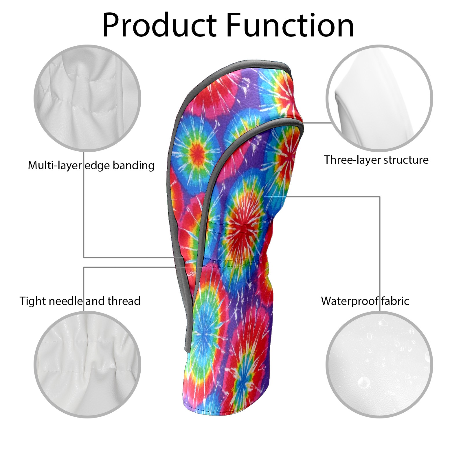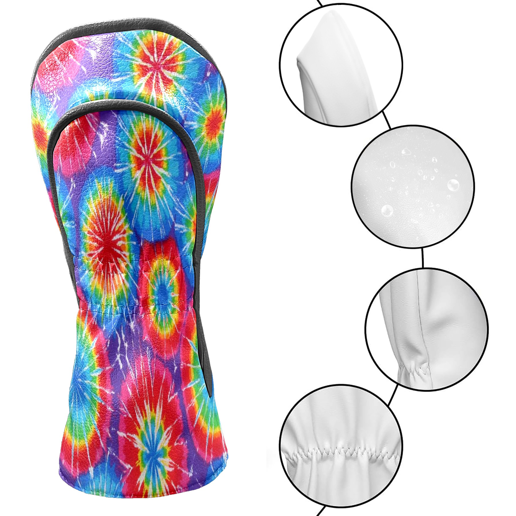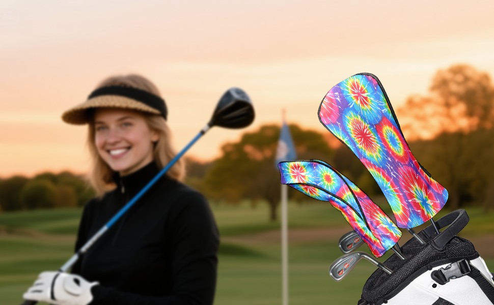 Golf Club Head Cover Waterproof Leather for Driver & Fairway Wood, Driver Headcovers, Golf Accessories for Men Women, Anti-Scratch, Golf Gift for Golfers, 1/3/5 Wood Cover Psychedelic Pop
