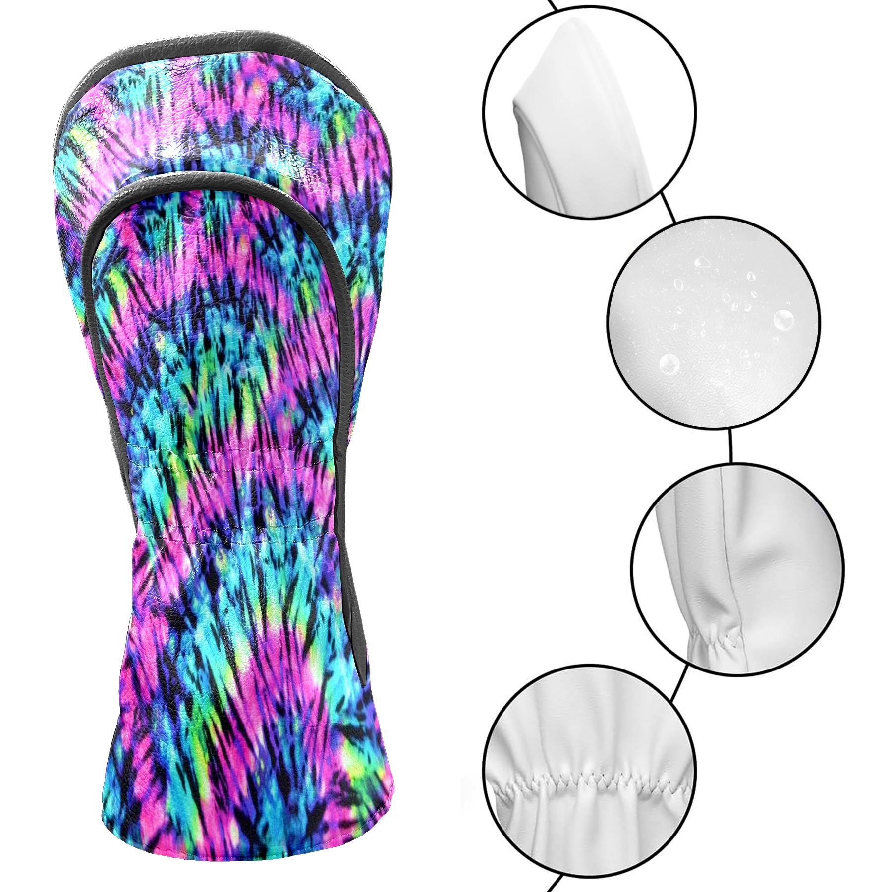 Golf Club Head Cover Waterproof Leather for Driver & Fairway Wood, Driver Headcovers, Golf Accessories for Men Women, Anti-Scratch, Golf Gift for Golfers, 1/3/5 Wood Cover Neon Swirl