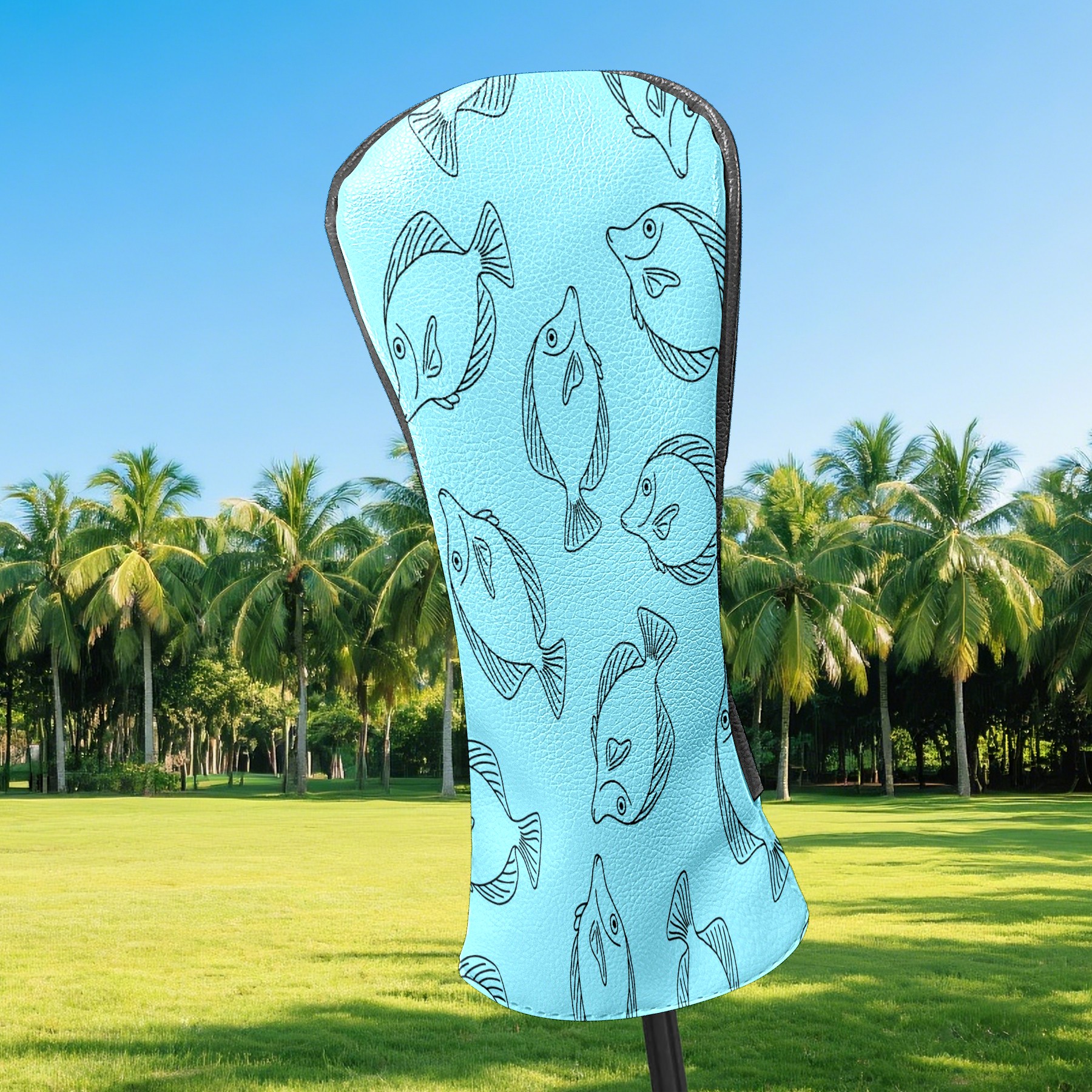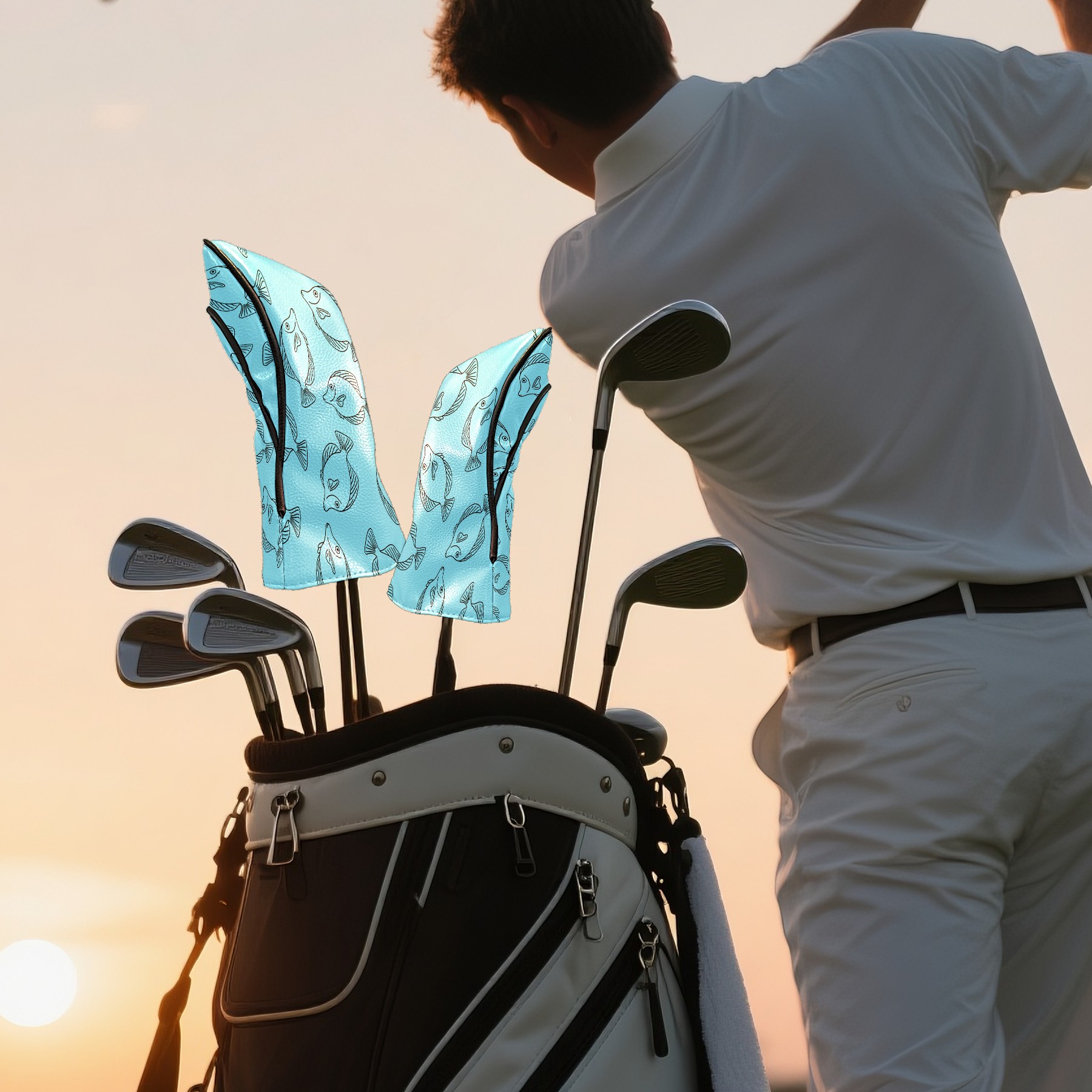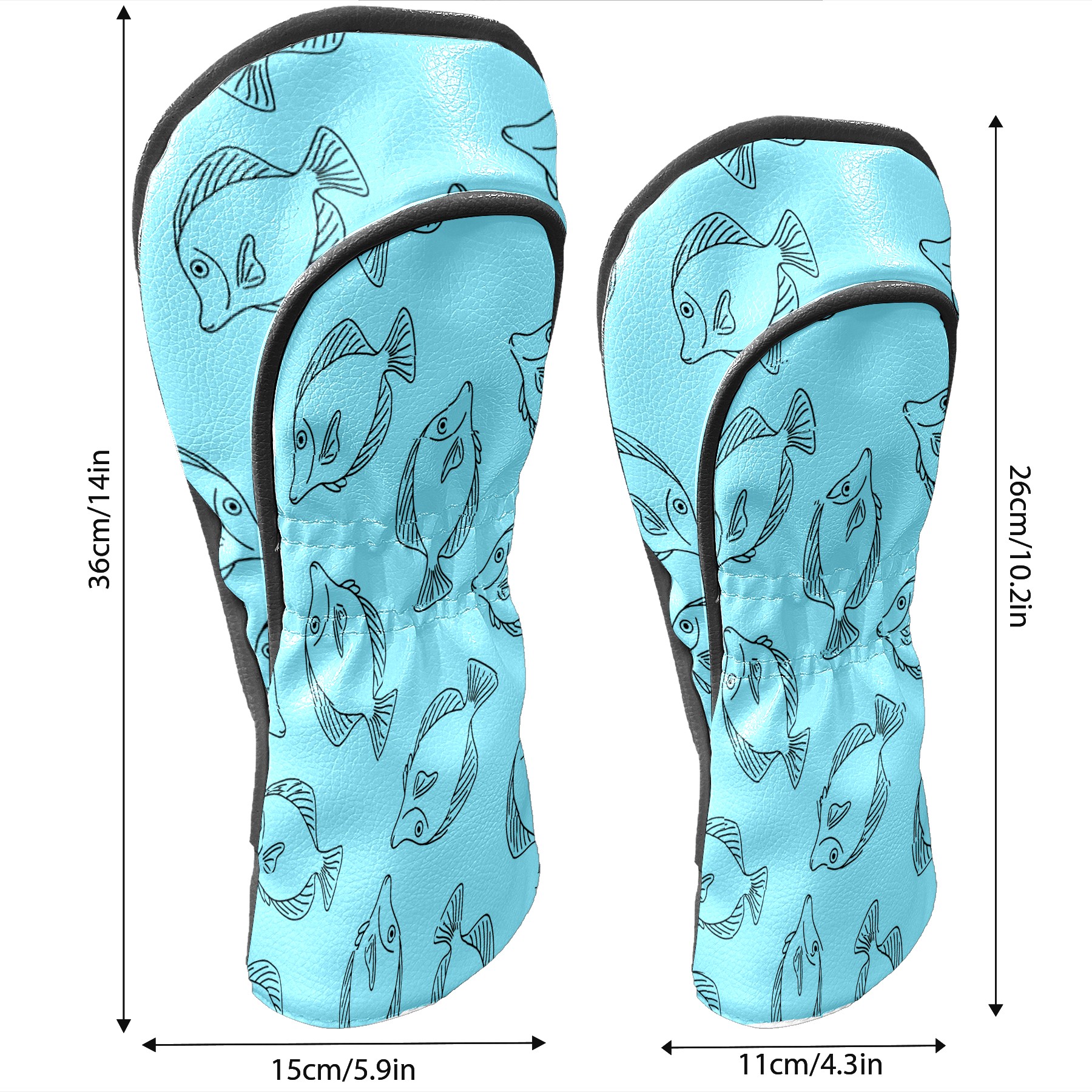 Golf Club Head Cover Waterproof Leather for Driver & Fairway Wood, Driver Headcovers, Golf Accessories for Men Women, Anti-Scratch, Golf Gift for Golfers, 1/3/5 Wood Cover Blue Fishes Print