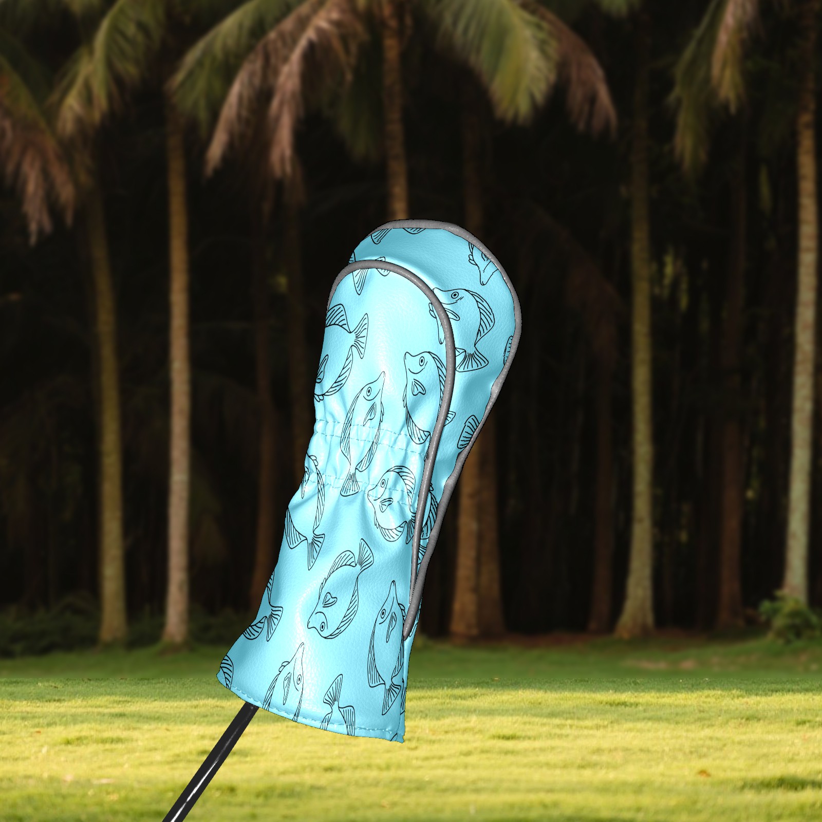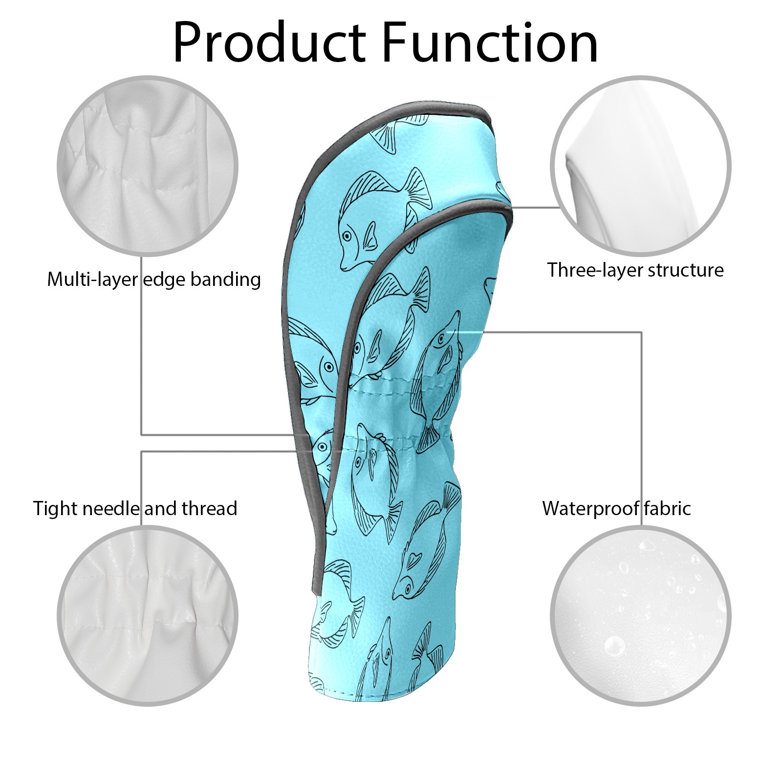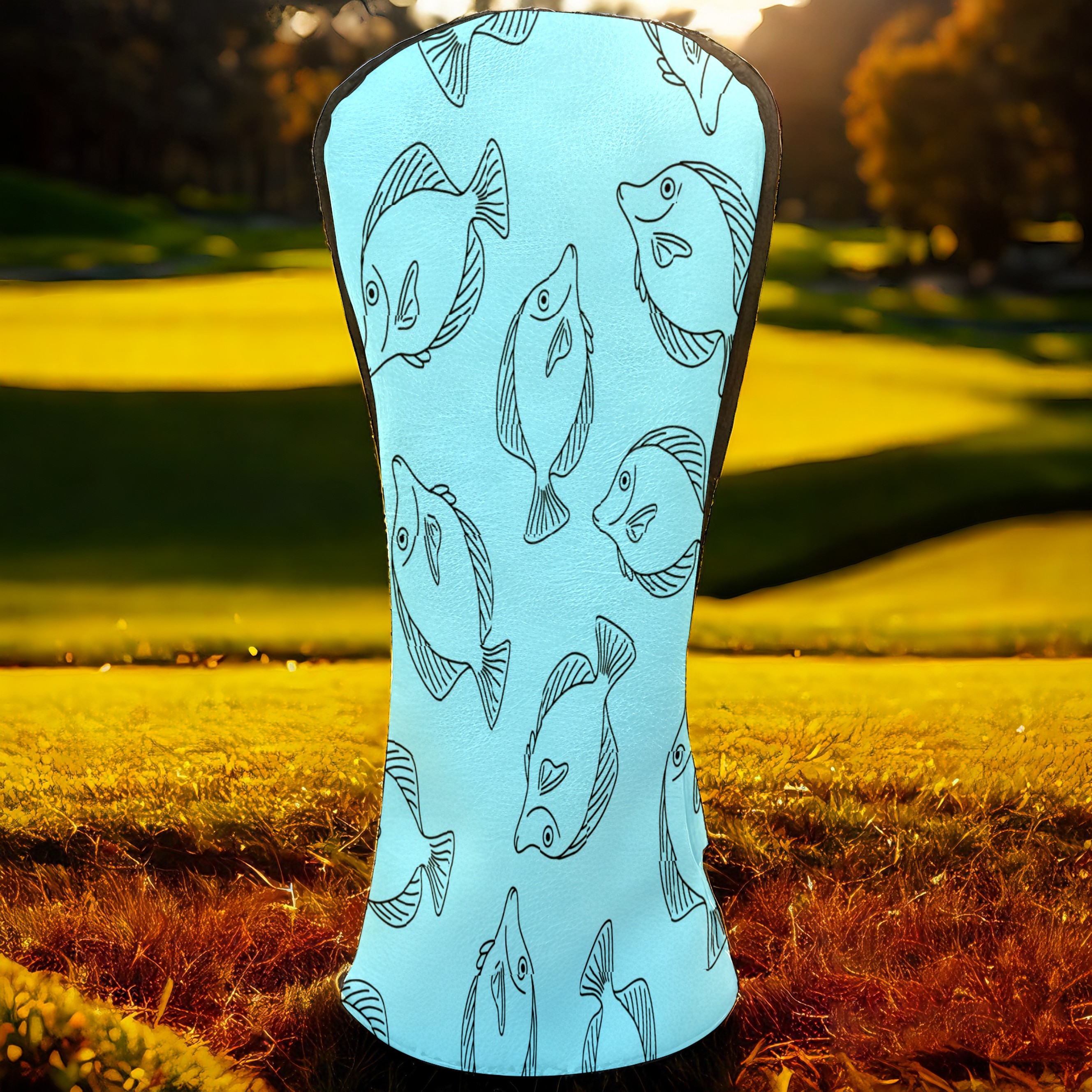 Golf Club Head Cover Waterproof Leather for Driver & Fairway Wood, Driver Headcovers, Golf Accessories for Men Women, Anti-Scratch, Golf Gift for Golfers, 1/3/5 Wood Cover Blue Fishes Print