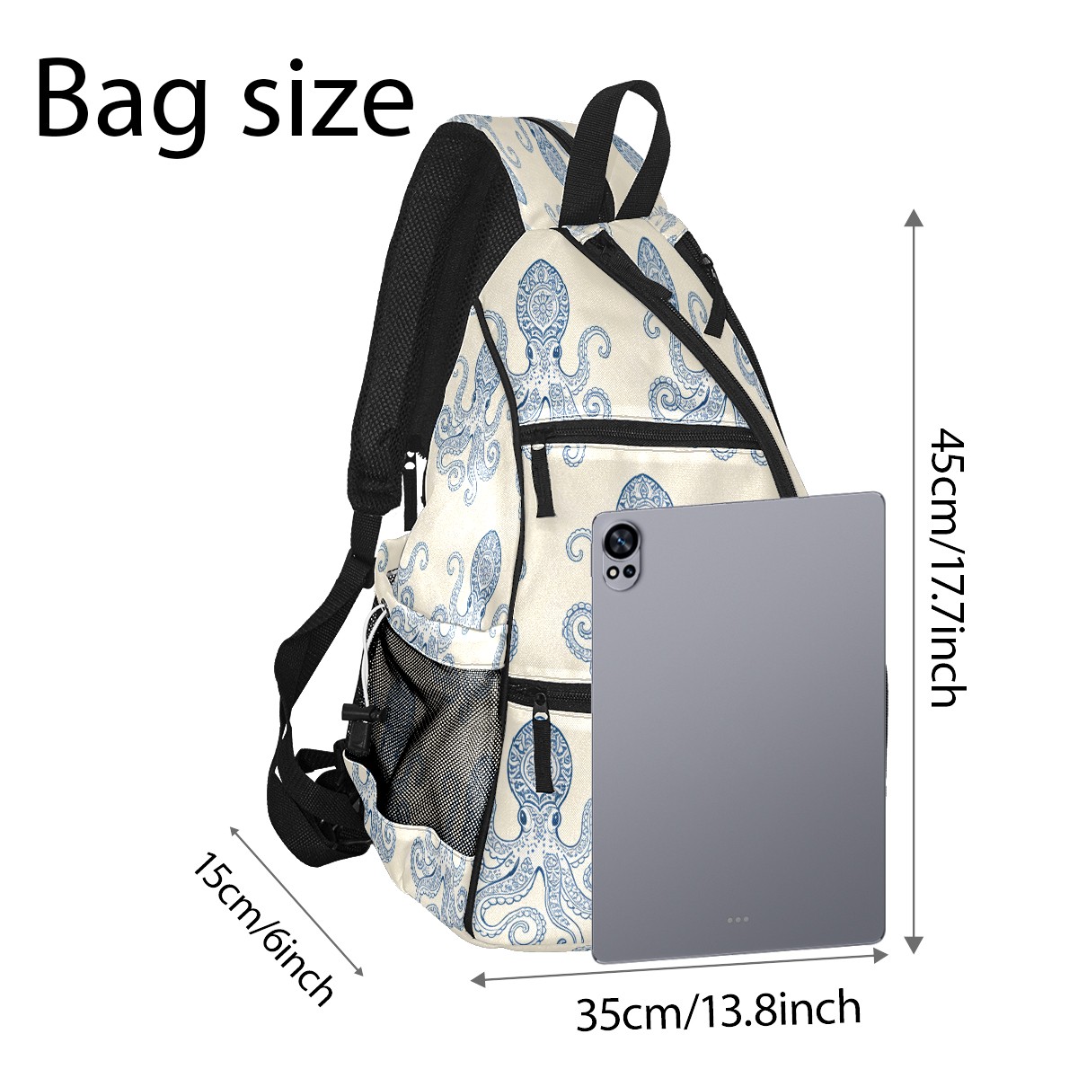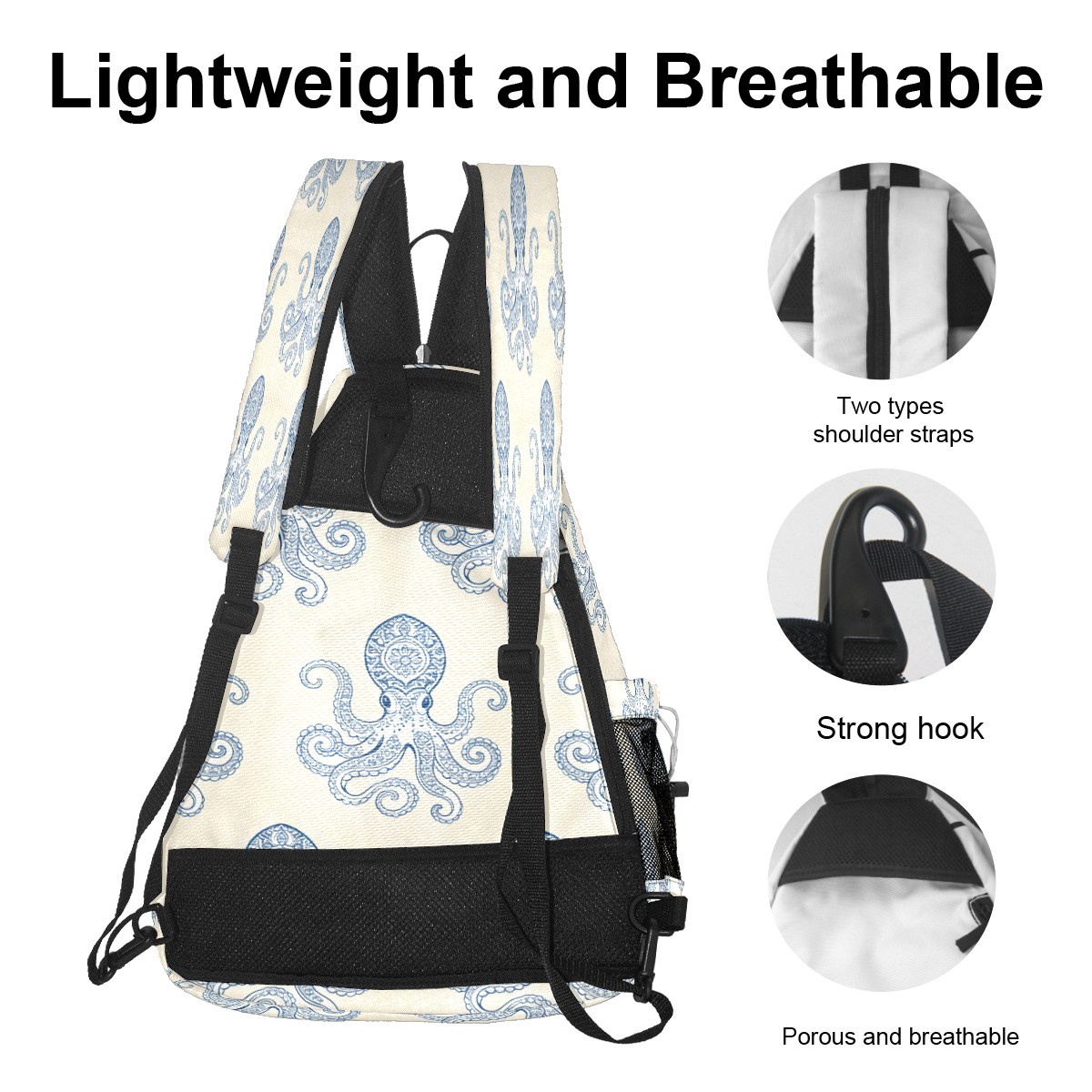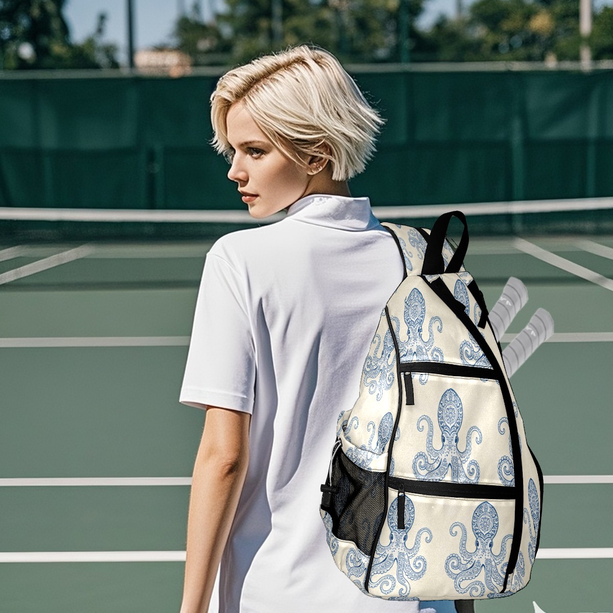 Unisex Pickleball Bag, Waterproof and Large Capacity, with Water Bottle Holder and Adjustable Shoulder Strap,Pickleball Bag Equipment and Gift Blue-striped Octopus