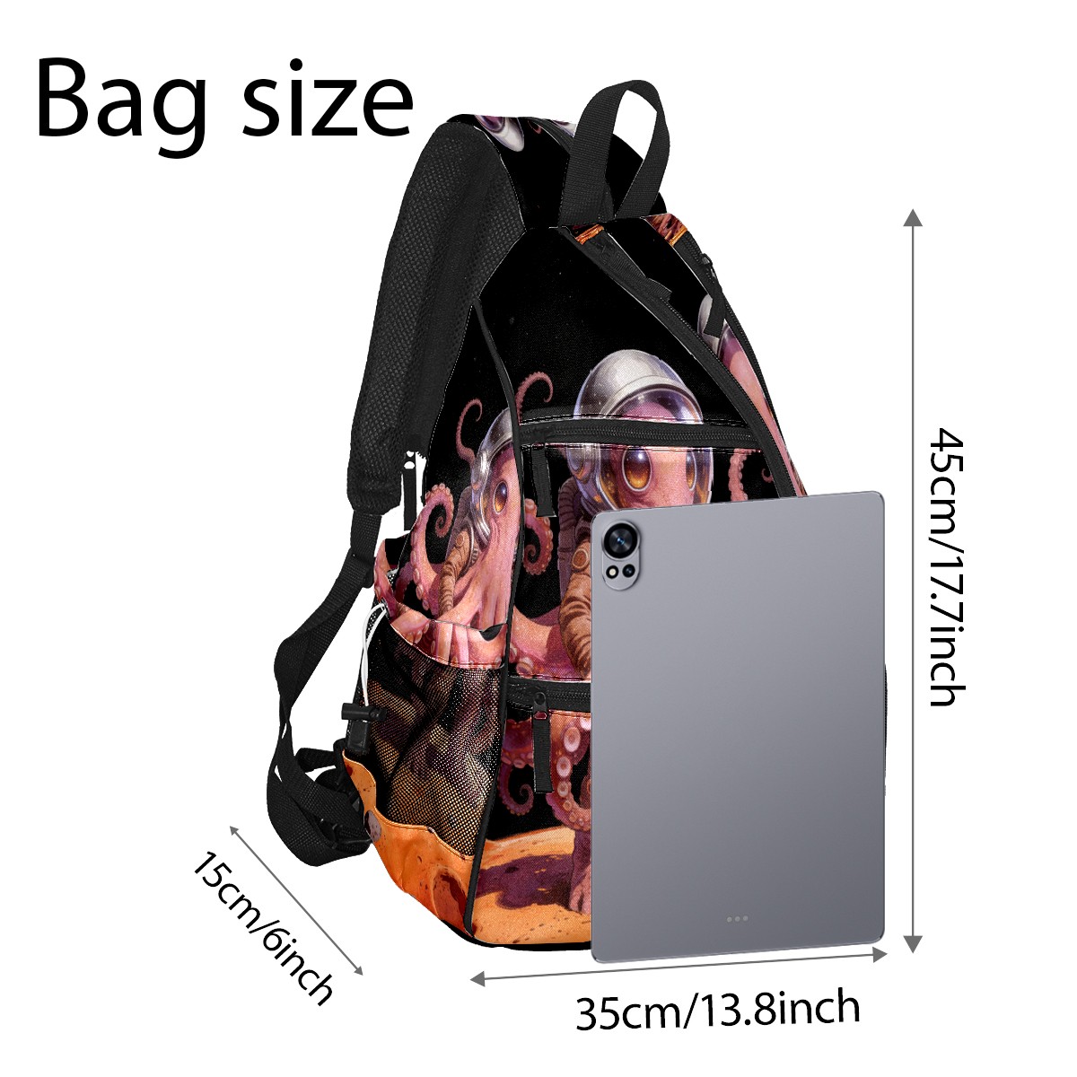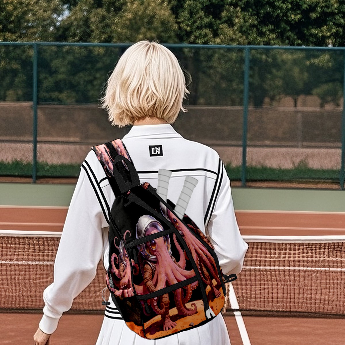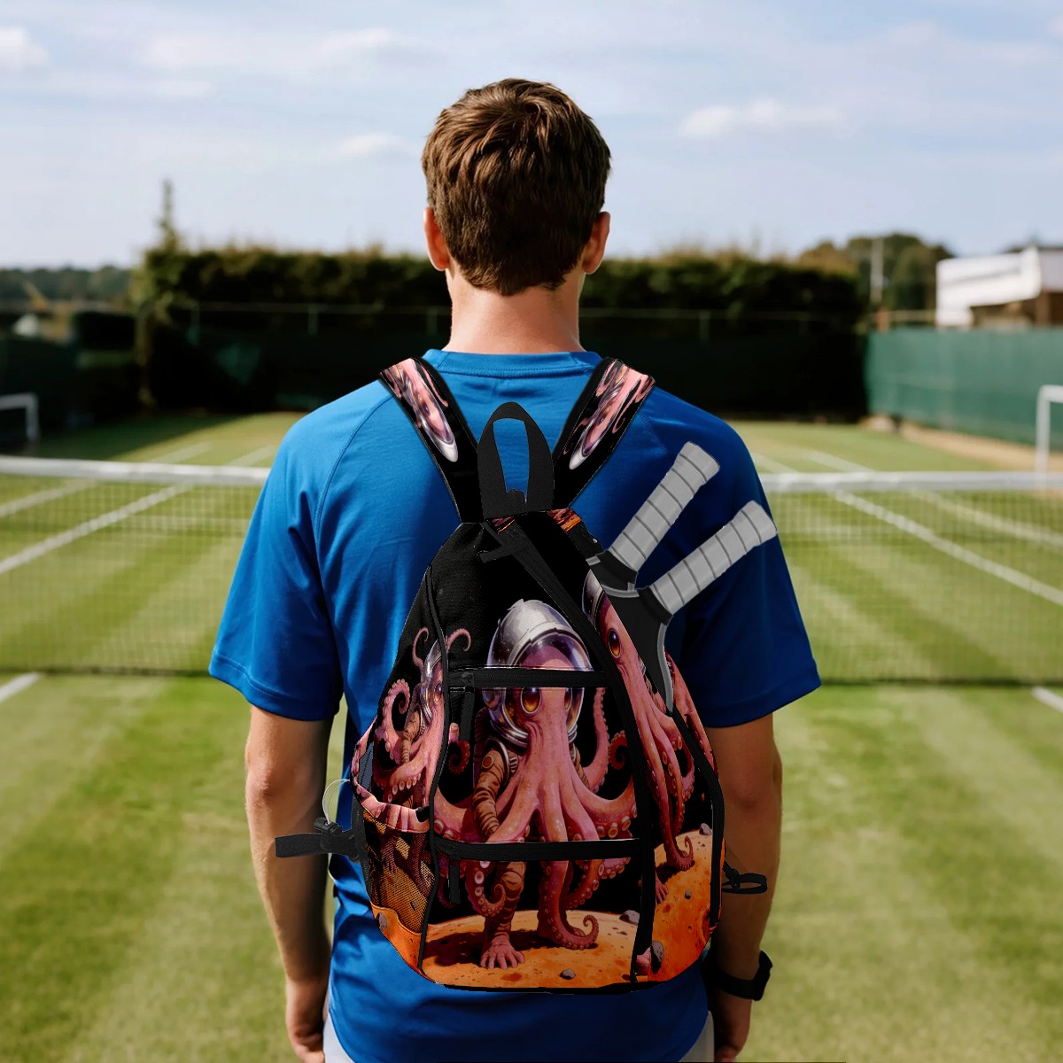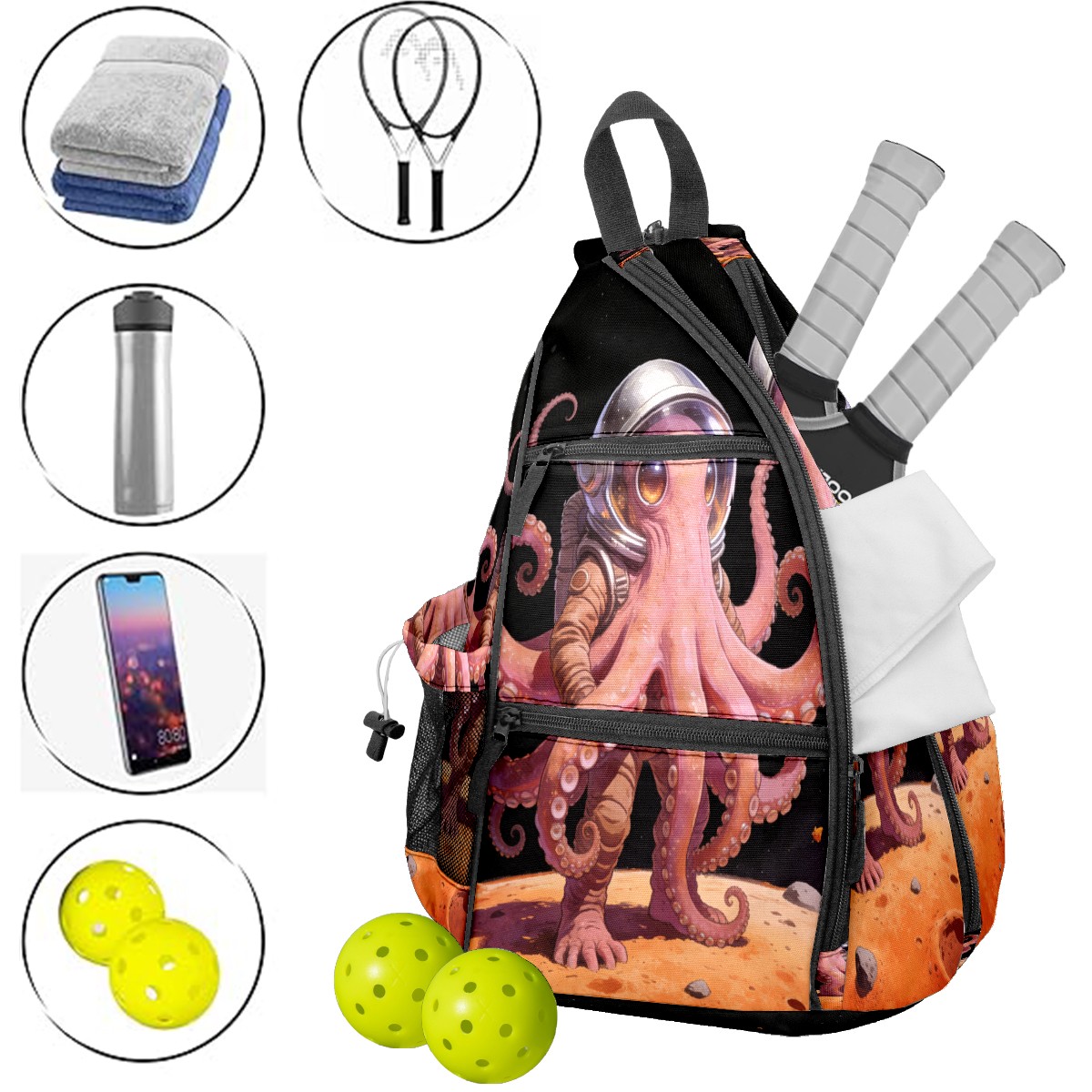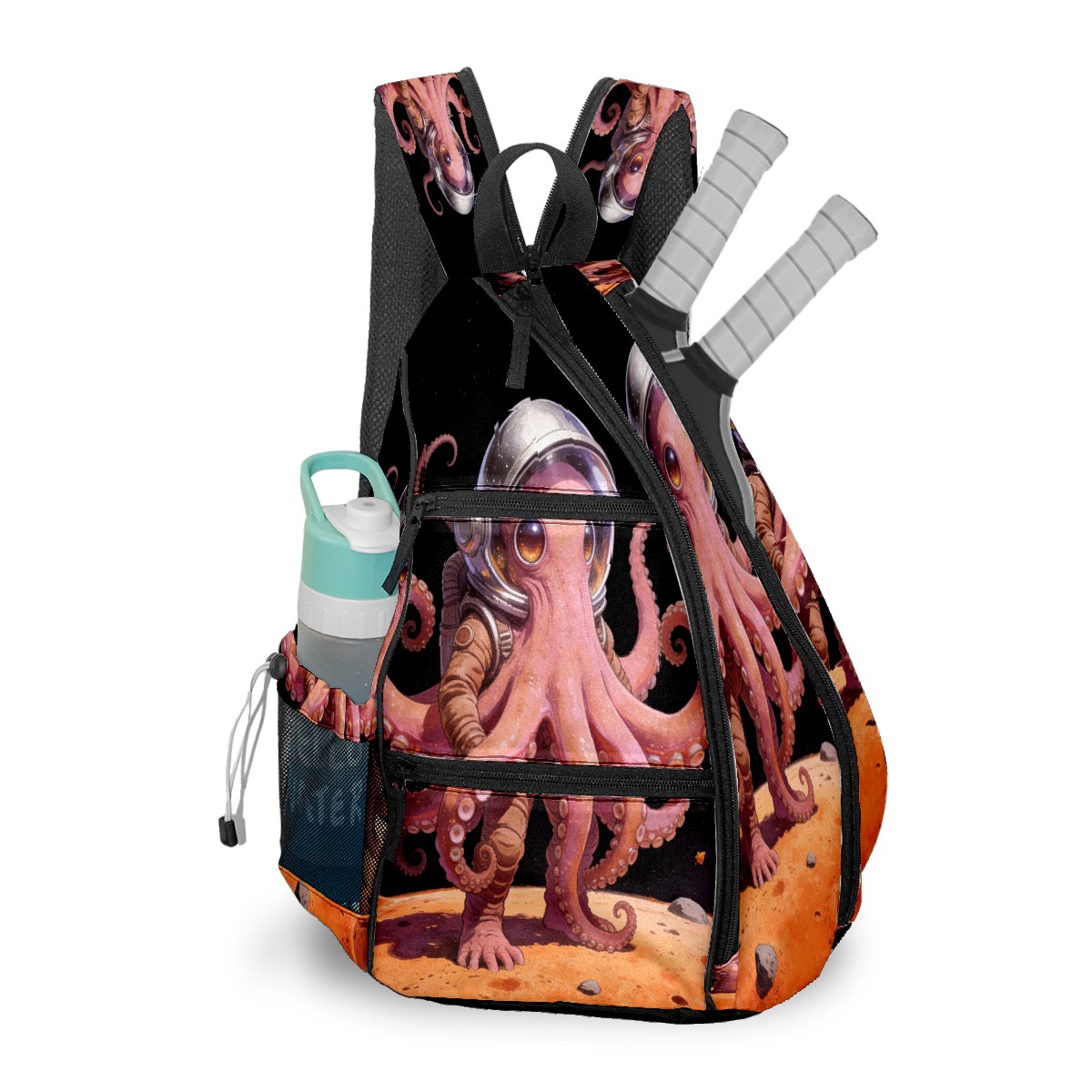 Unisex Pickleball Bag, Waterproof and Large Capacity, with Water Bottle Holder and Adjustable Shoulder Strap,Pickleball Bag Equipment and Gift Octopus Astronaut 2