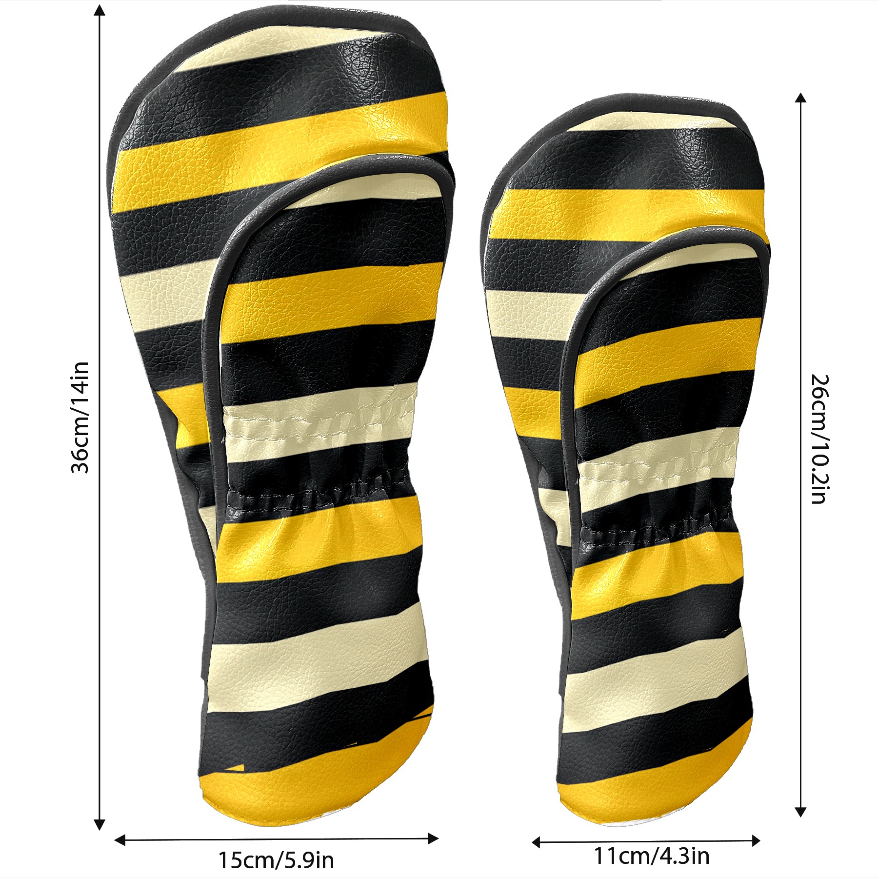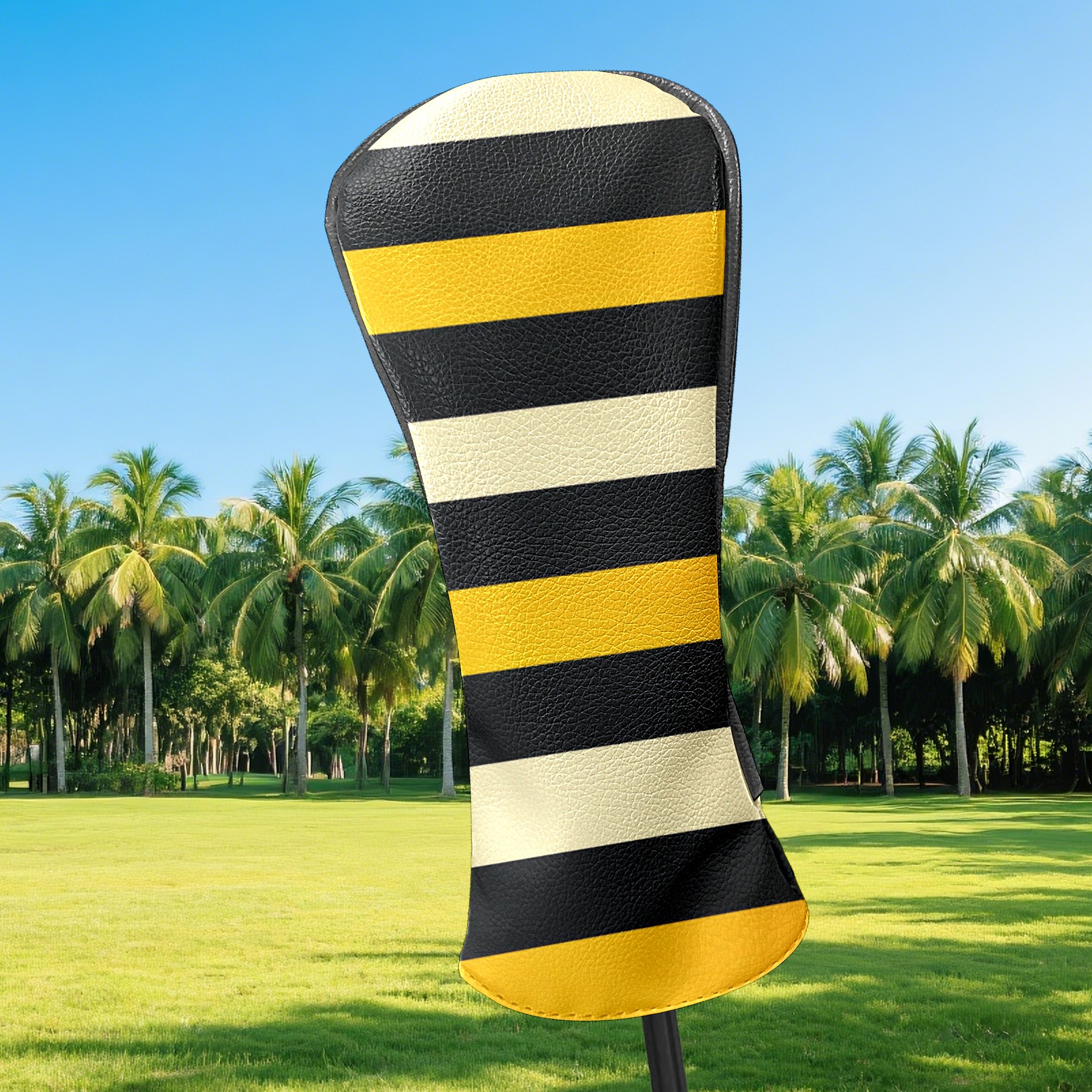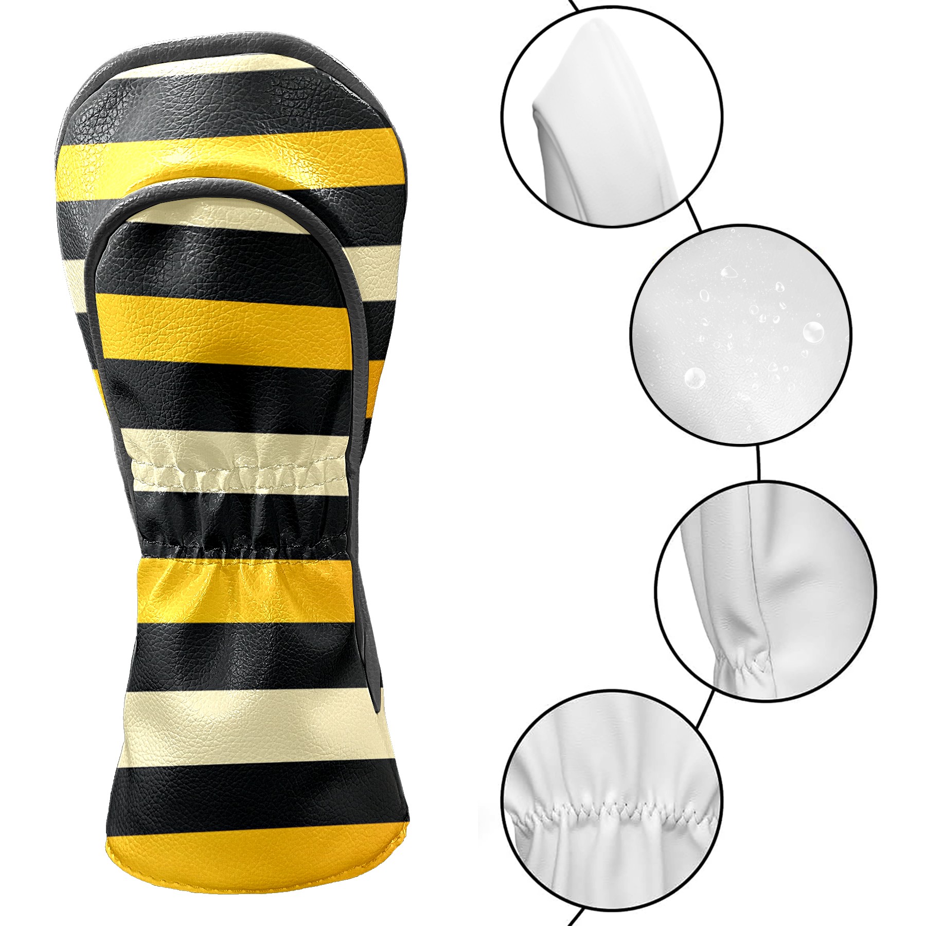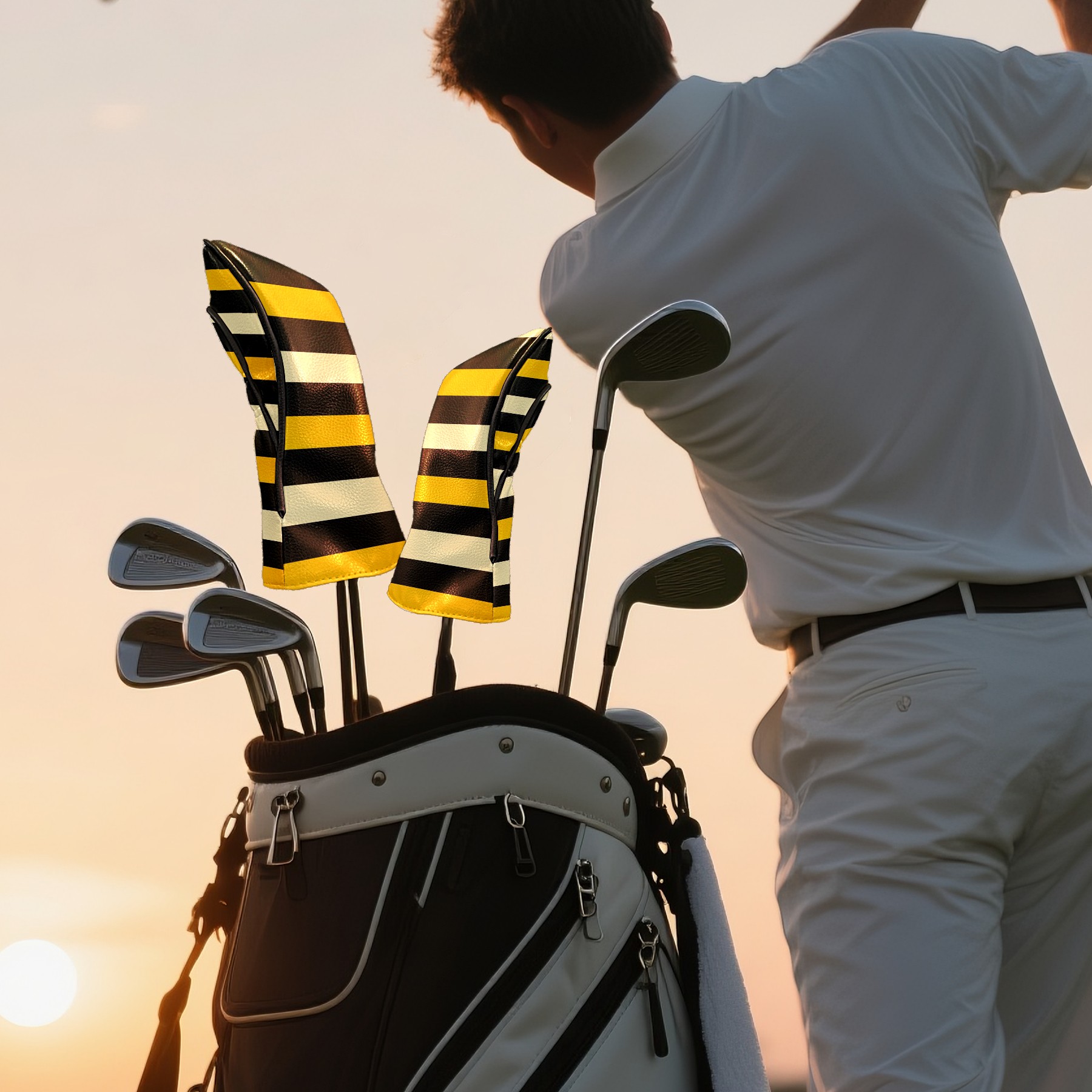 PU Leather Golf Head Covers Set – Fits Drivers/Fairway Woods/Hybrids, Ideal Gifts for Male & Female Golfers Yellow Black Striped Pattern