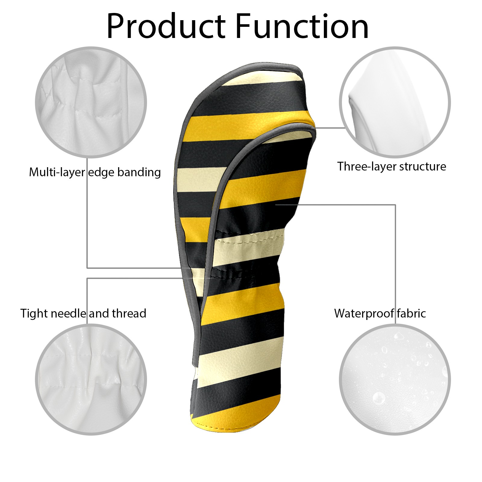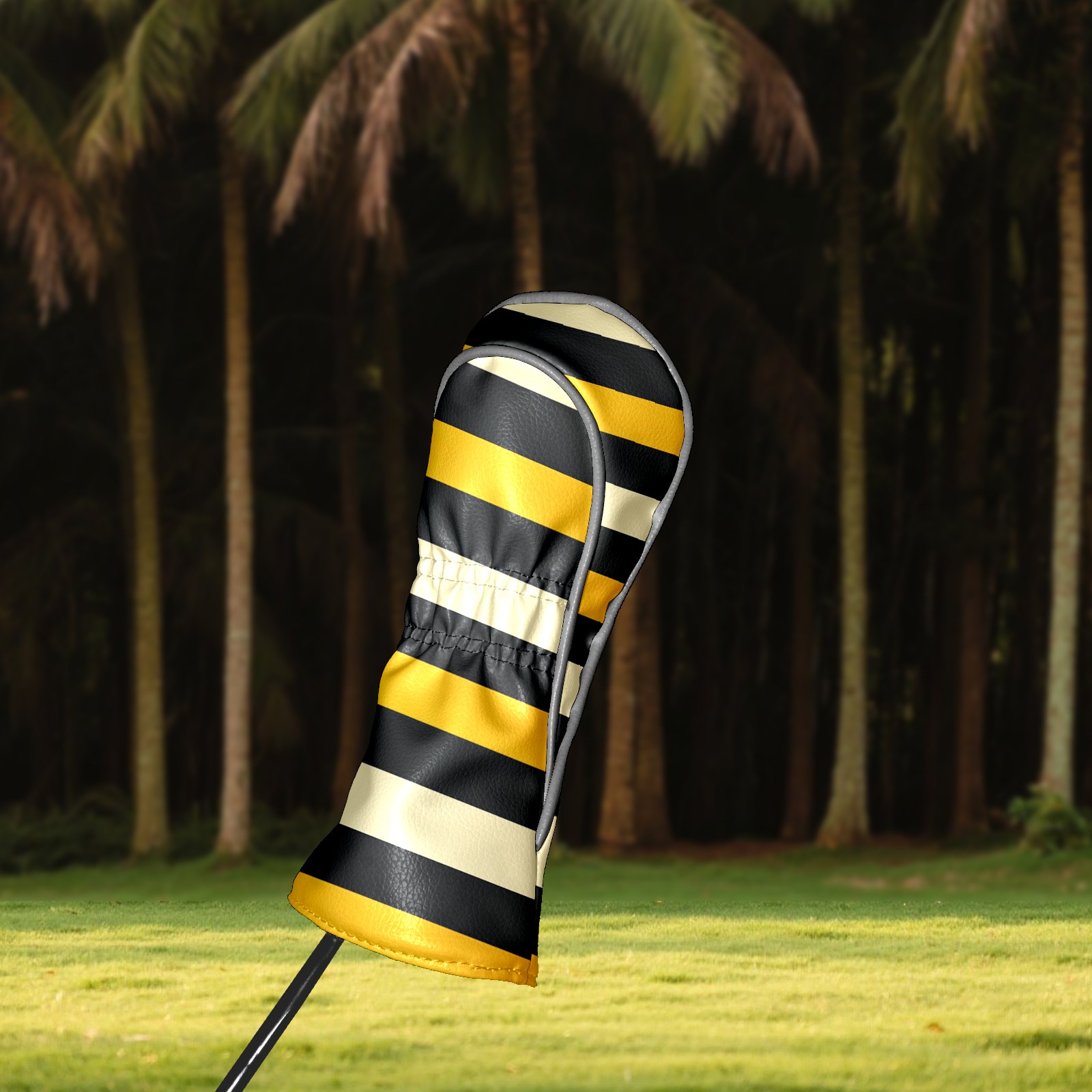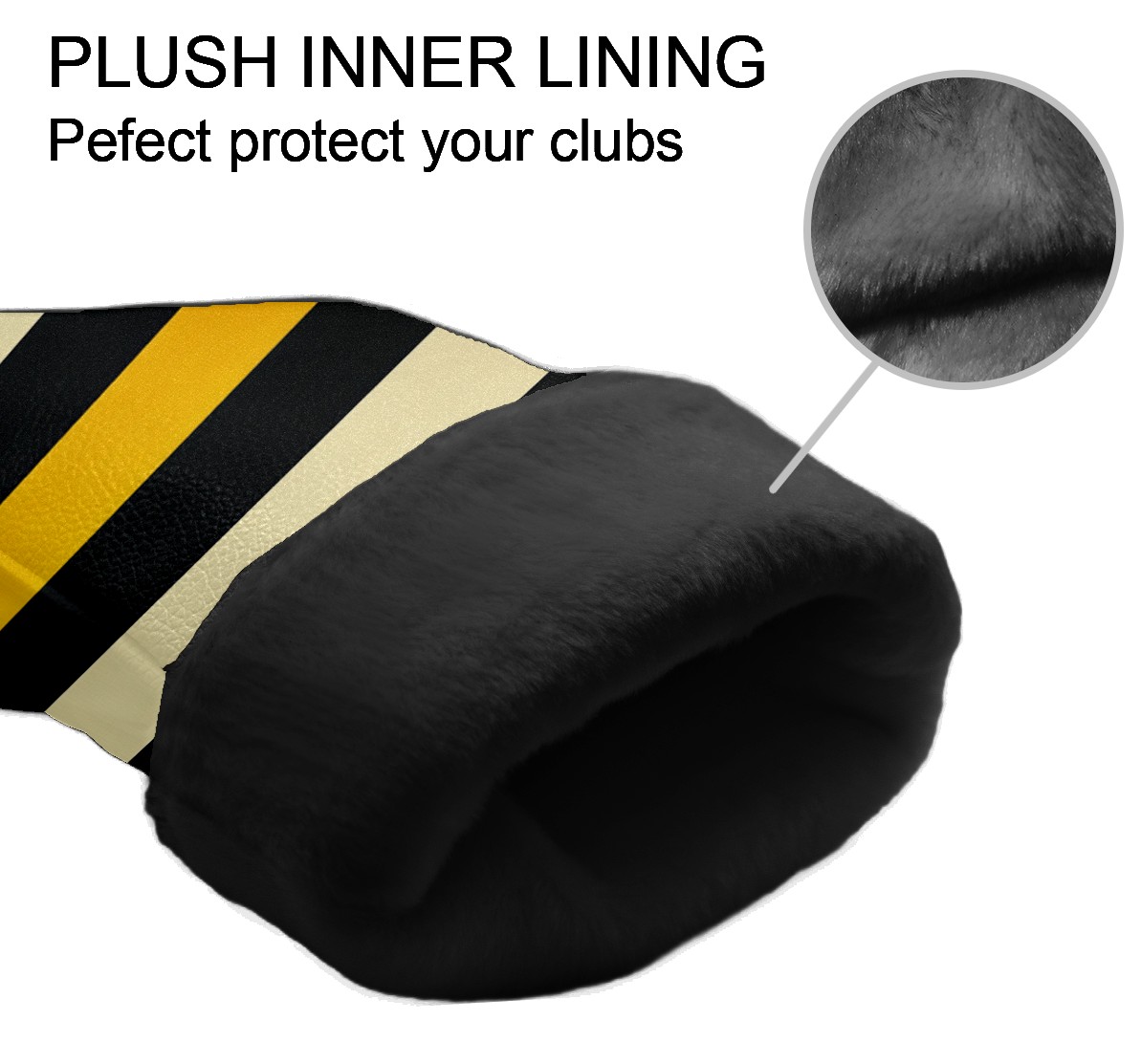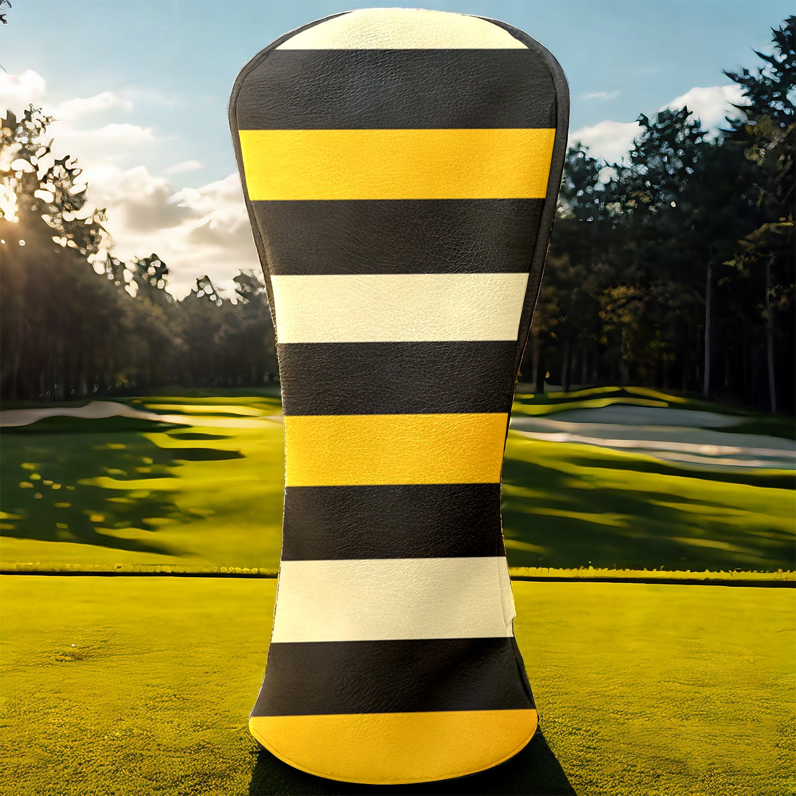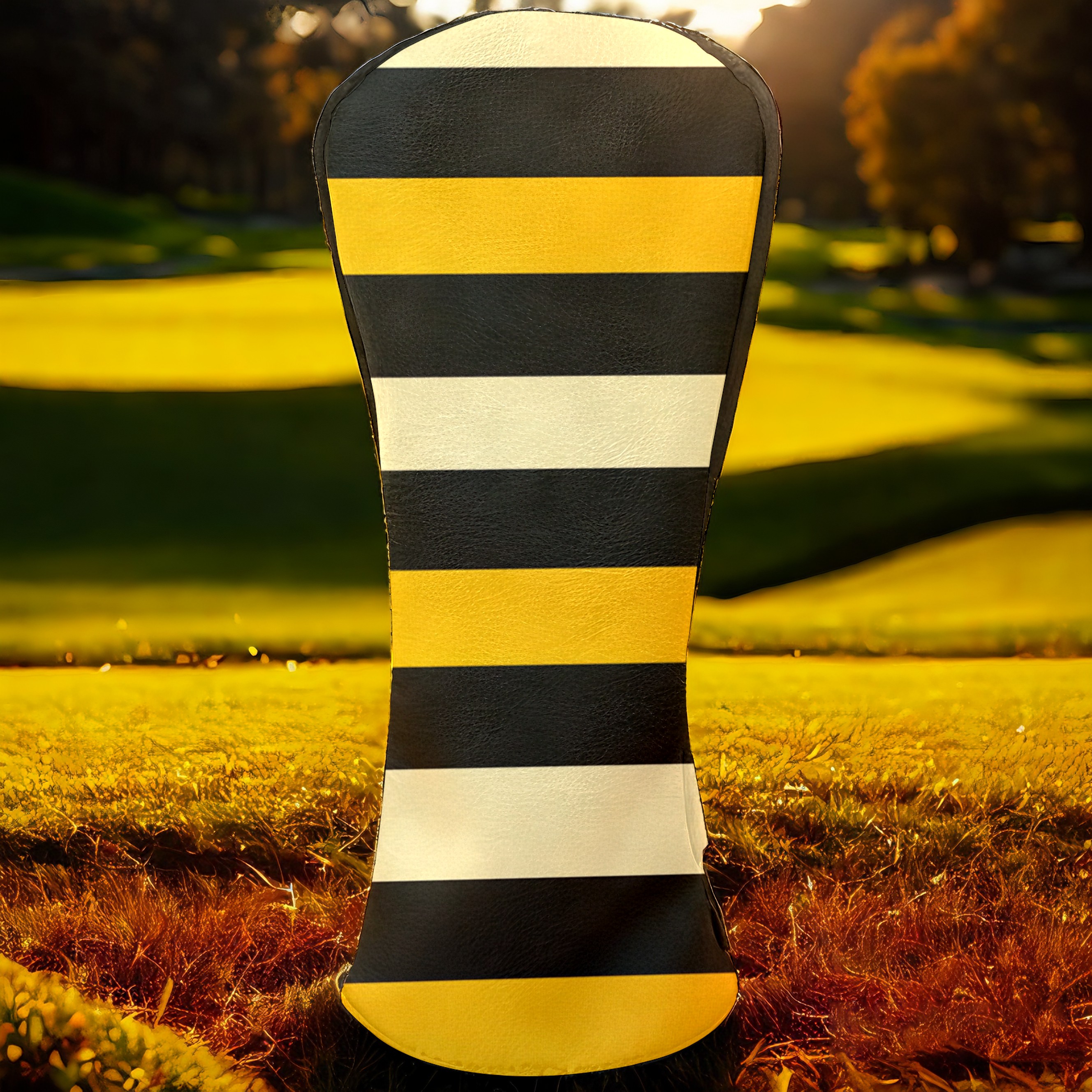 PU Leather Golf Head Covers Set – Fits Drivers/Fairway Woods/Hybrids, Ideal Gifts for Male & Female Golfers Yellow Black Striped Pattern