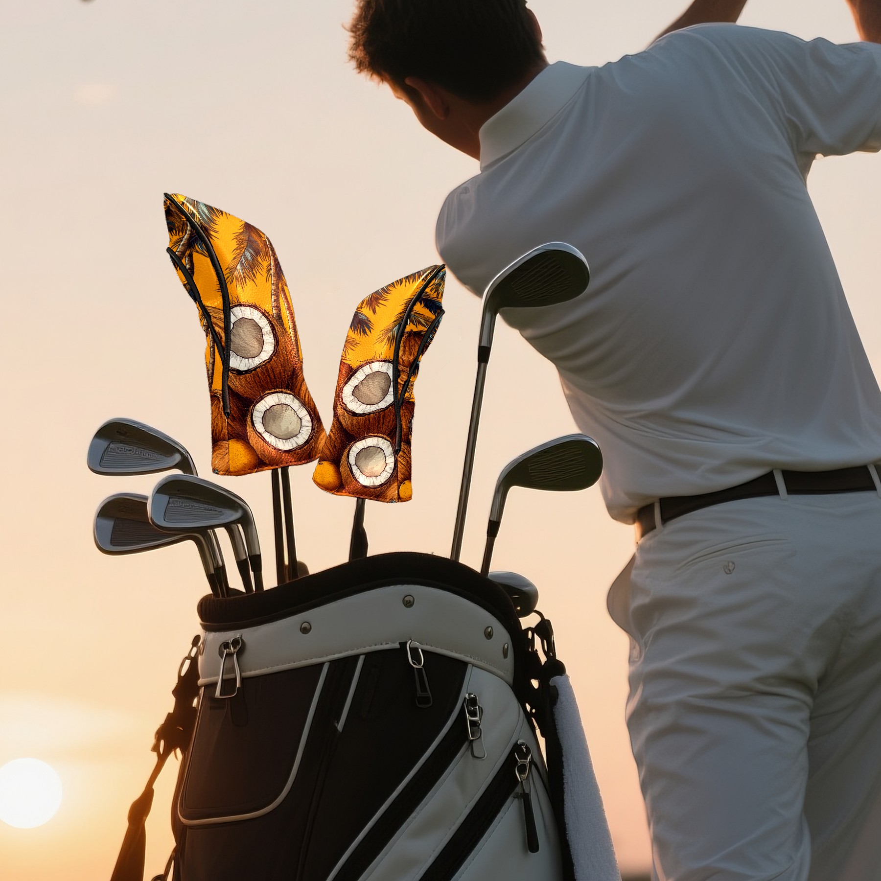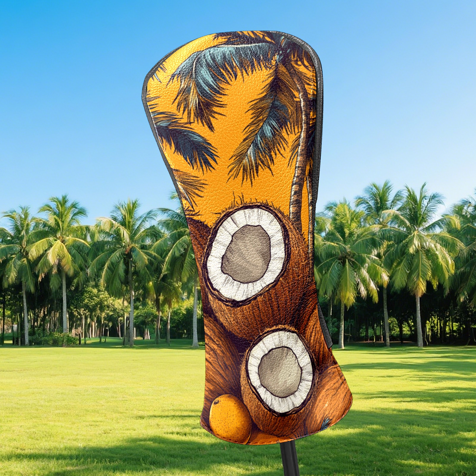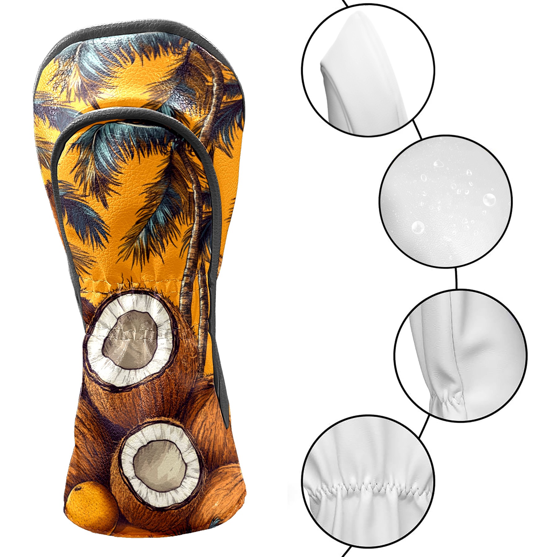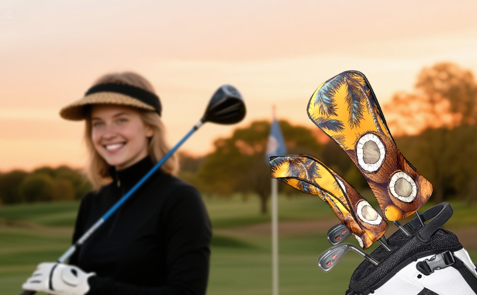 PU Leather Golf Head Covers Set – Fits Drivers/Fairway Woods/Hybrids, Ideal Gifts for Male & Female Golfers Retro Coconut Pattern