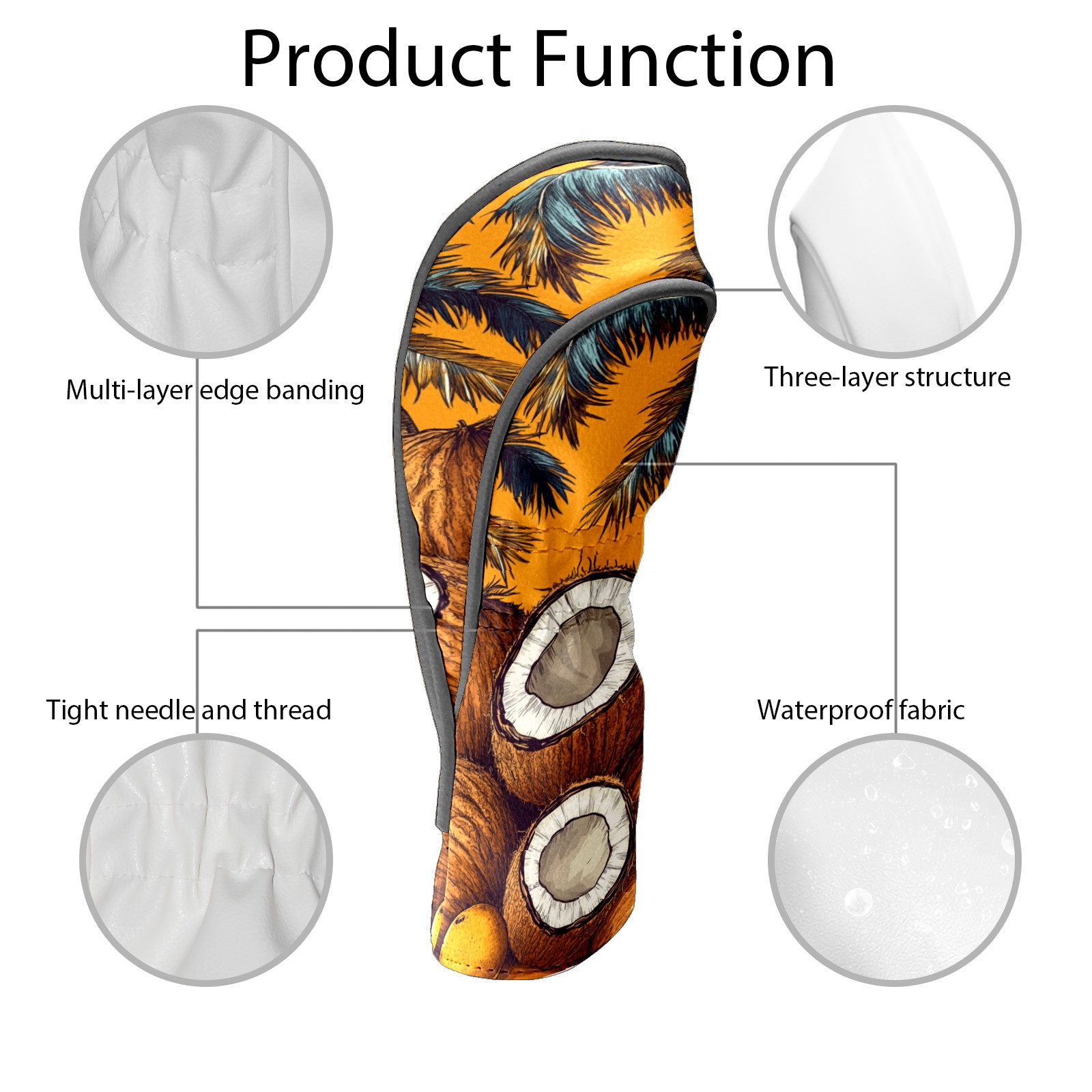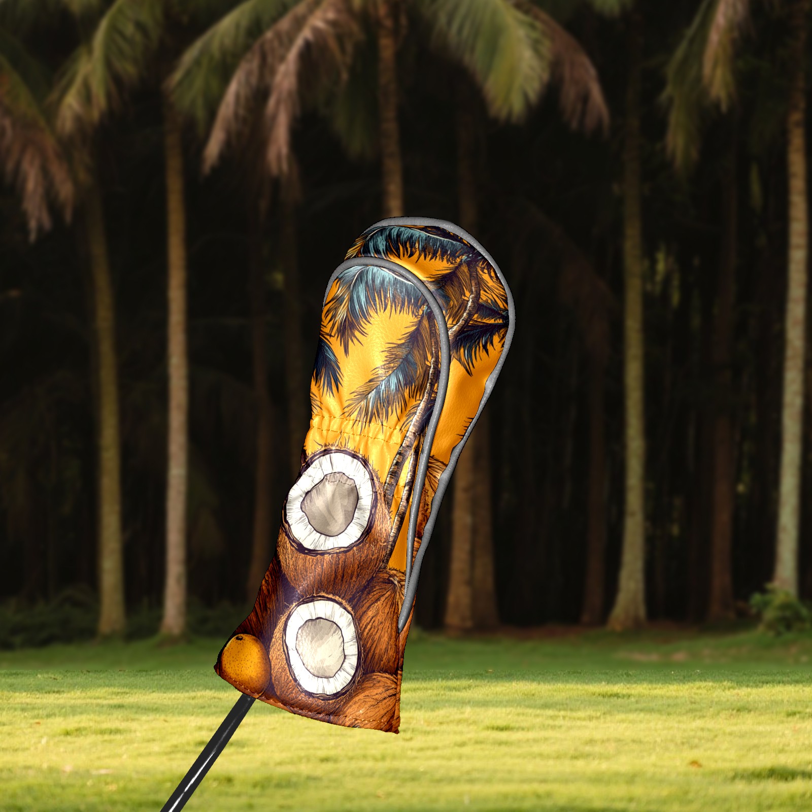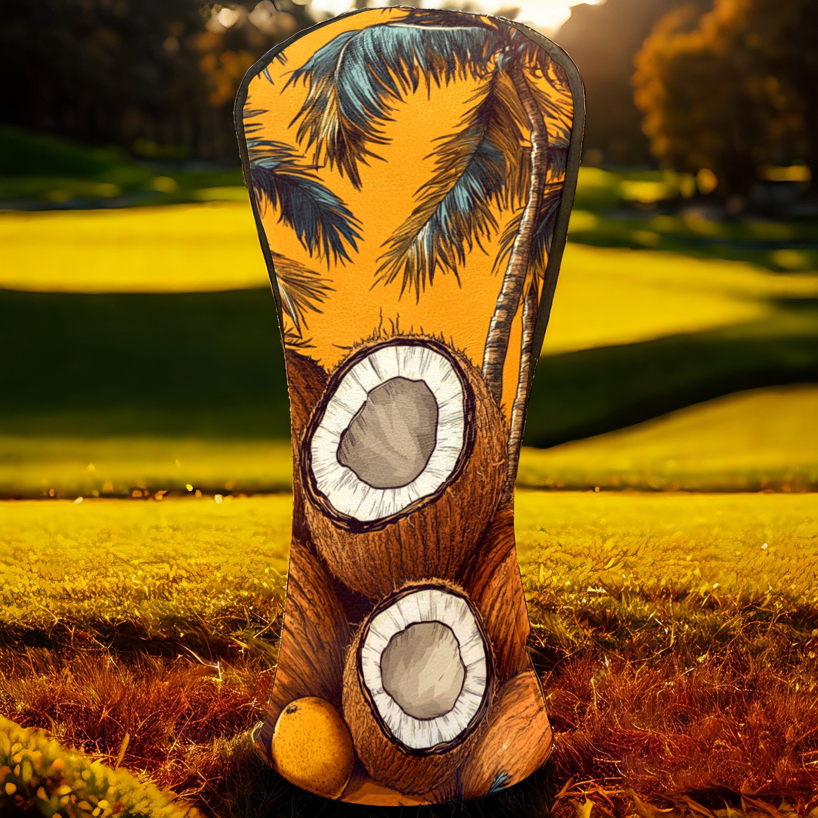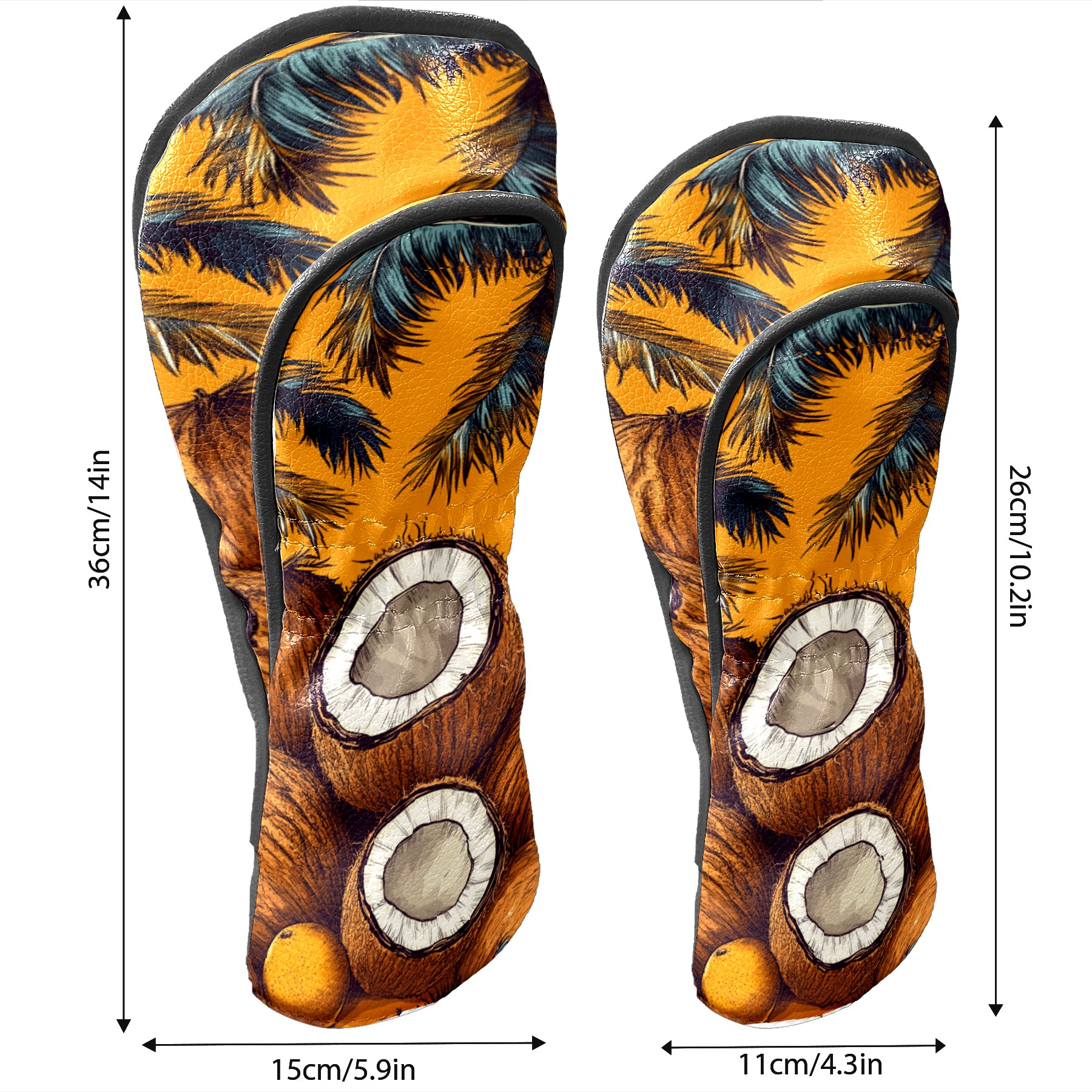 PU Leather Golf Head Covers Set – Fits Drivers/Fairway Woods/Hybrids, Ideal Gifts for Male & Female Golfers Retro Coconut Pattern