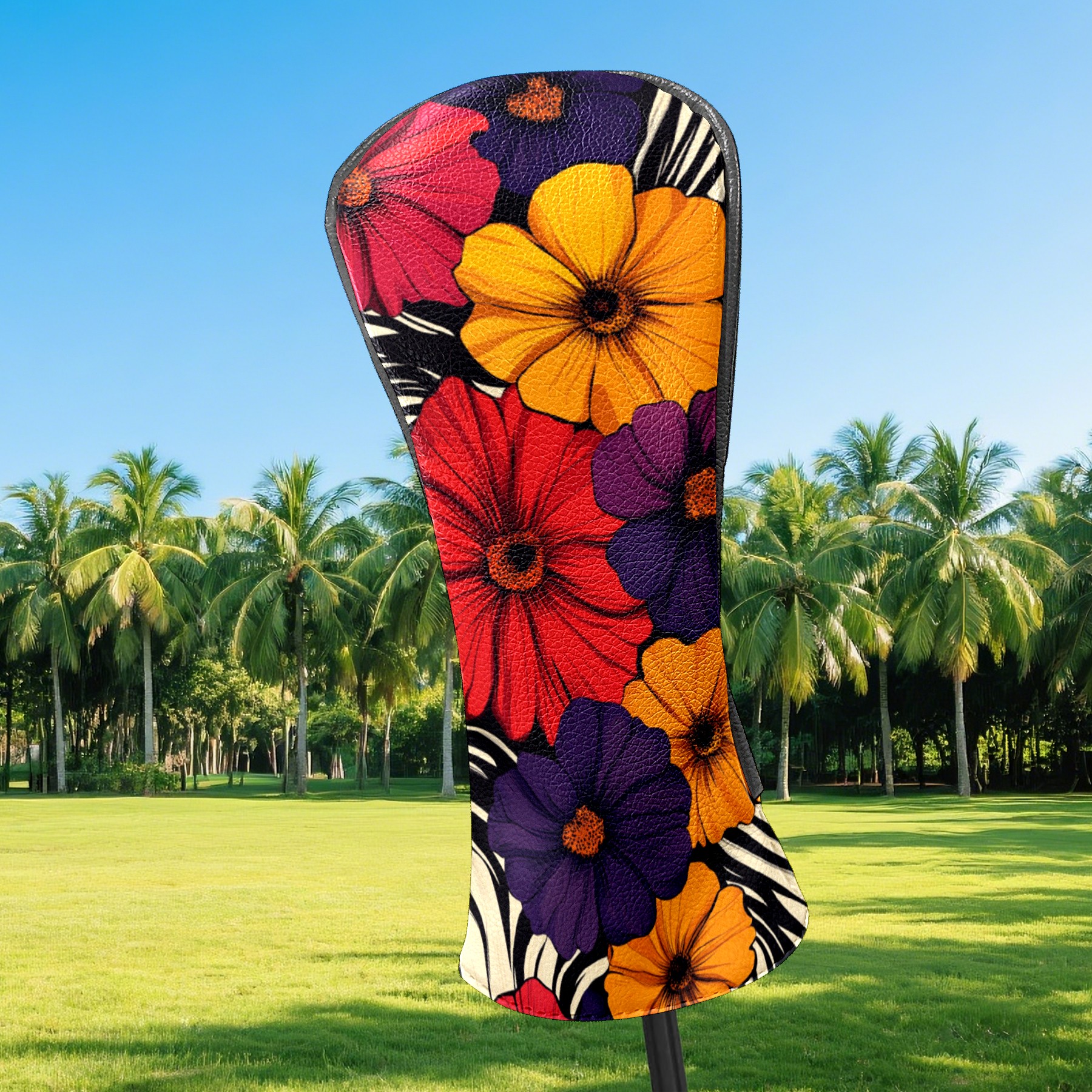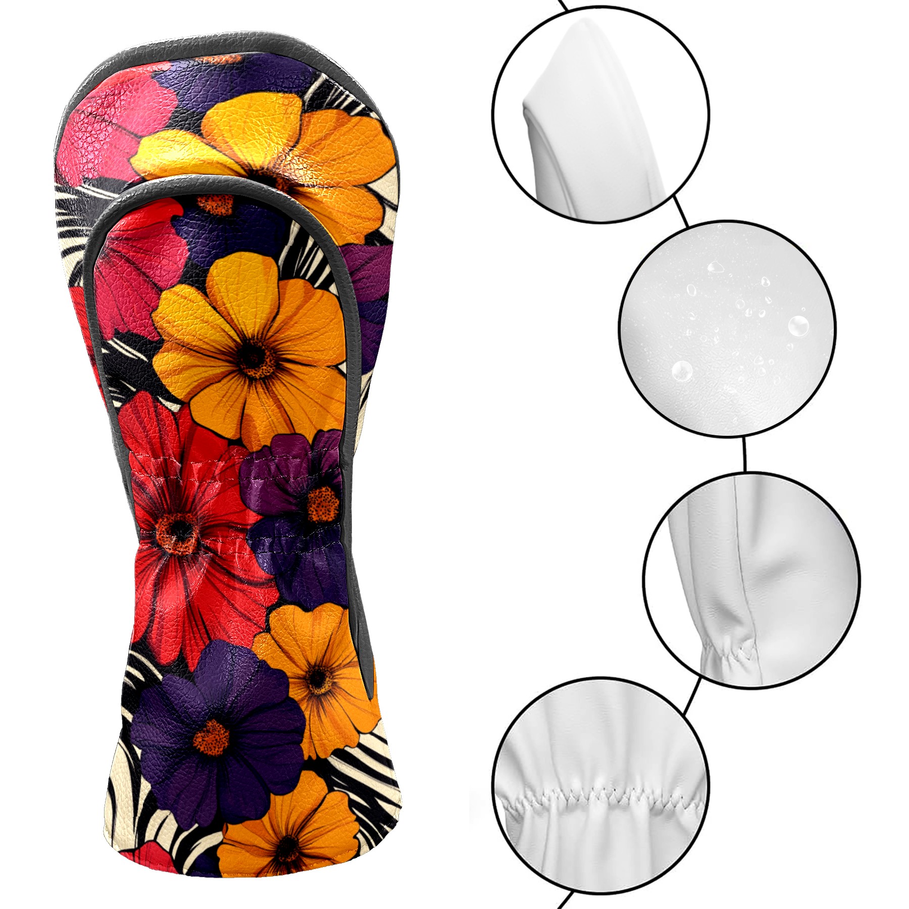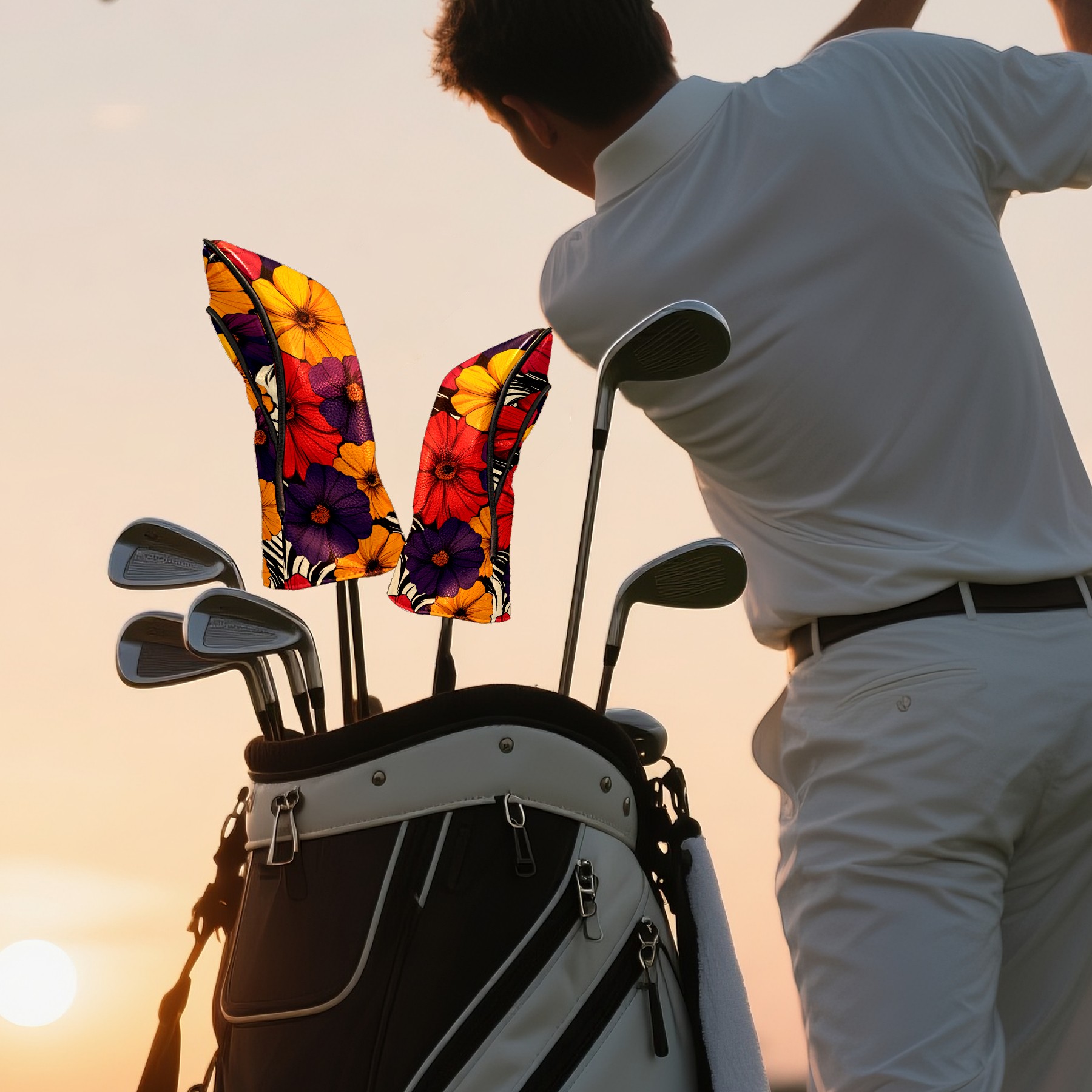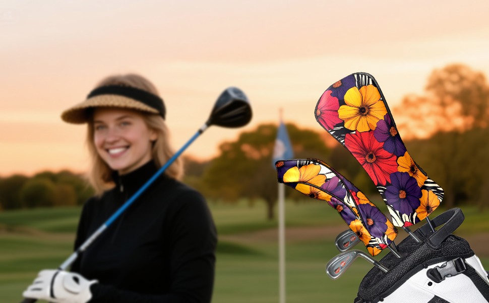 PU Leather Golf Head Covers Set – Fits Drivers/Fairway Woods/Hybrids, Ideal Gifts for Male & Female Golfers Flower Pattern