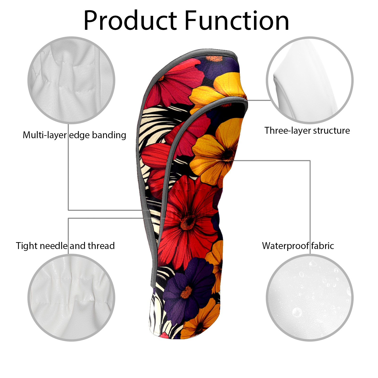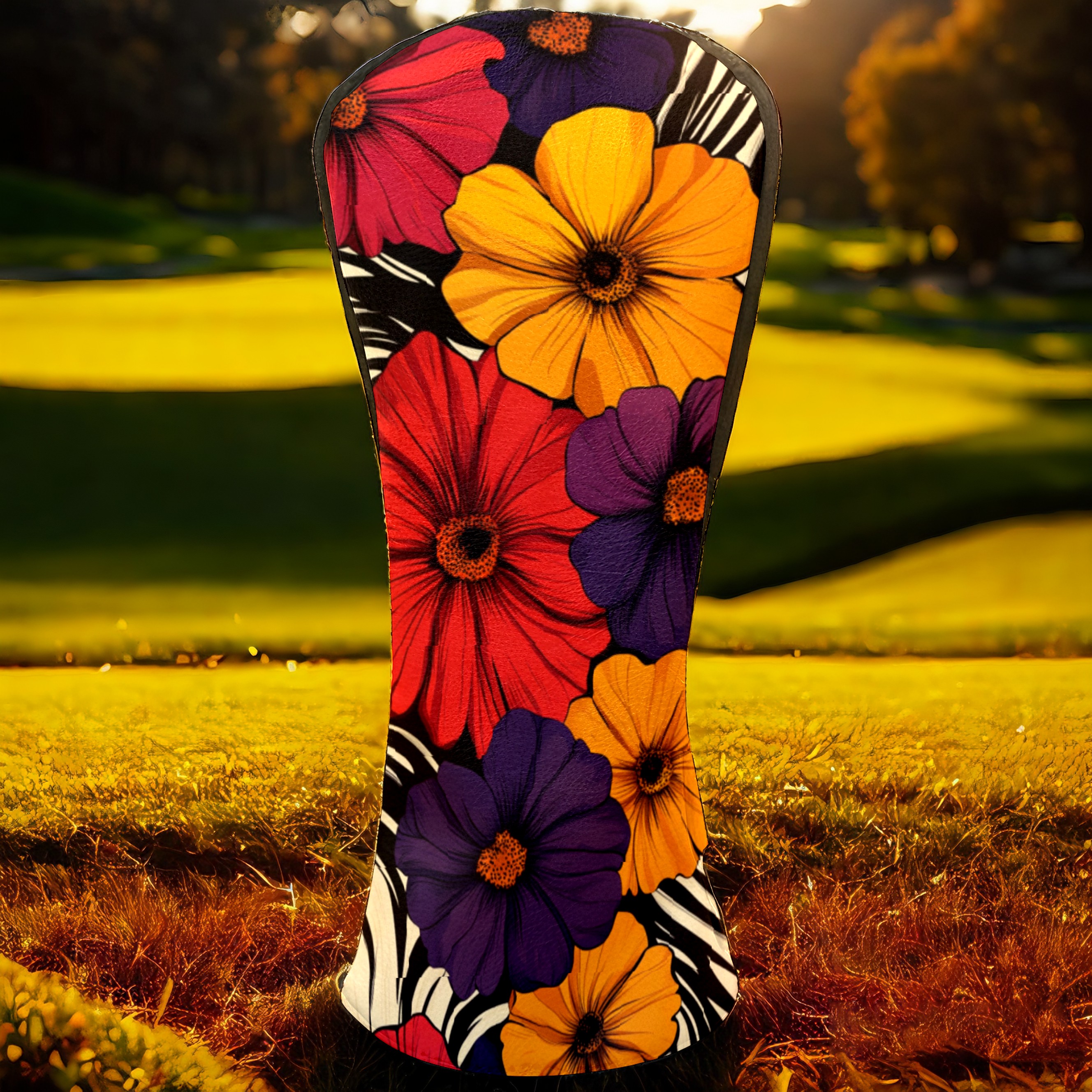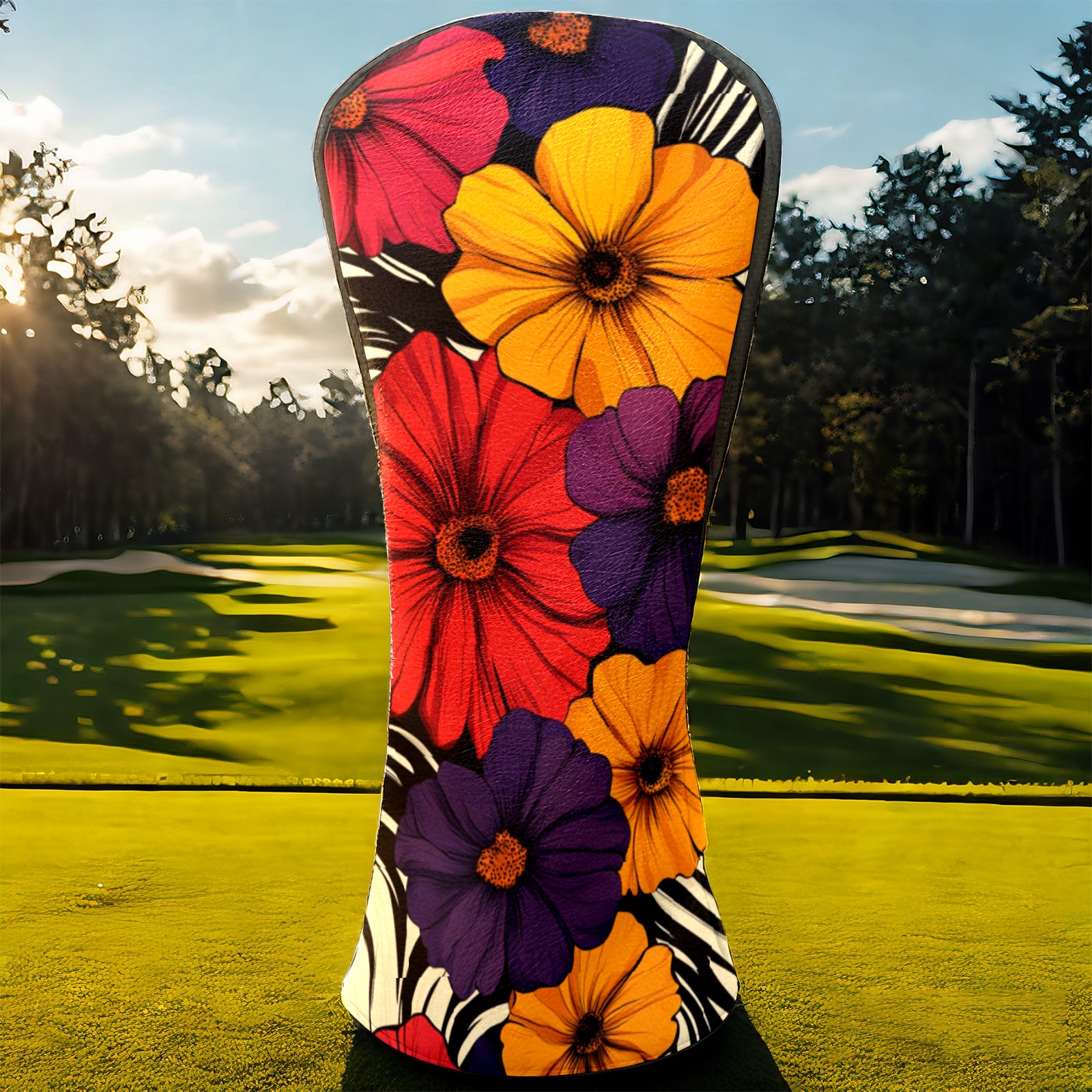 PU Leather Golf Head Covers Set – Fits Drivers/Fairway Woods/Hybrids, Ideal Gifts for Male & Female Golfers Flower Pattern