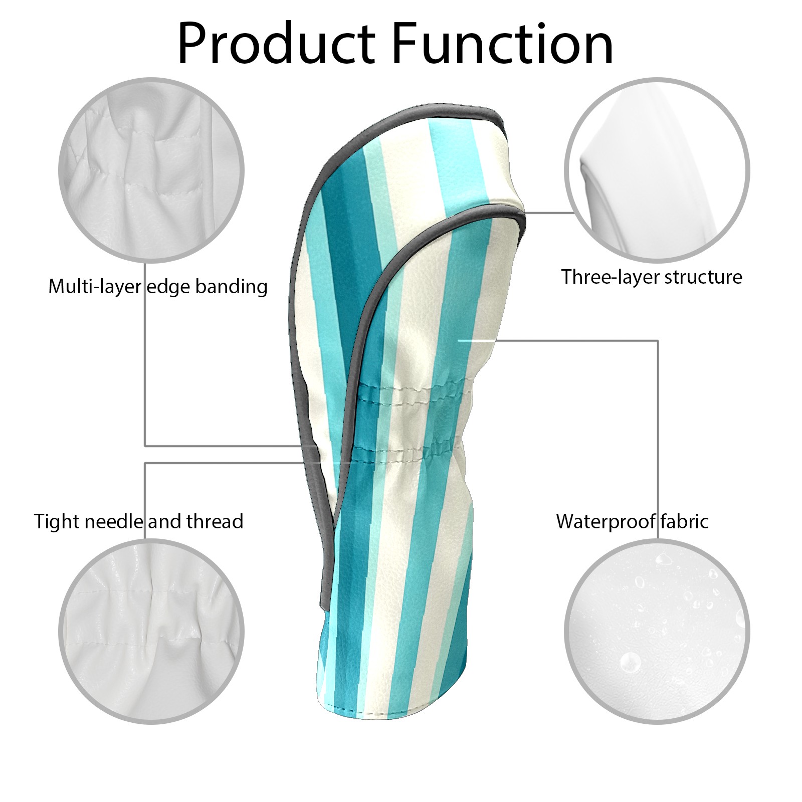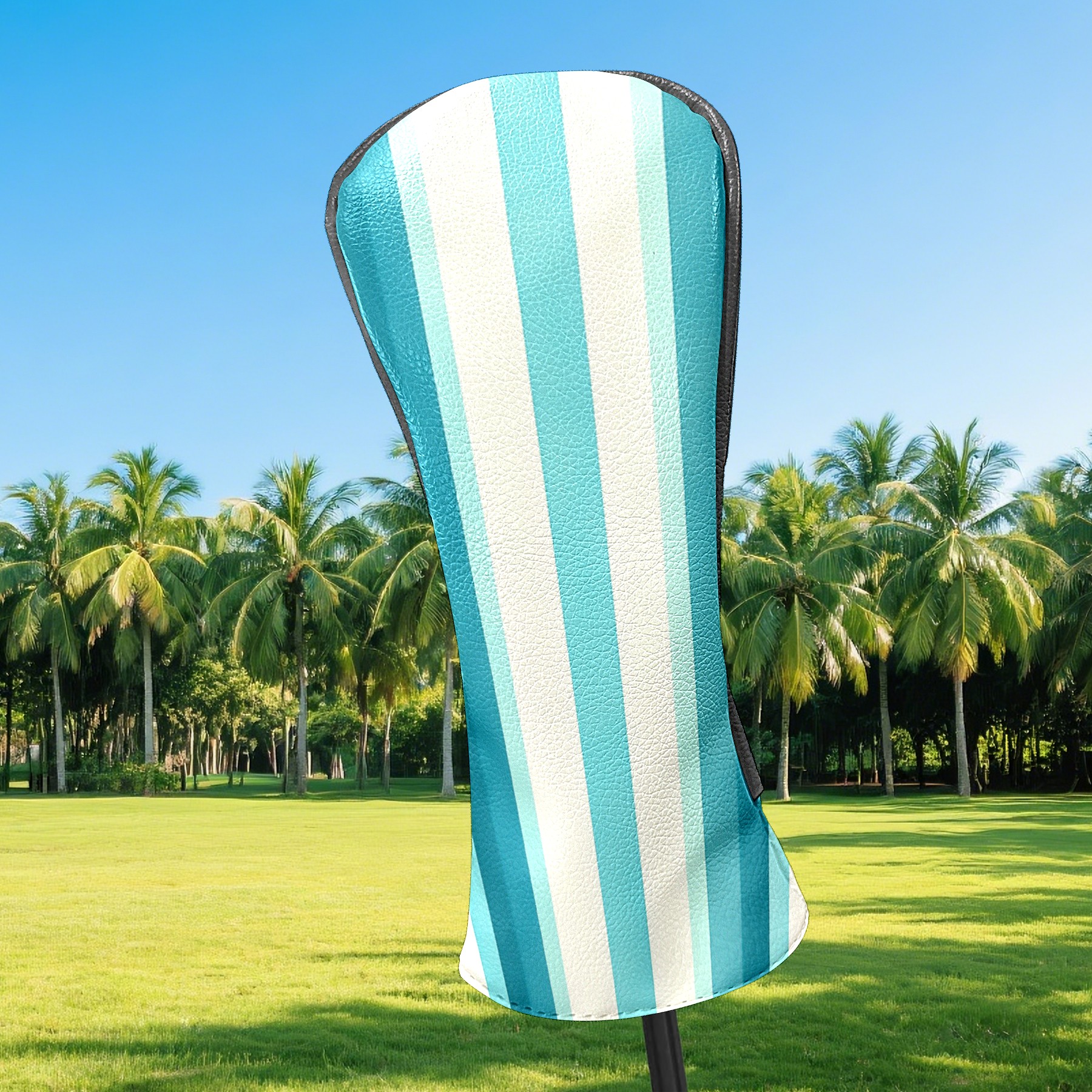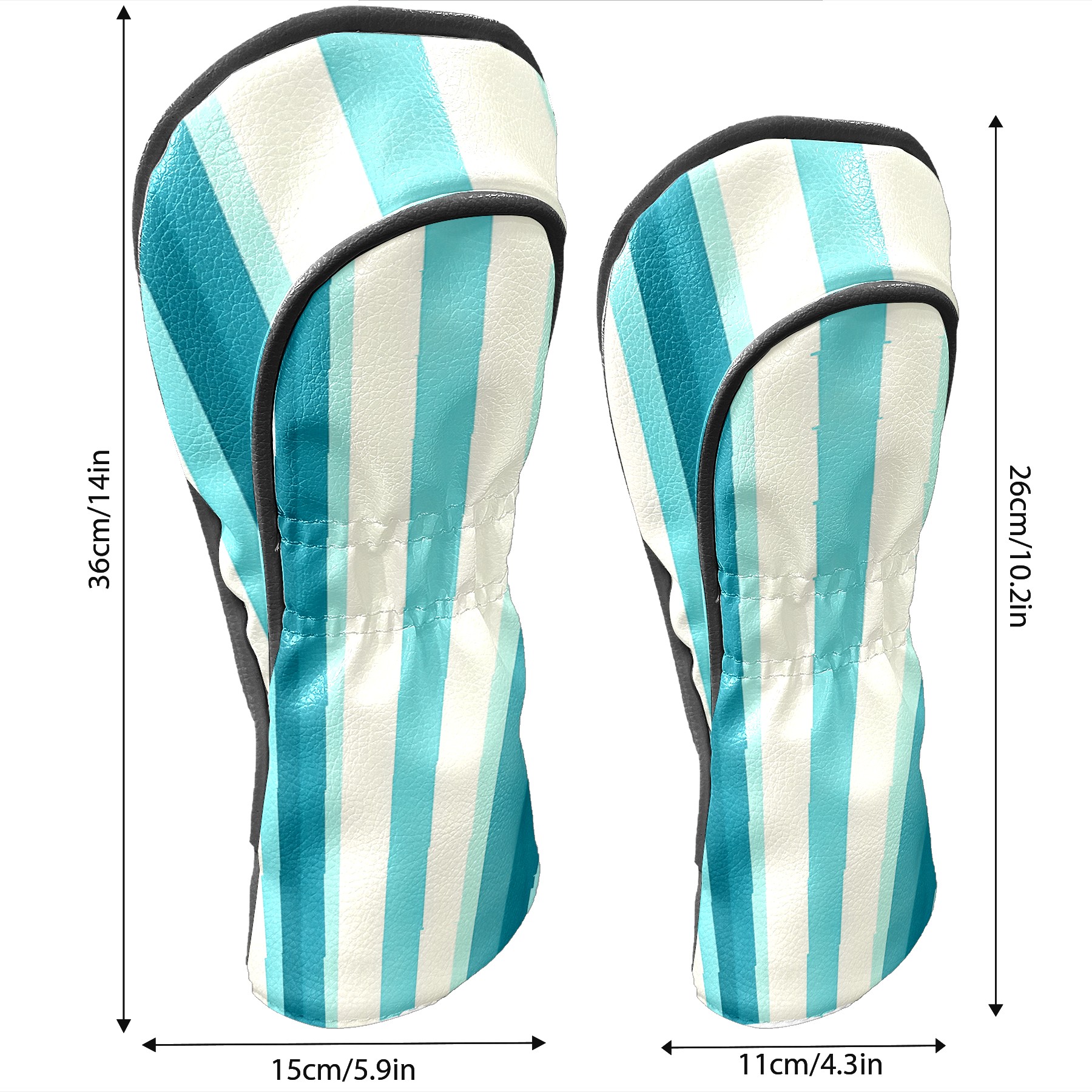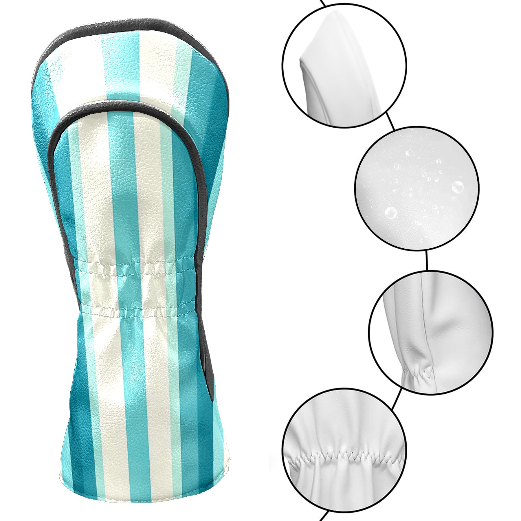 PU Leather Golf Head Covers Set – Fits Drivers/Fairway Woods/Hybrids, Ideal Gifts for Male & Female Golfers Blue White Striped Pattern
