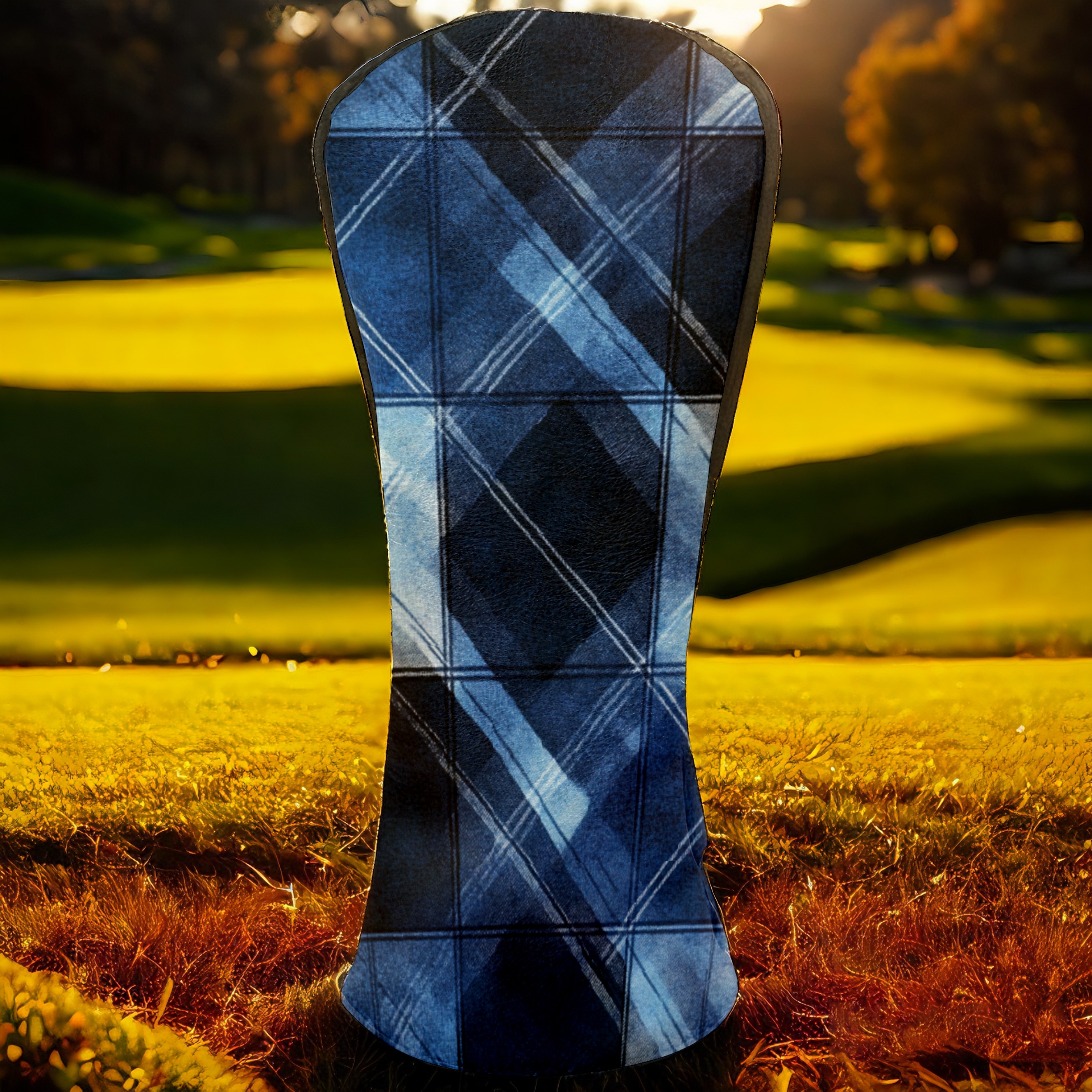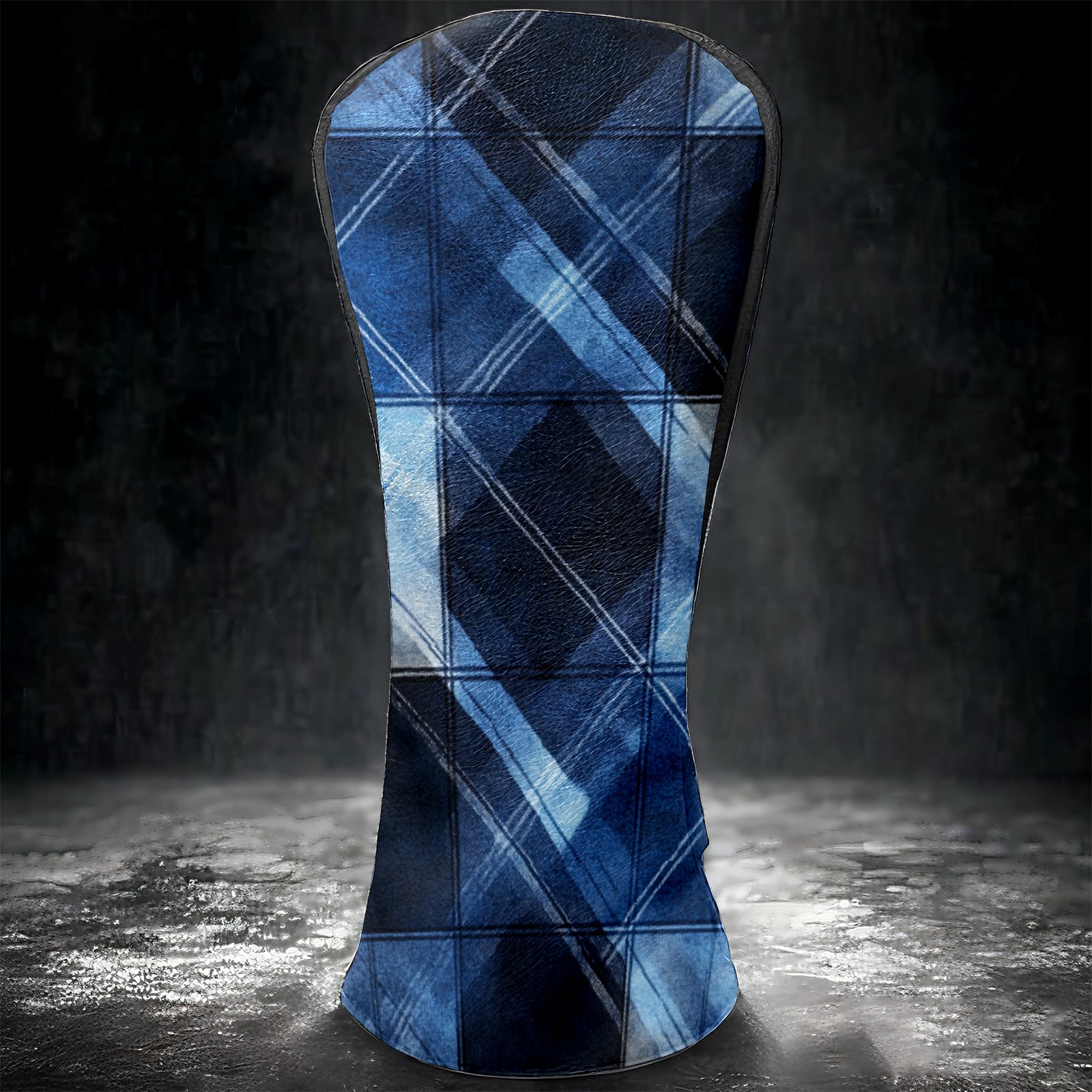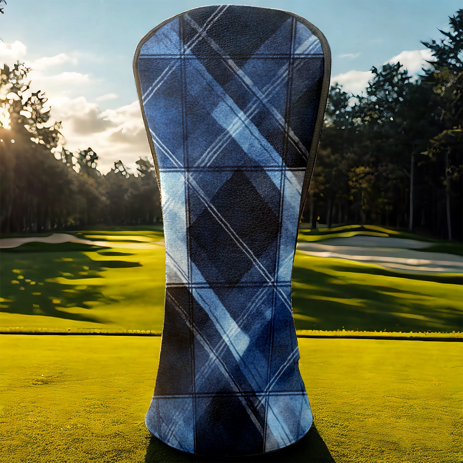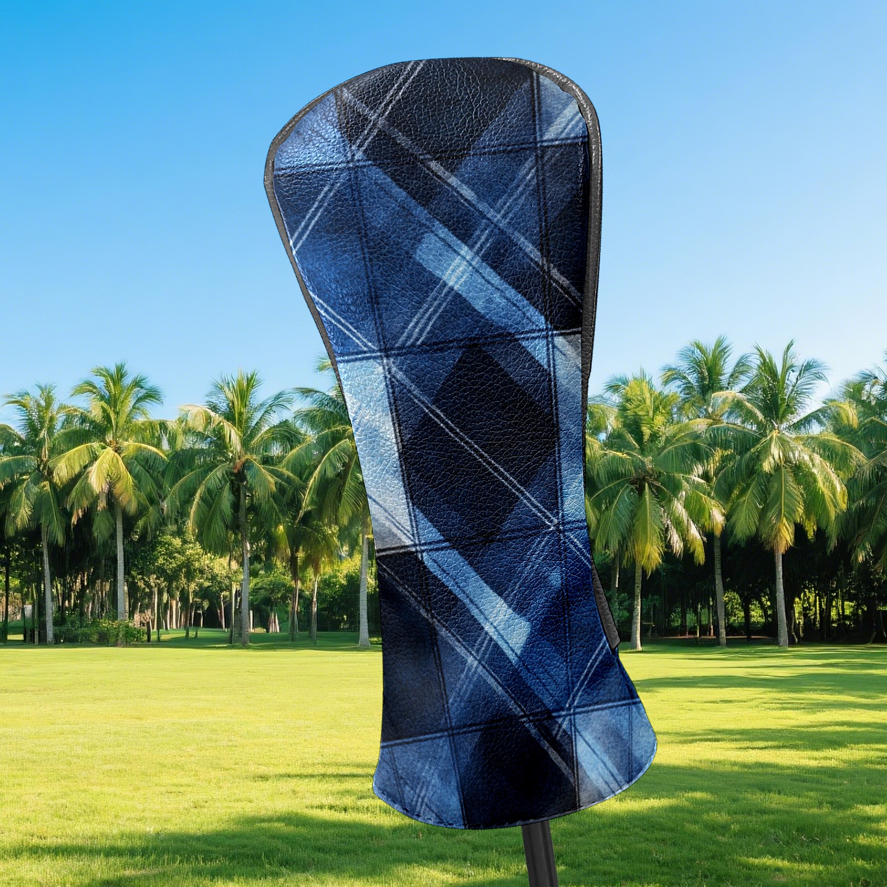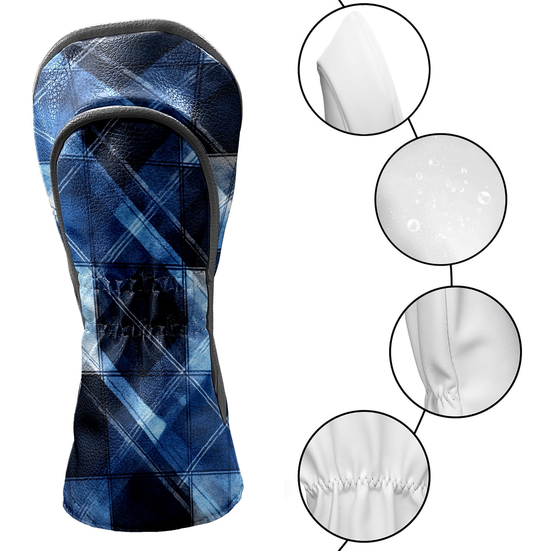 PU Leather Golf Head Covers Set – Fits Drivers/Fairway Woods/Hybrids, Ideal Gifts for Male & Female Golfers Dark Blue Plaid Pattern