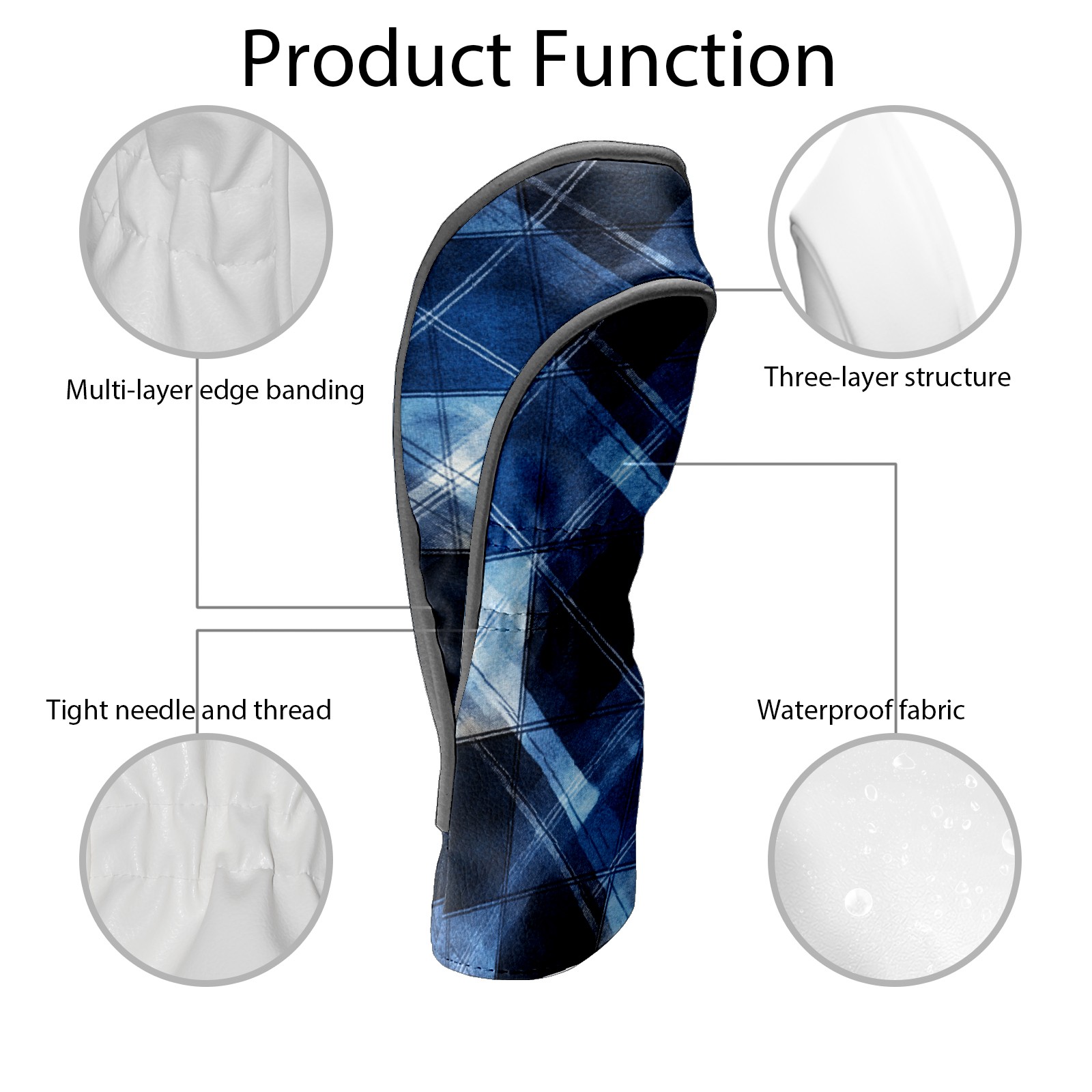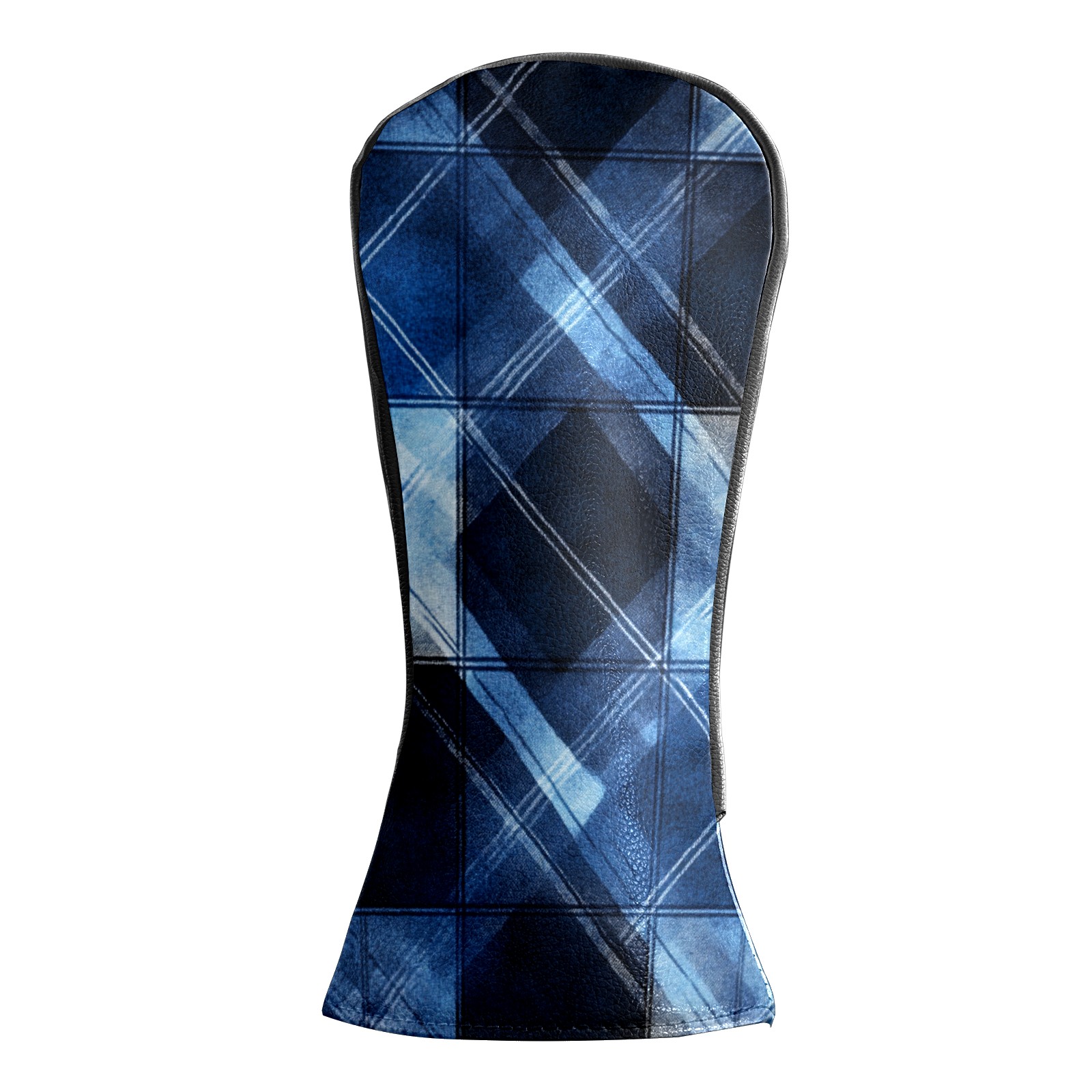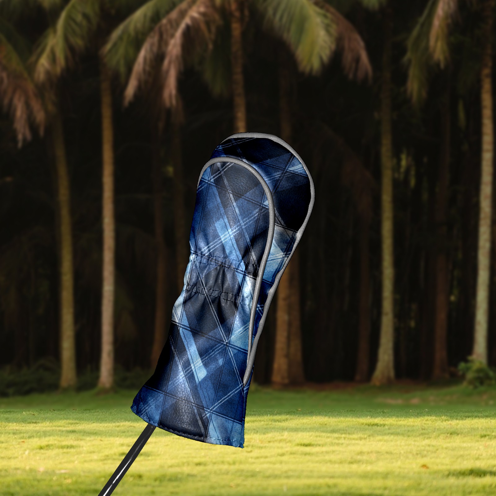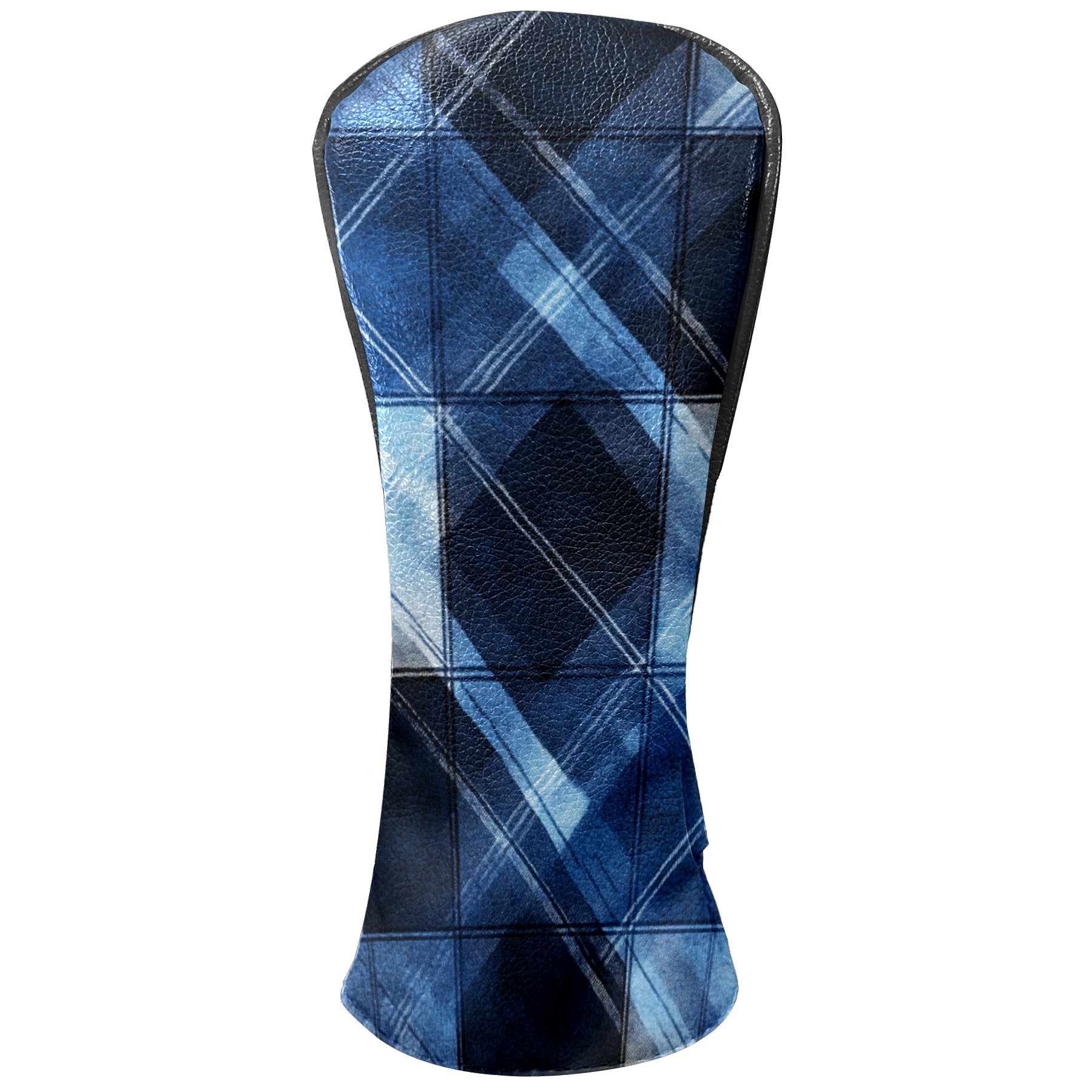 PU Leather Golf Head Covers Set – Fits Drivers/Fairway Woods/Hybrids, Ideal Gifts for Male & Female Golfers Dark Blue Plaid Pattern