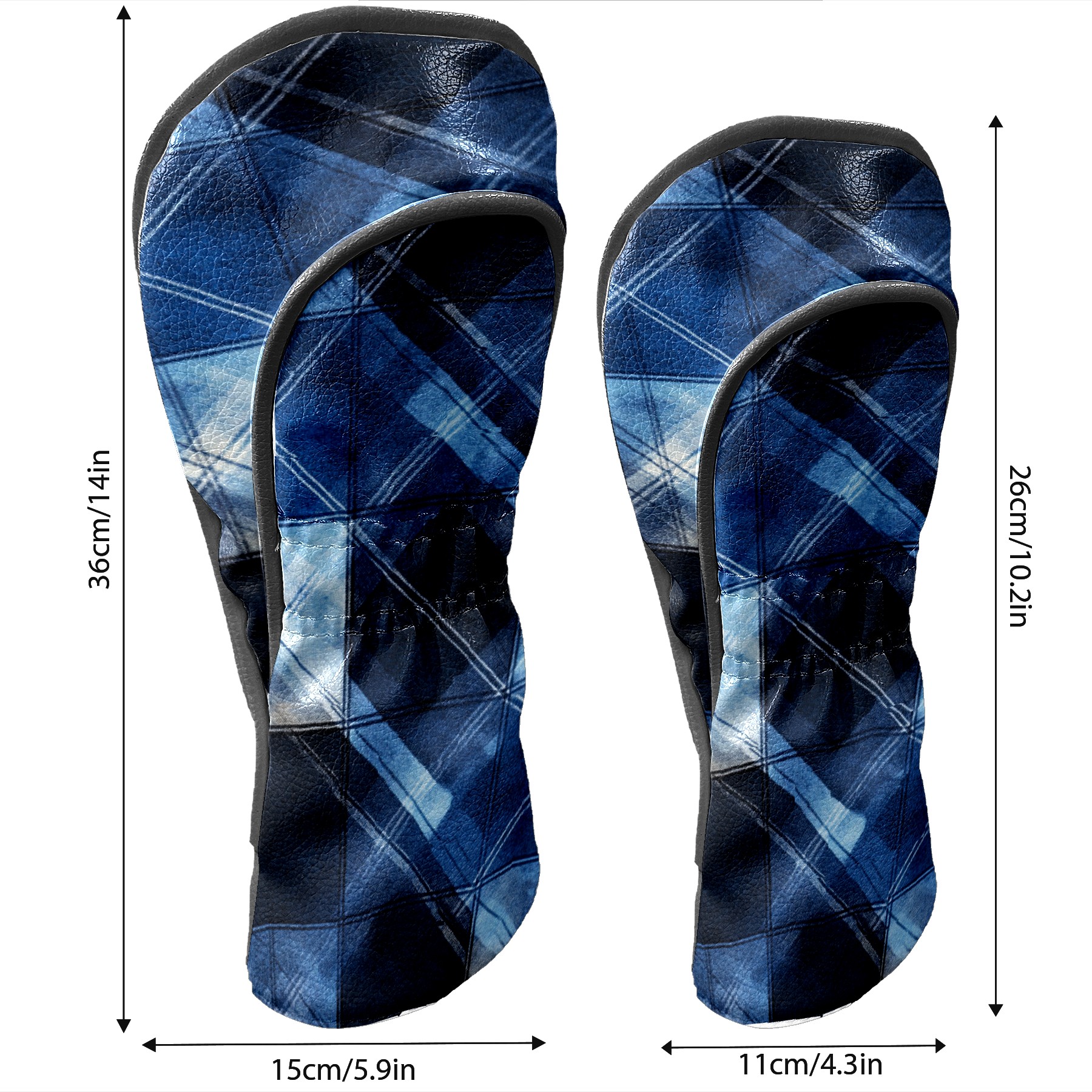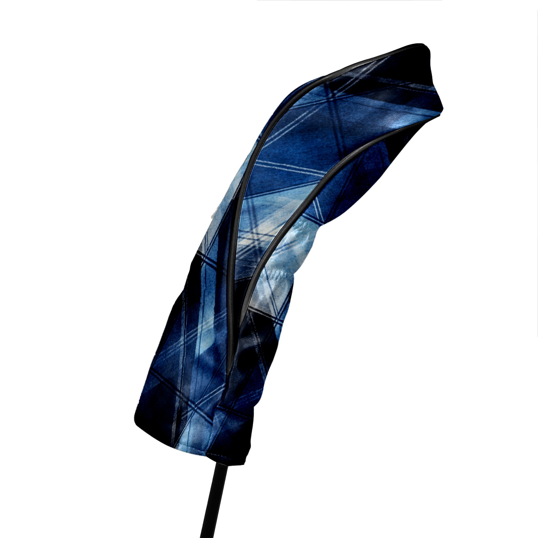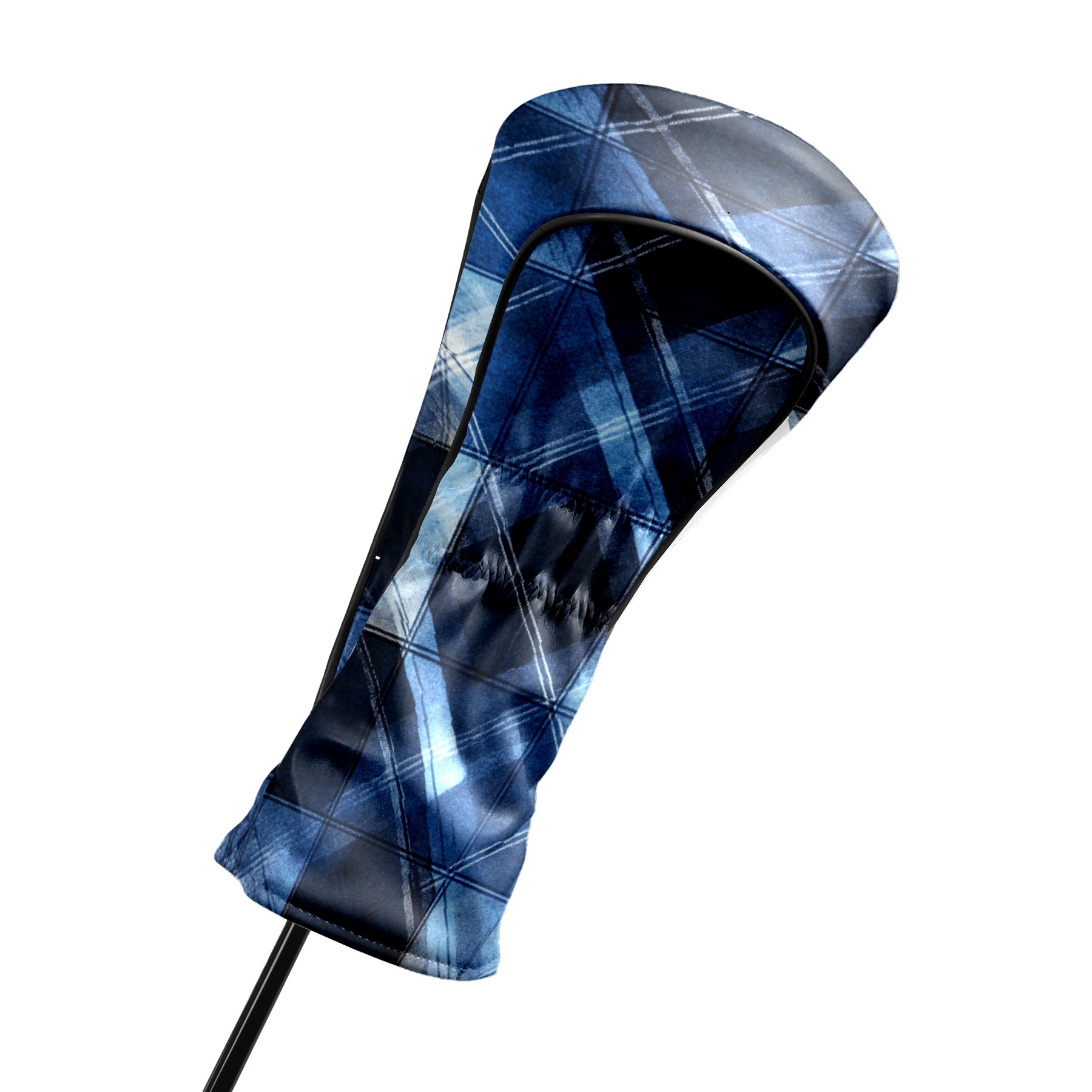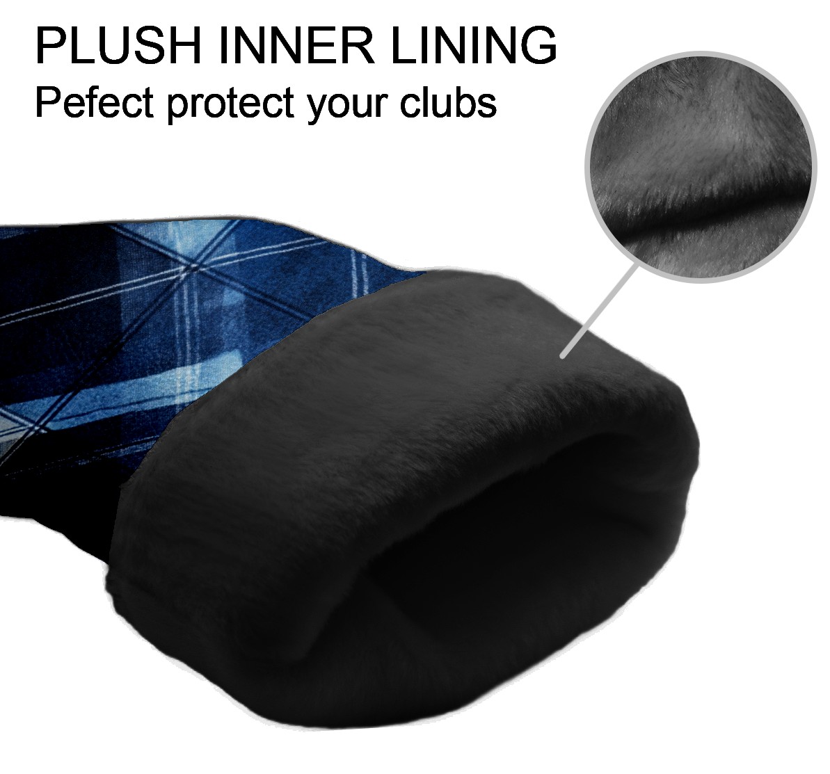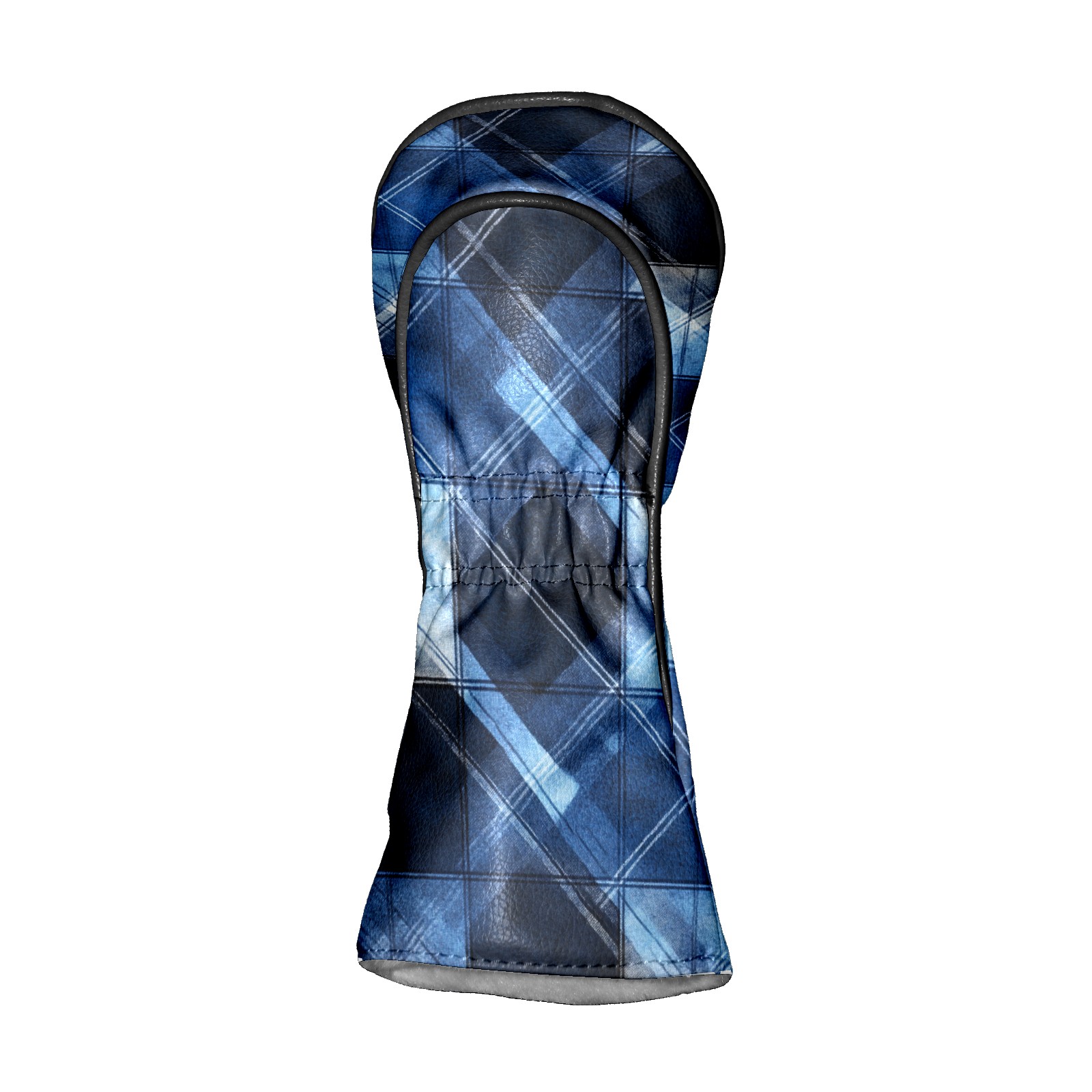 PU Leather Golf Head Covers Set – Fits Drivers/Fairway Woods/Hybrids, Ideal Gifts for Male & Female Golfers Dark Blue Plaid Pattern