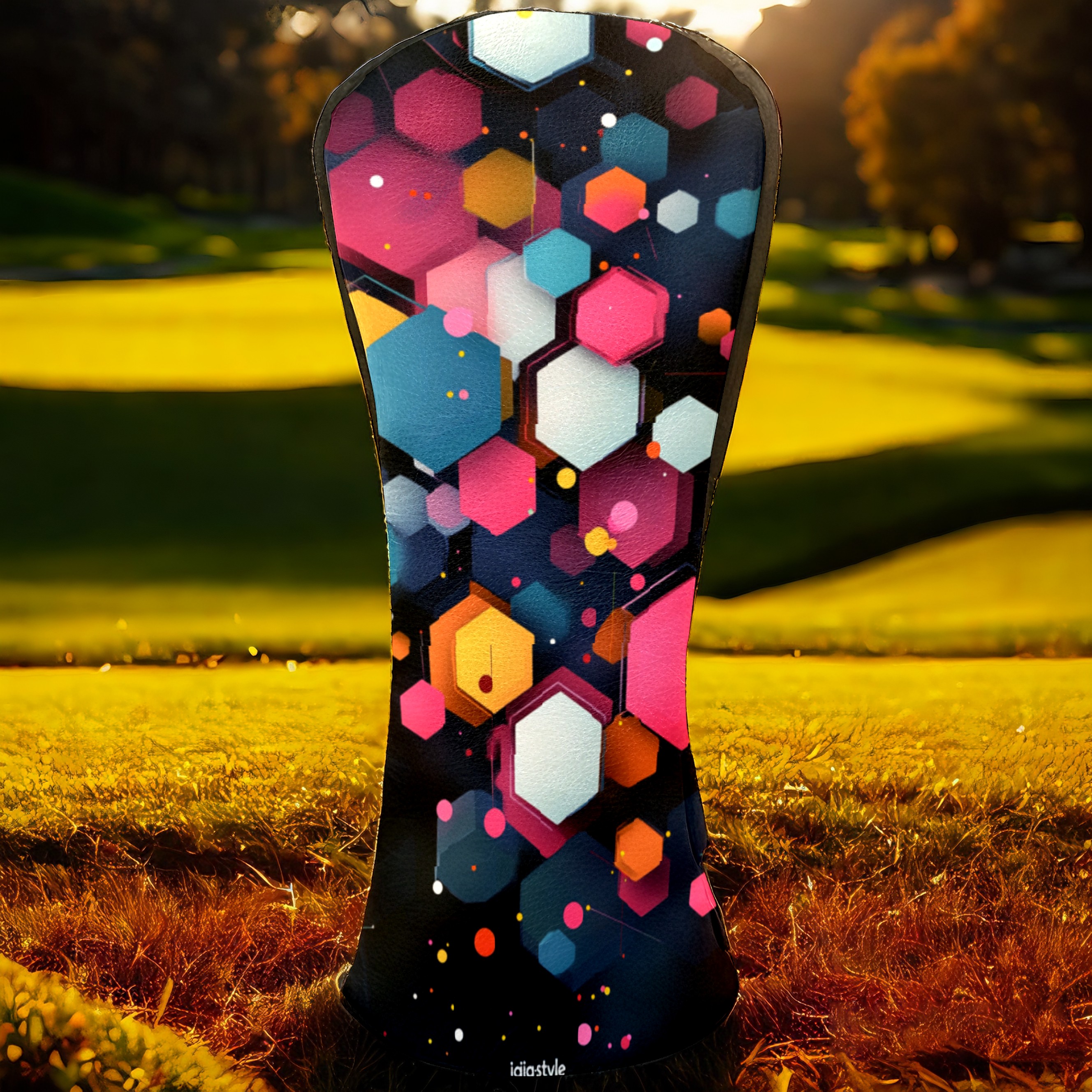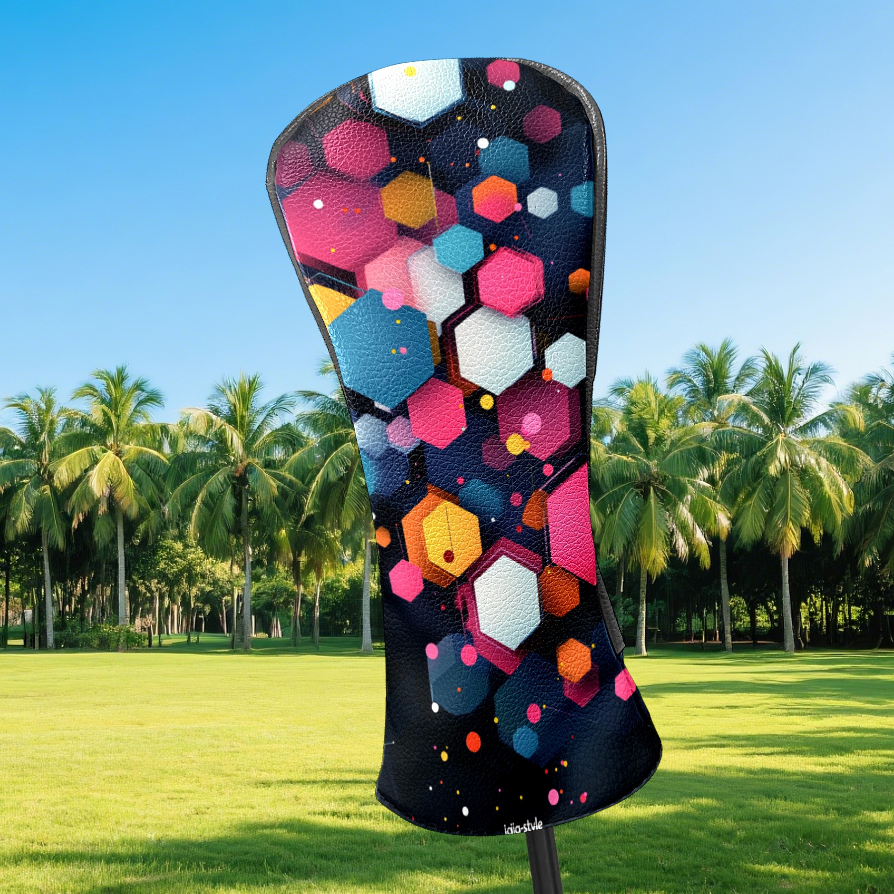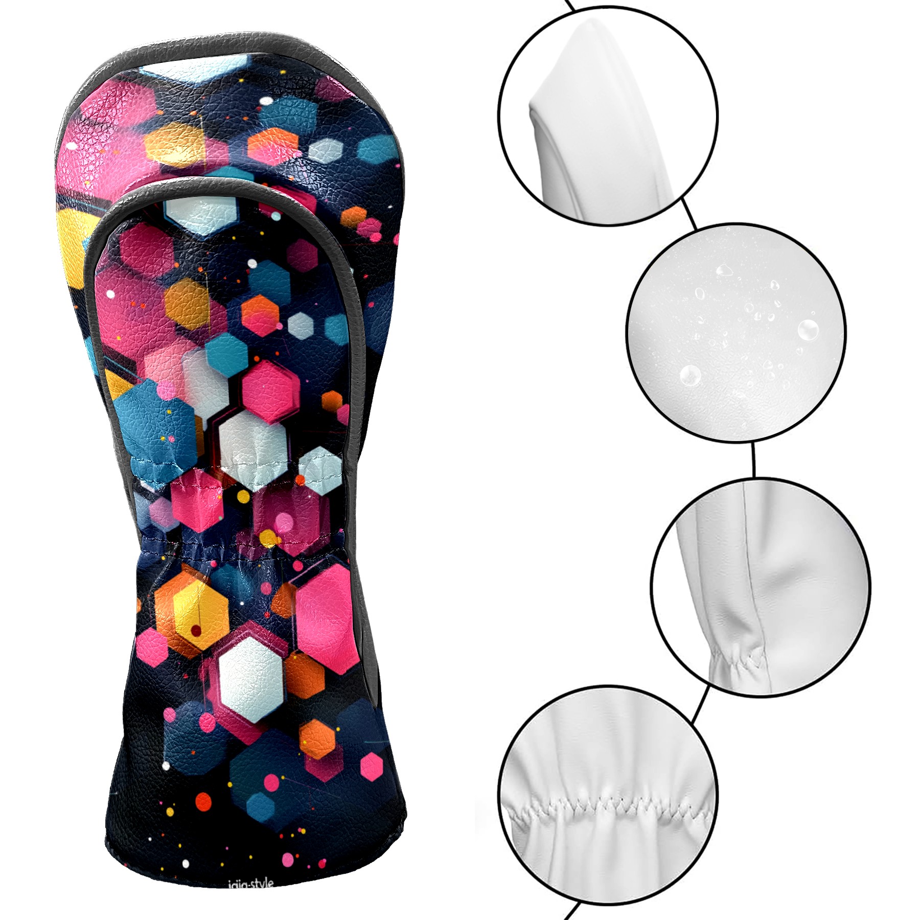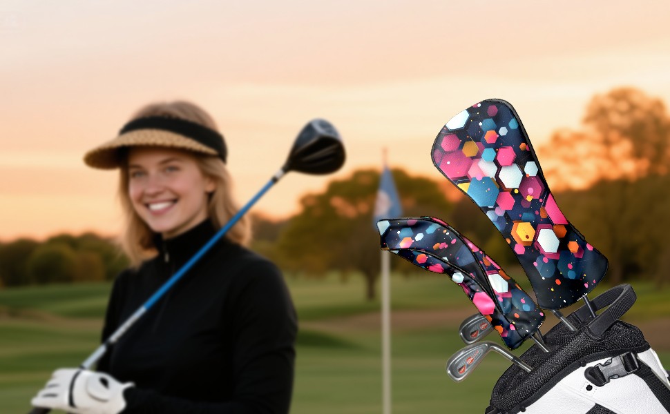 PU Leather Golf Head Covers Set – Fits Drivers/Fairway Woods/Hybrids, Ideal Gifts for Male & Female Golfers Colorful Polygonal Pattern