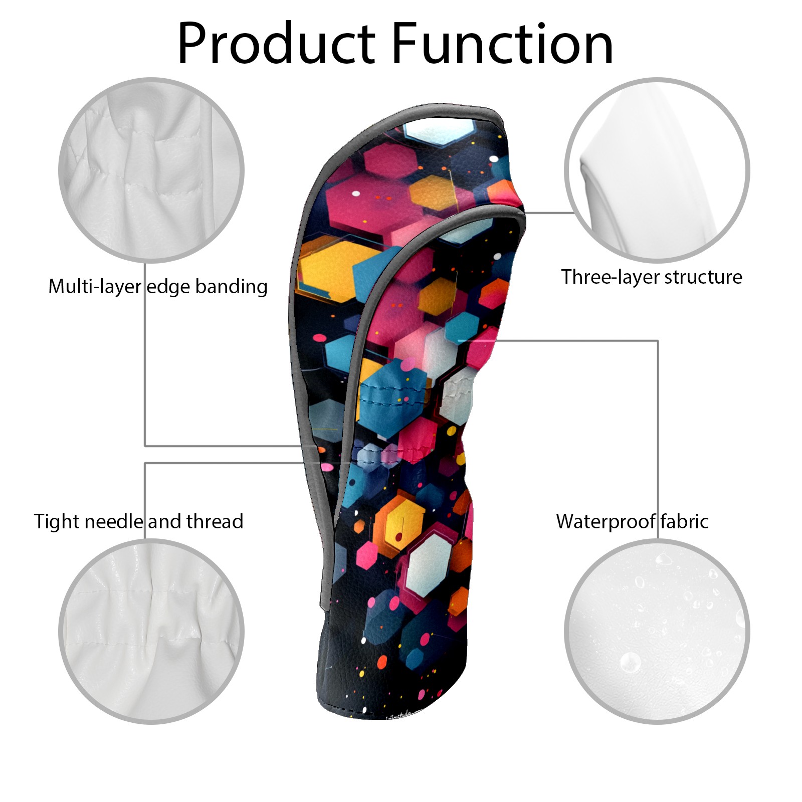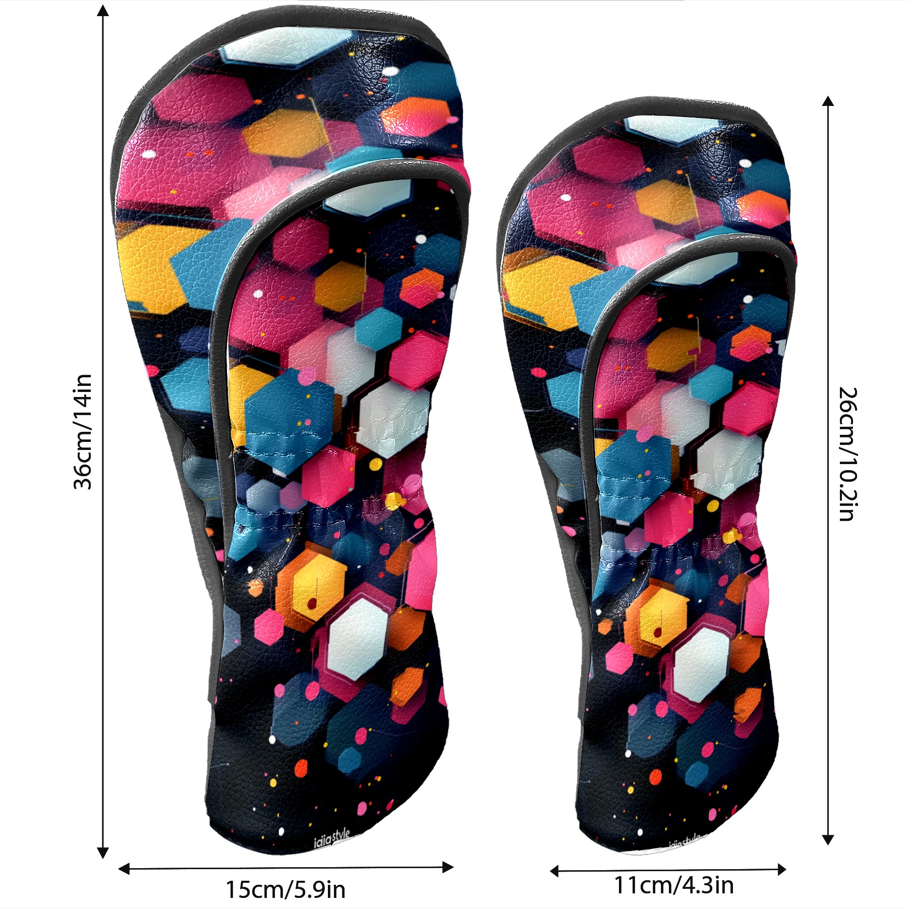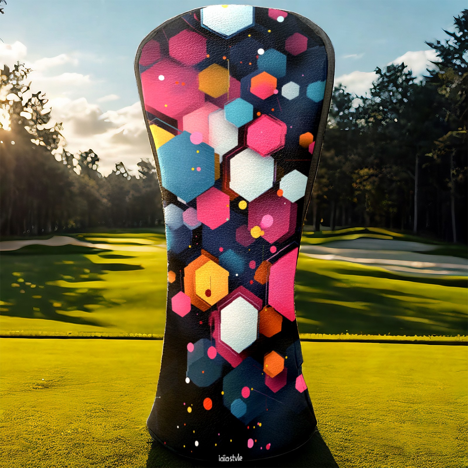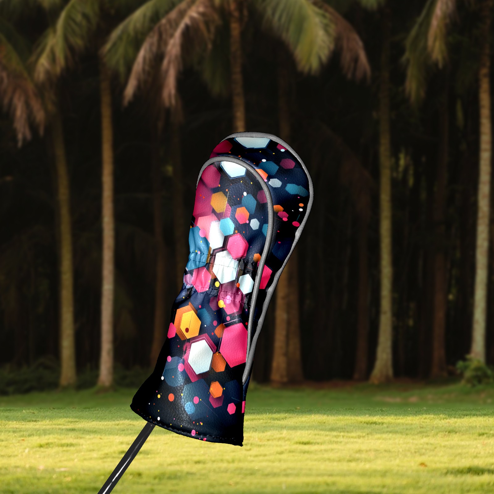 PU Leather Golf Head Covers Set – Fits Drivers/Fairway Woods/Hybrids, Ideal Gifts for Male & Female Golfers Colorful Polygonal Pattern