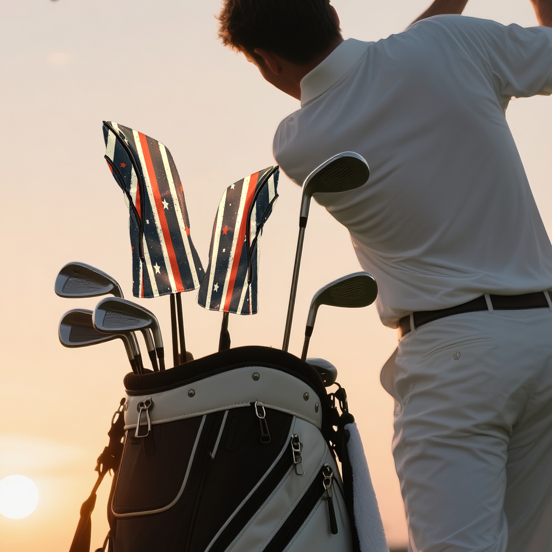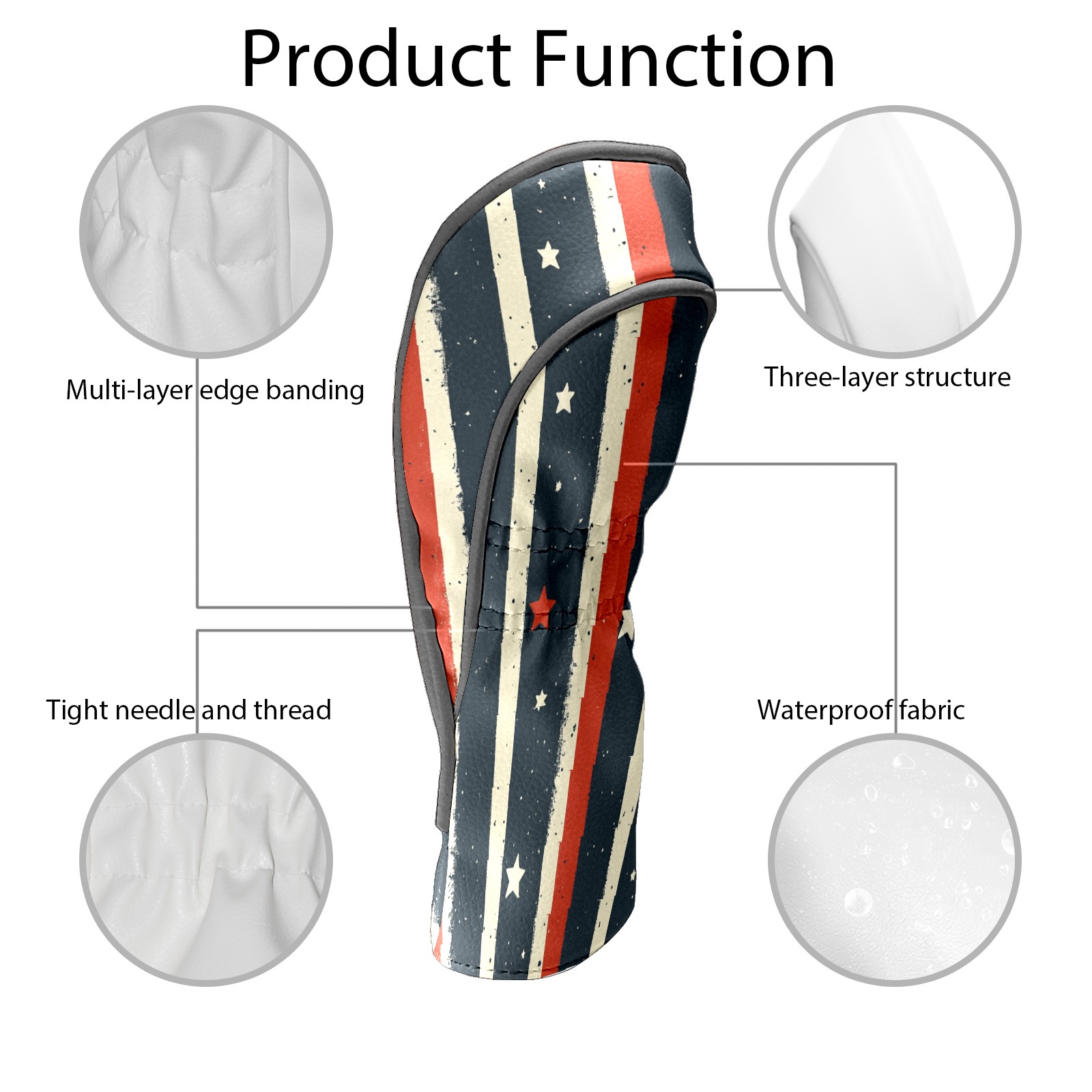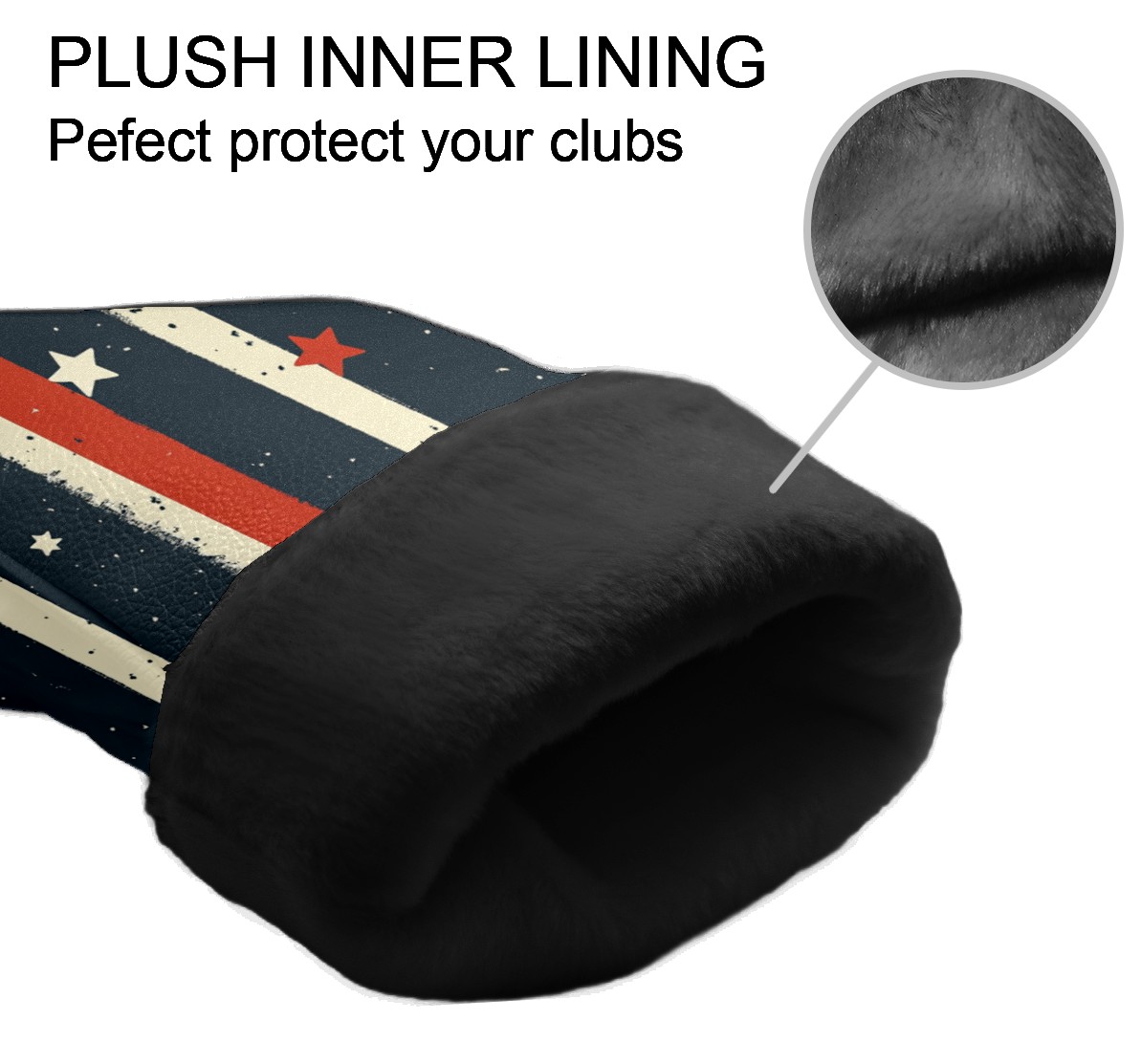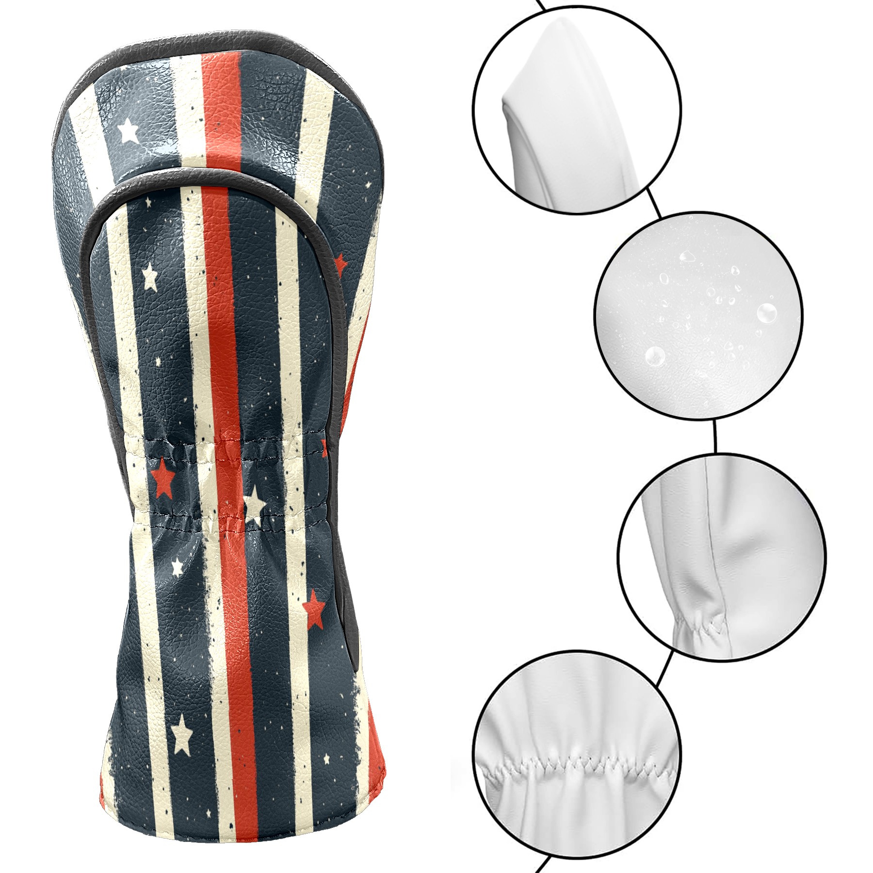 PU Leather Golf Head Covers Set – Fits Drivers/Fairway Woods/Hybrids, Ideal Gifts for Male & Female Golfers Star Stripe Pattern
