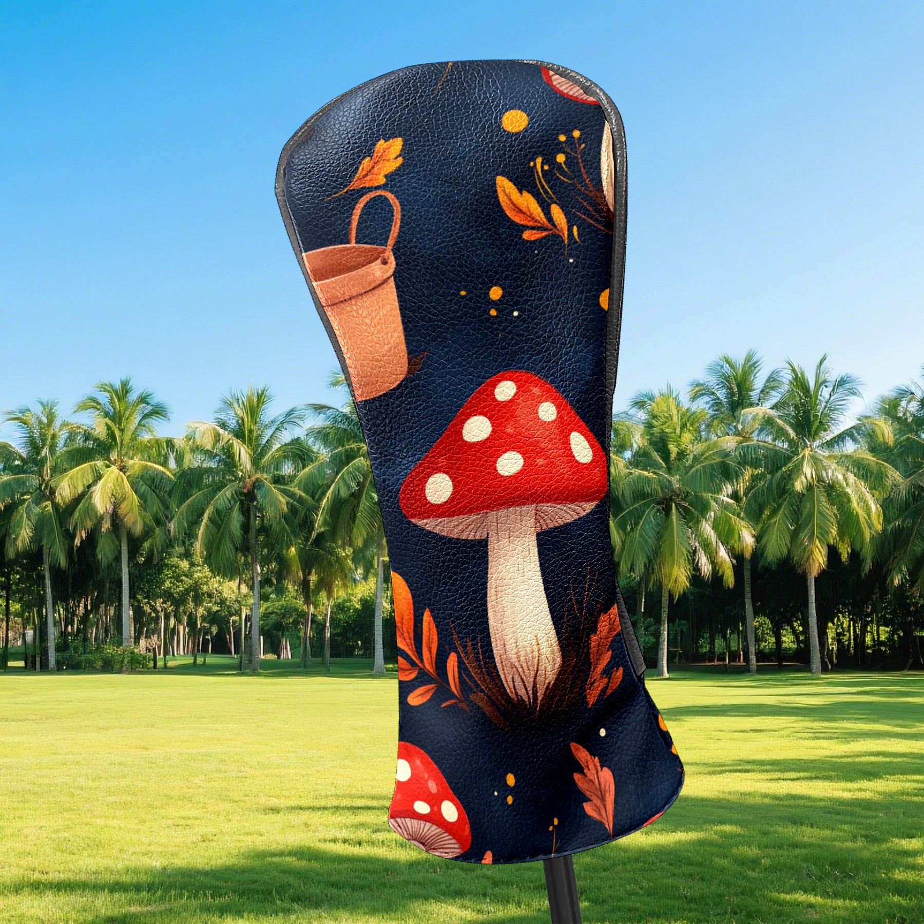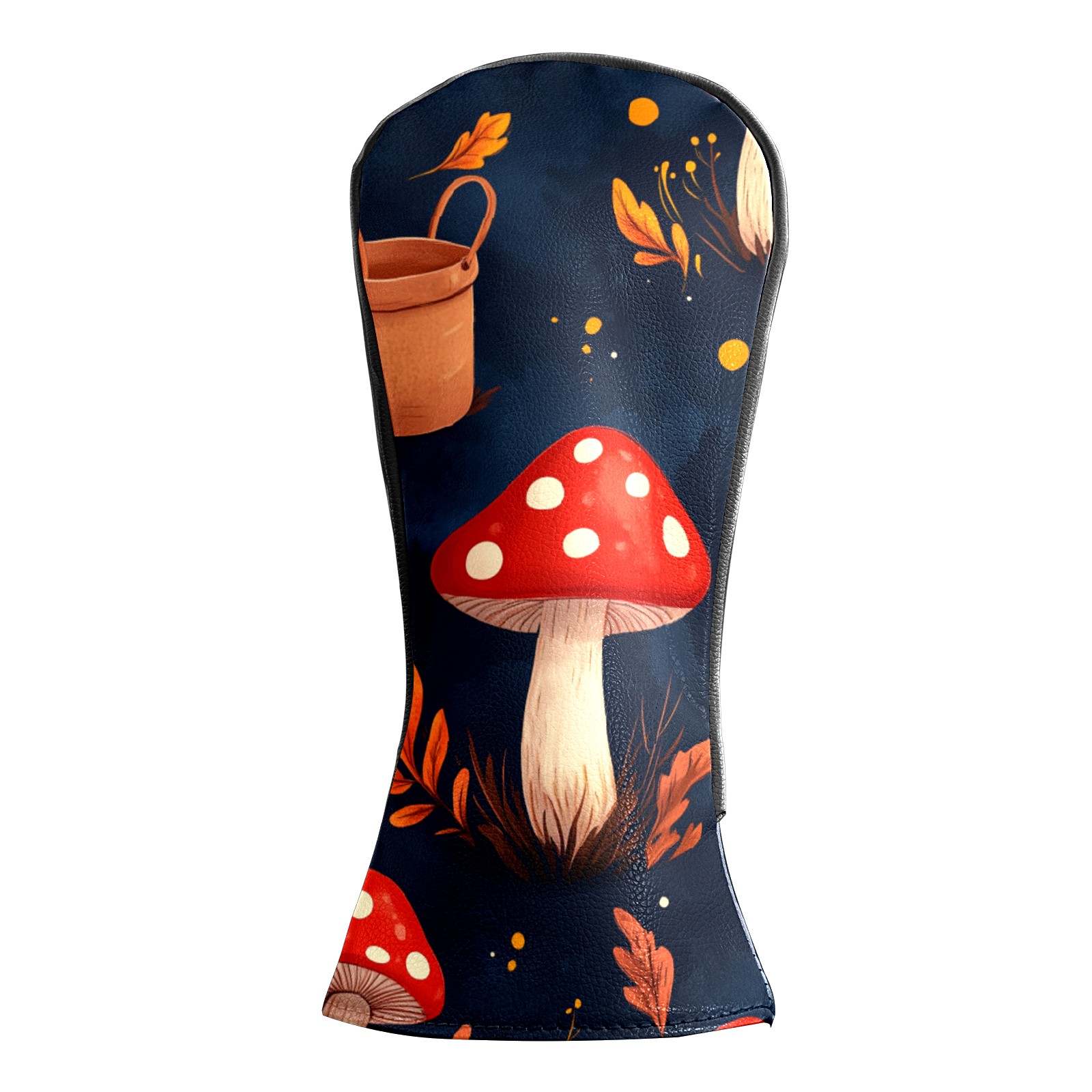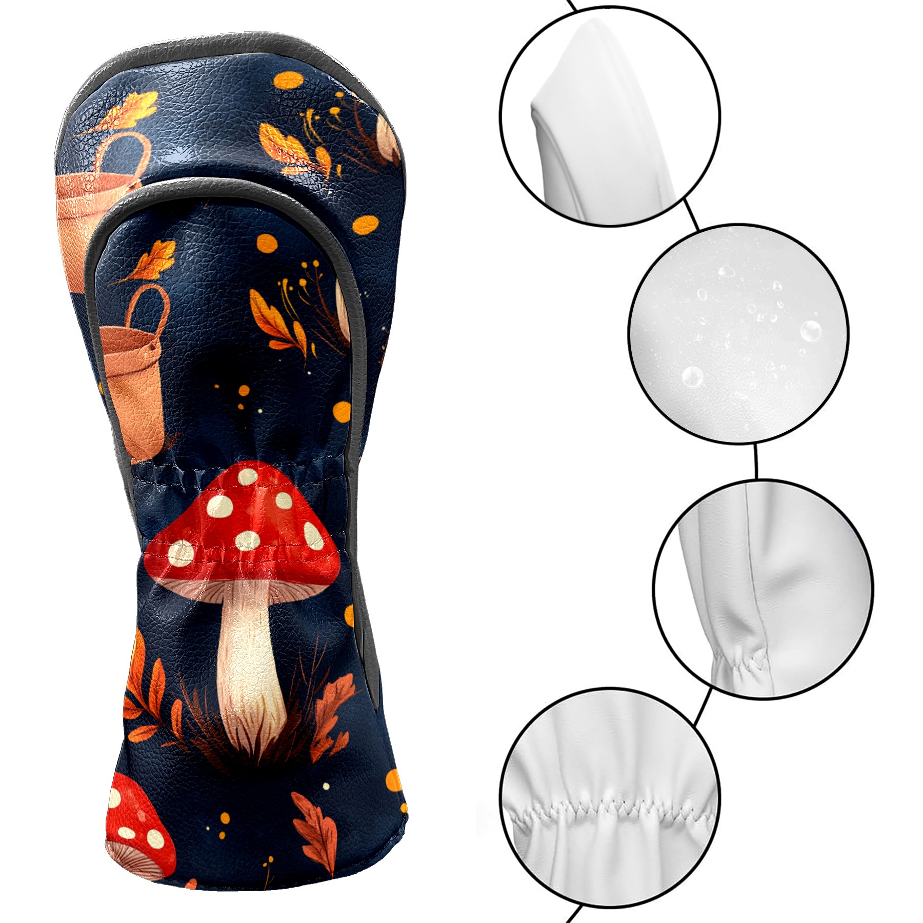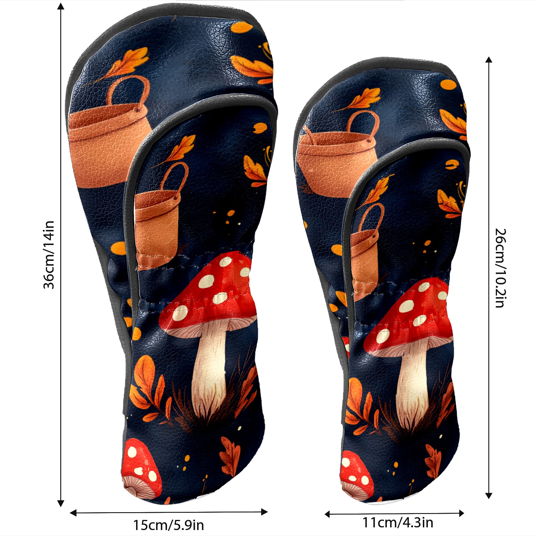 PU Leather Golf Head Covers Set – Fits Drivers/Fairway Woods/Hybrids, Ideal Gifts for Male & Female Golfers Red Mushroom Pattern