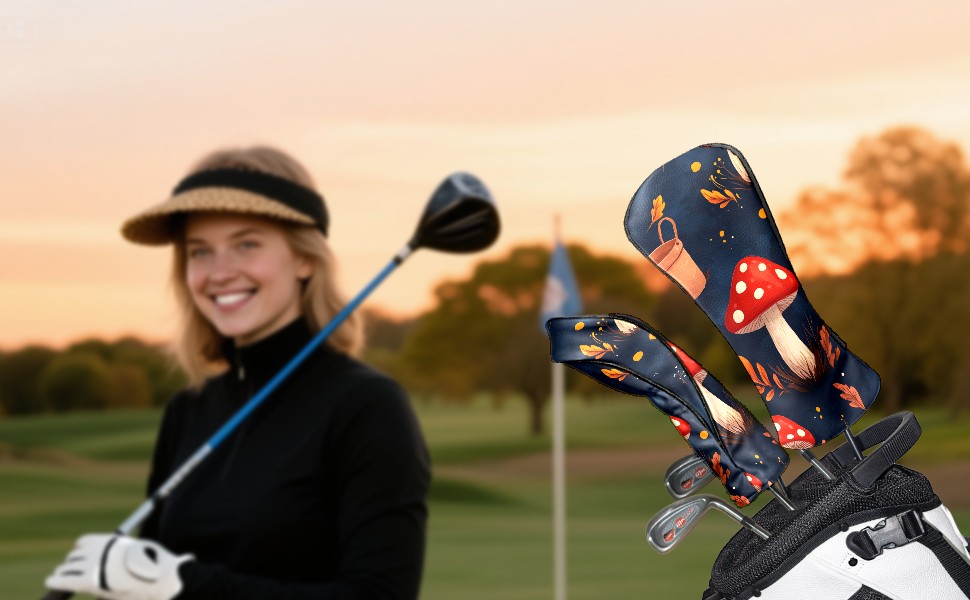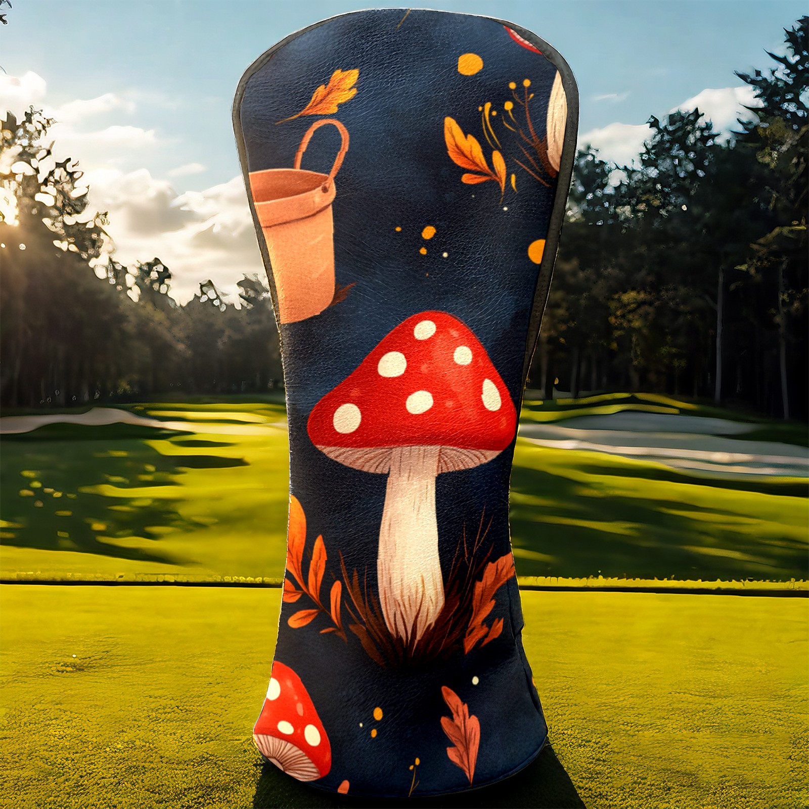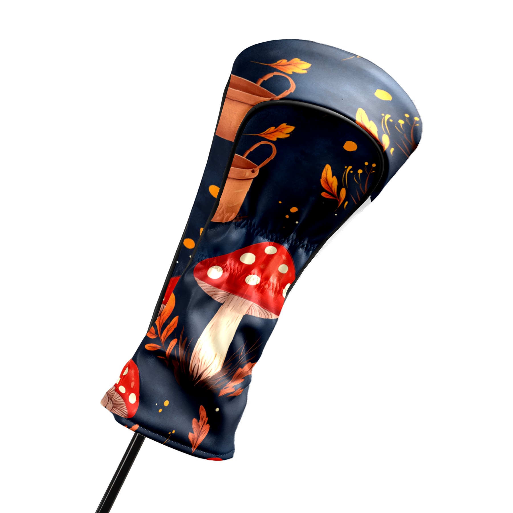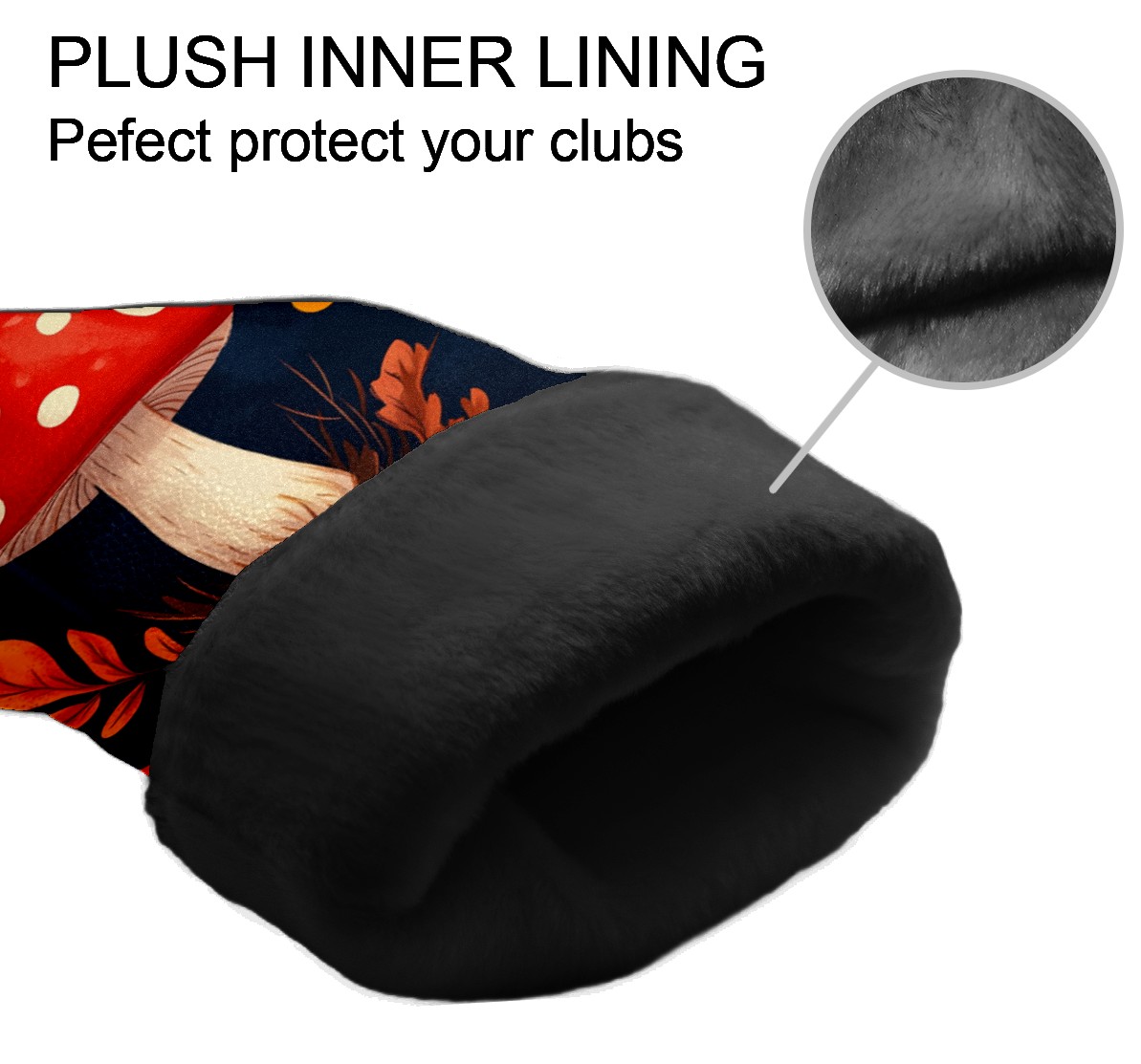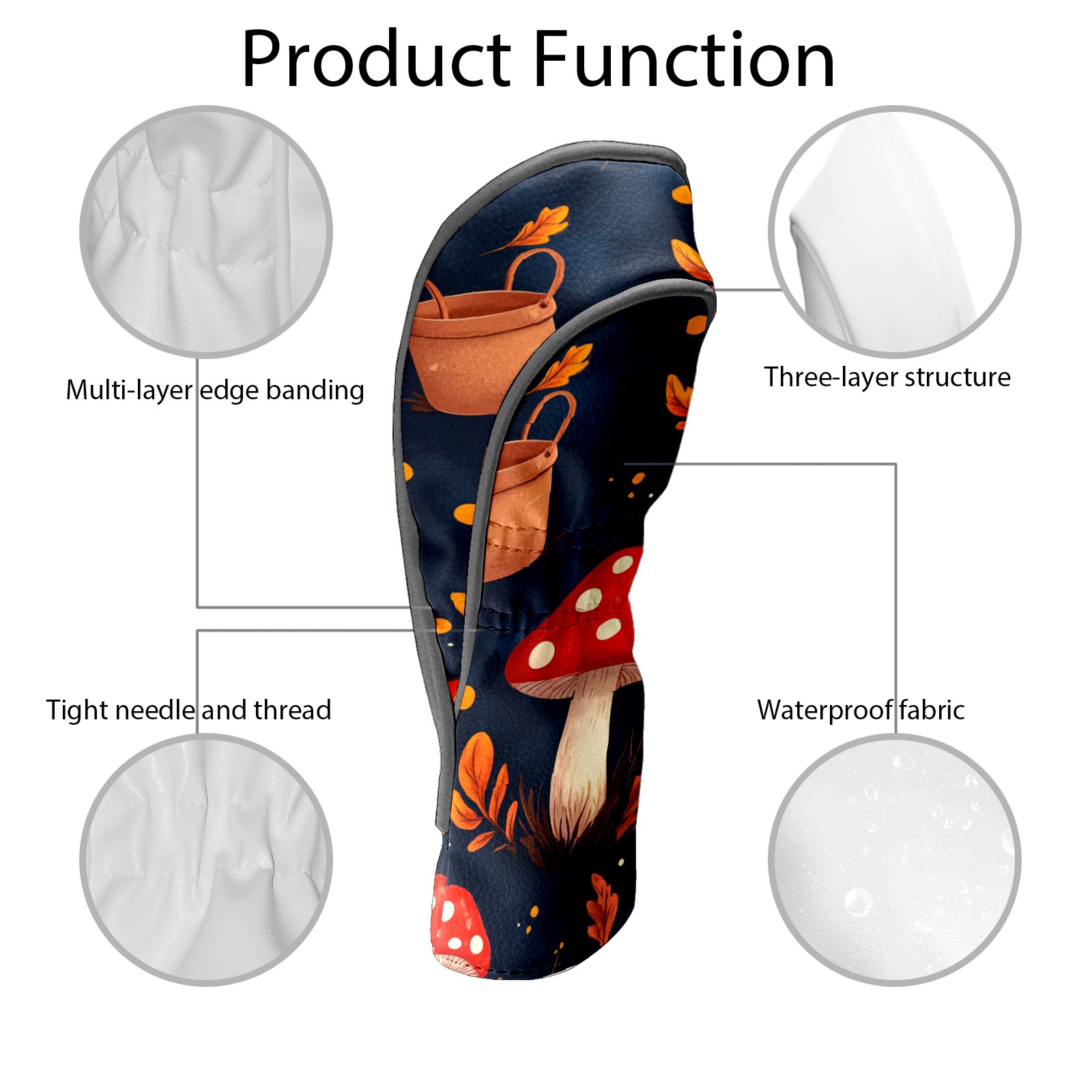 PU Leather Golf Head Covers Set – Fits Drivers/Fairway Woods/Hybrids, Ideal Gifts for Male & Female Golfers Red Mushroom Pattern