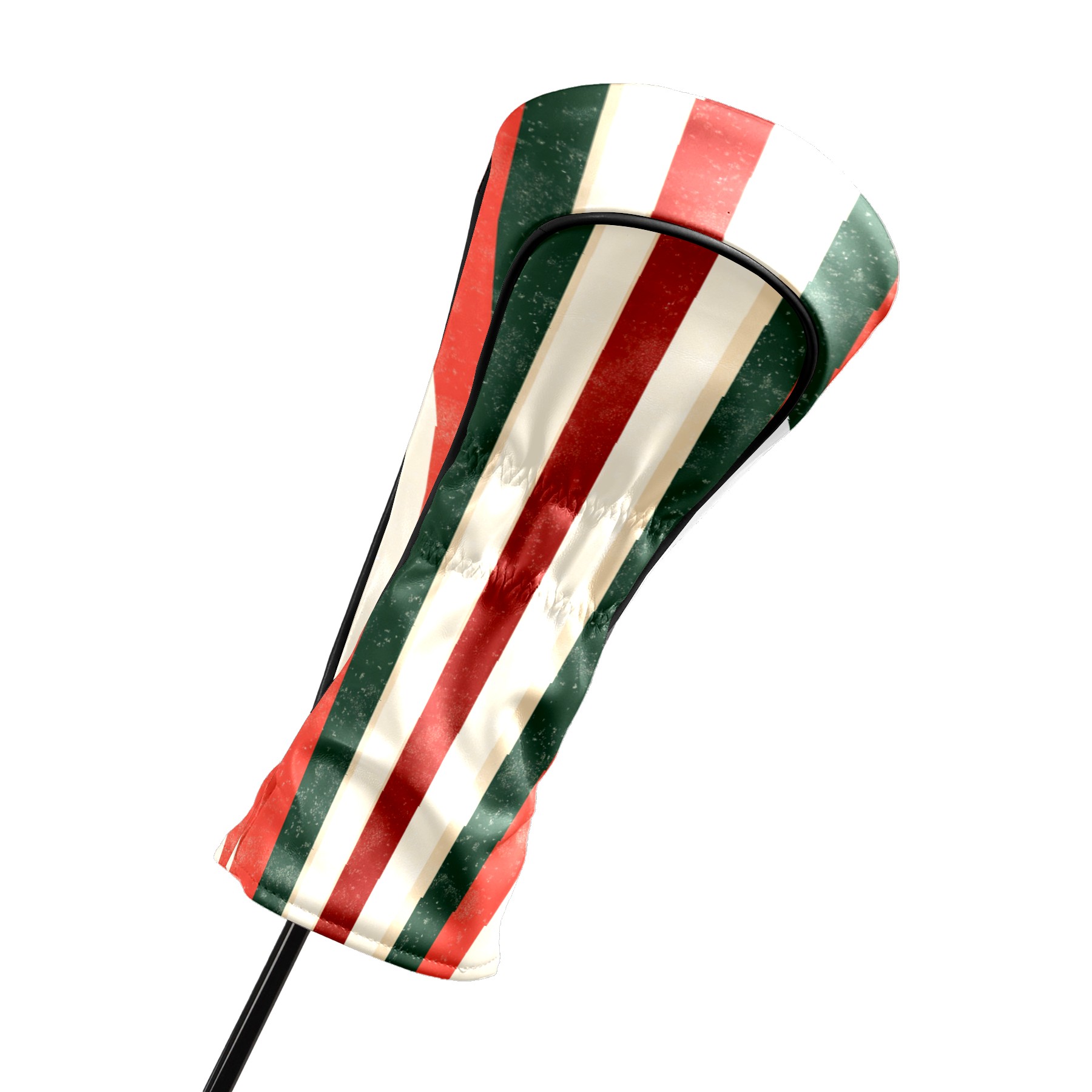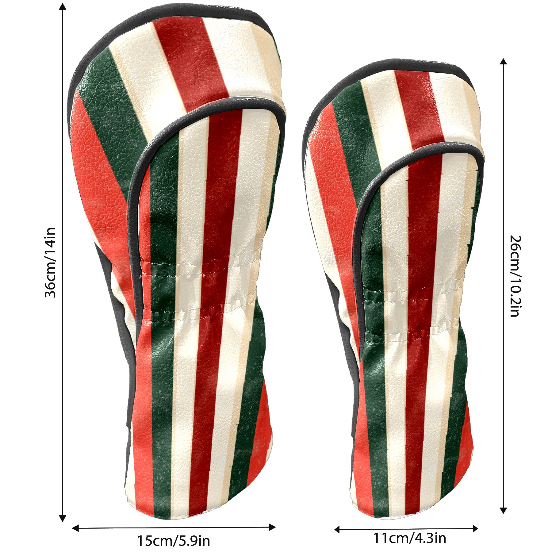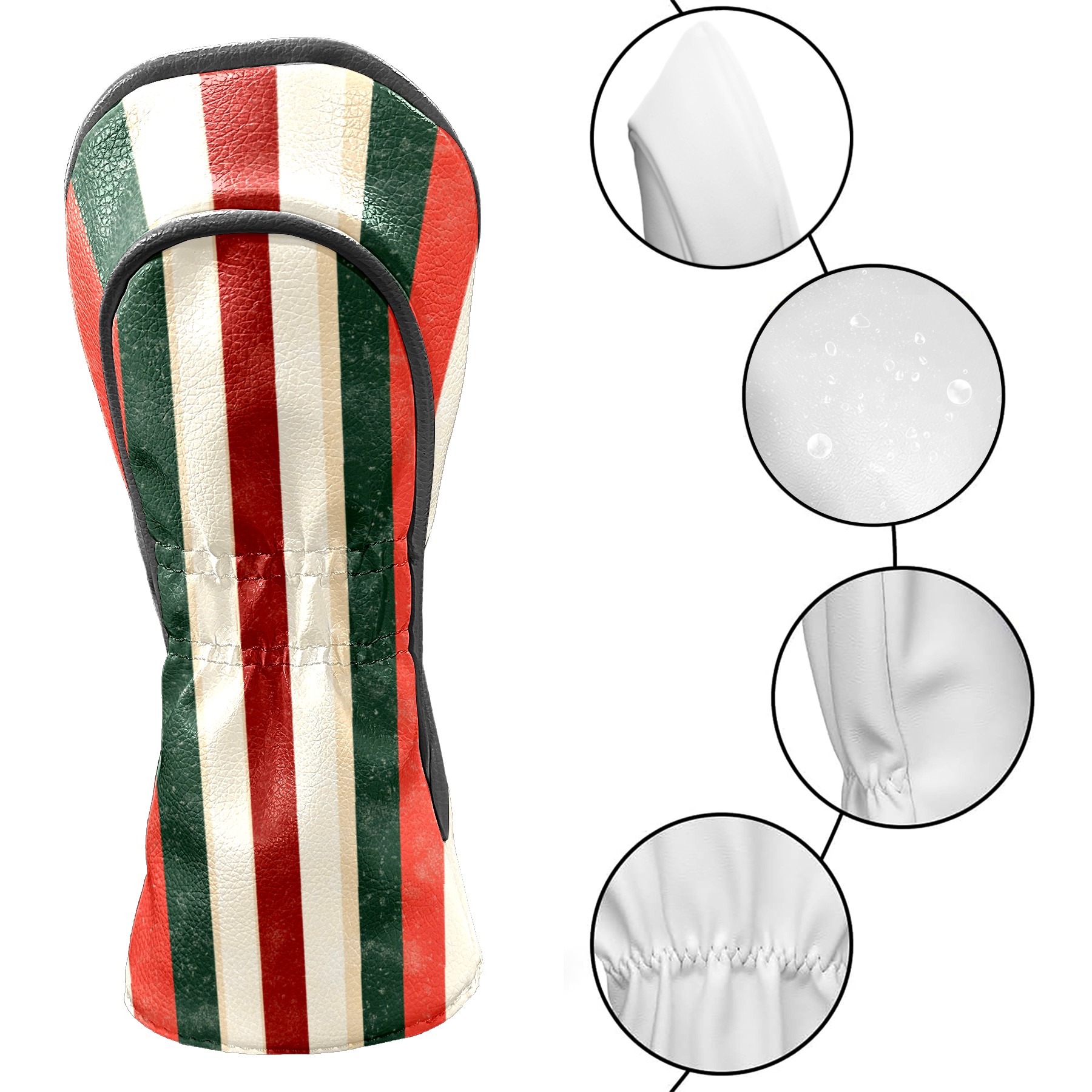 PU Leather Golf Head Covers Set – Fits Drivers/Fairway Woods/Hybrids, Ideal Gifts for Male & Female Golfers Red Green Striped Pattern