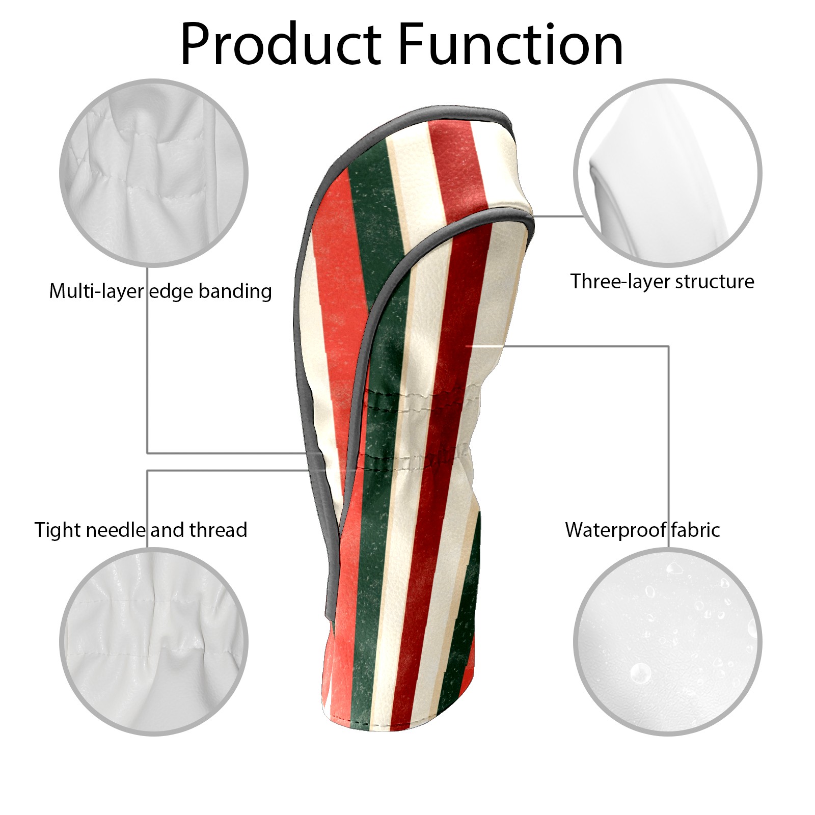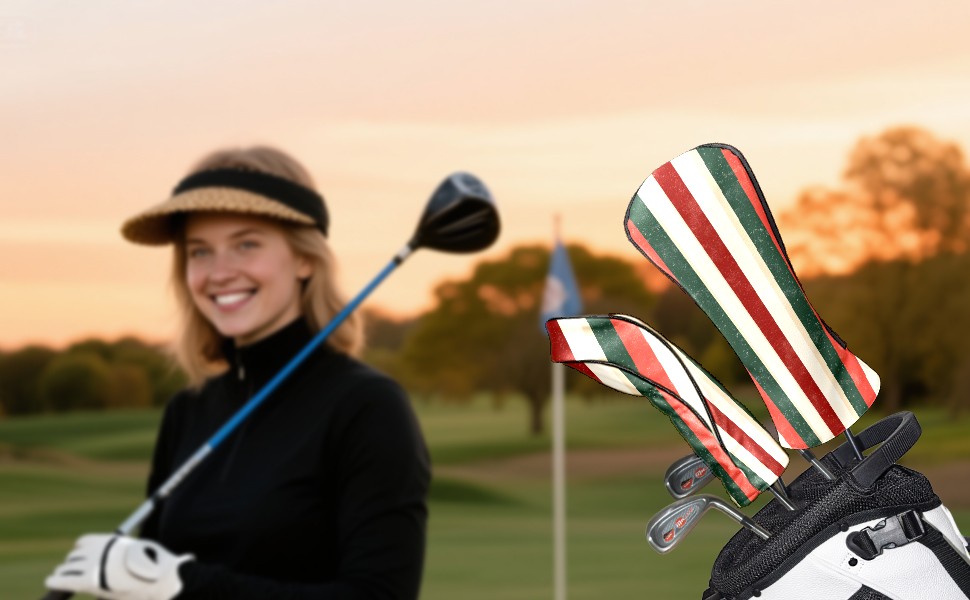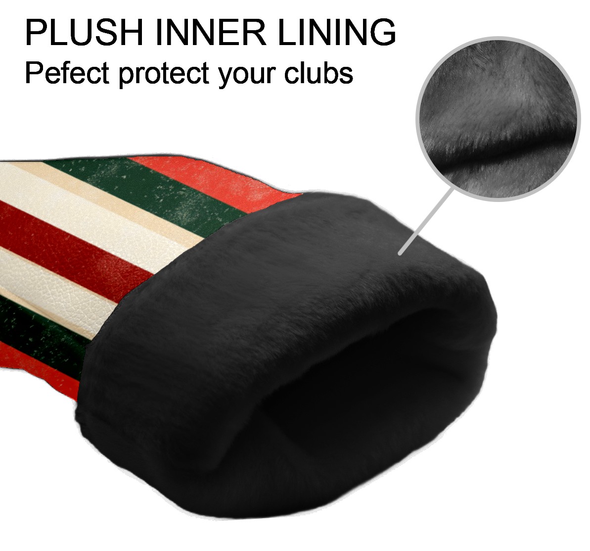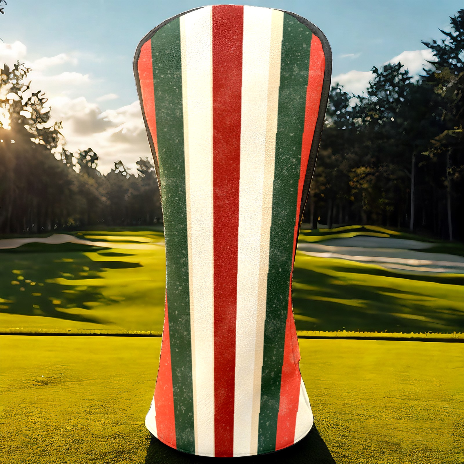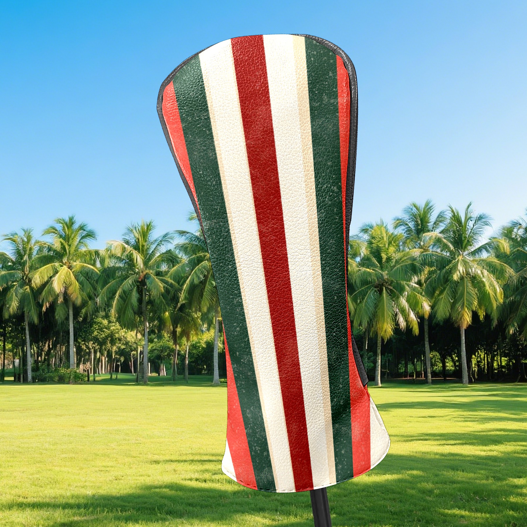PU Leather Golf Head Covers Set – Fits Drivers/Fairway Woods/Hybrids, Ideal Gifts for Male & Female Golfers Red Green Striped Pattern