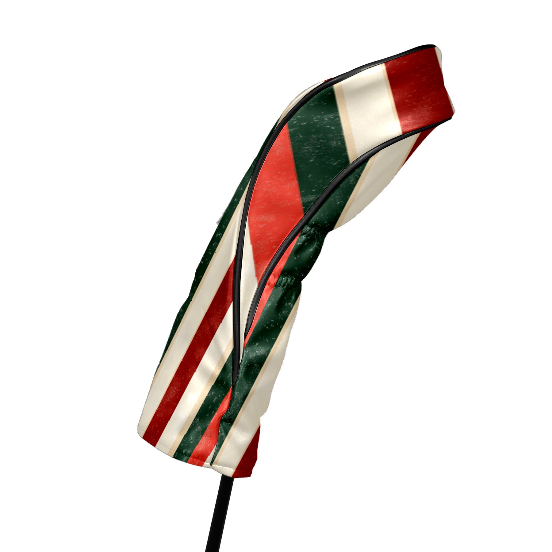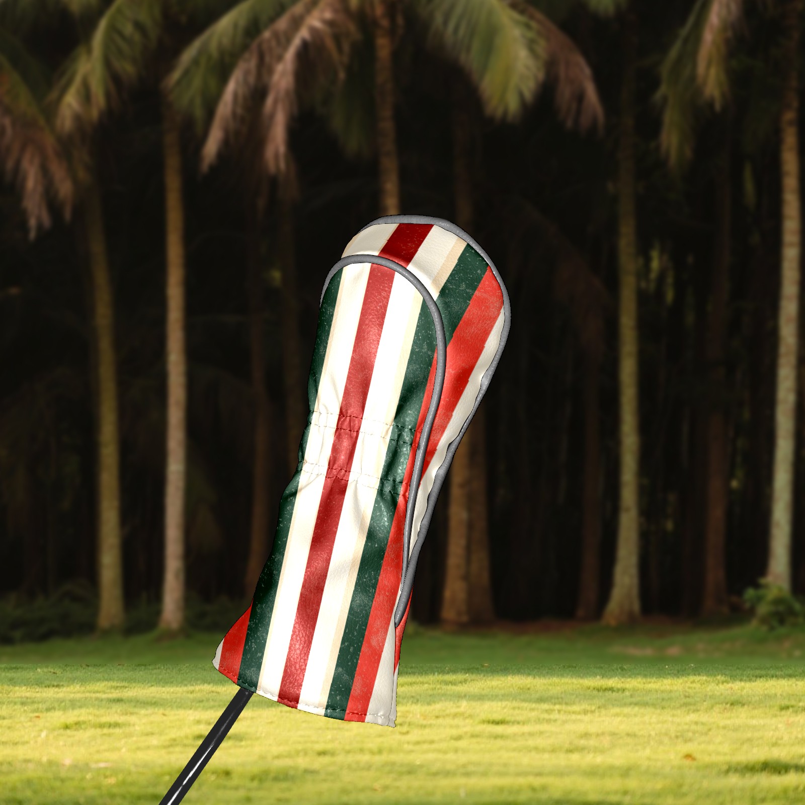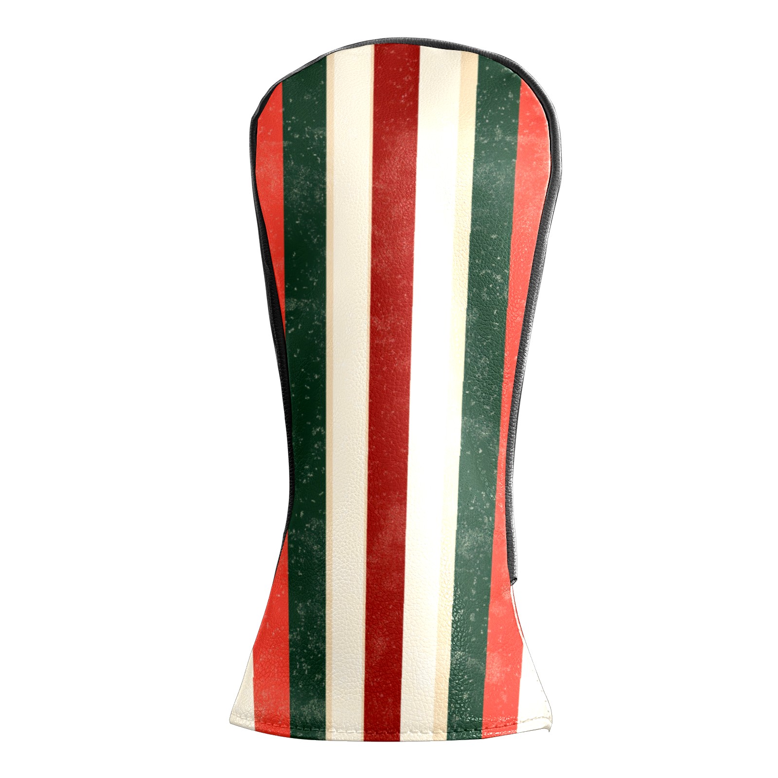 PU Leather Golf Head Covers Set – Fits Drivers/Fairway Woods/Hybrids, Ideal Gifts for Male & Female Golfers Red Green Striped Pattern