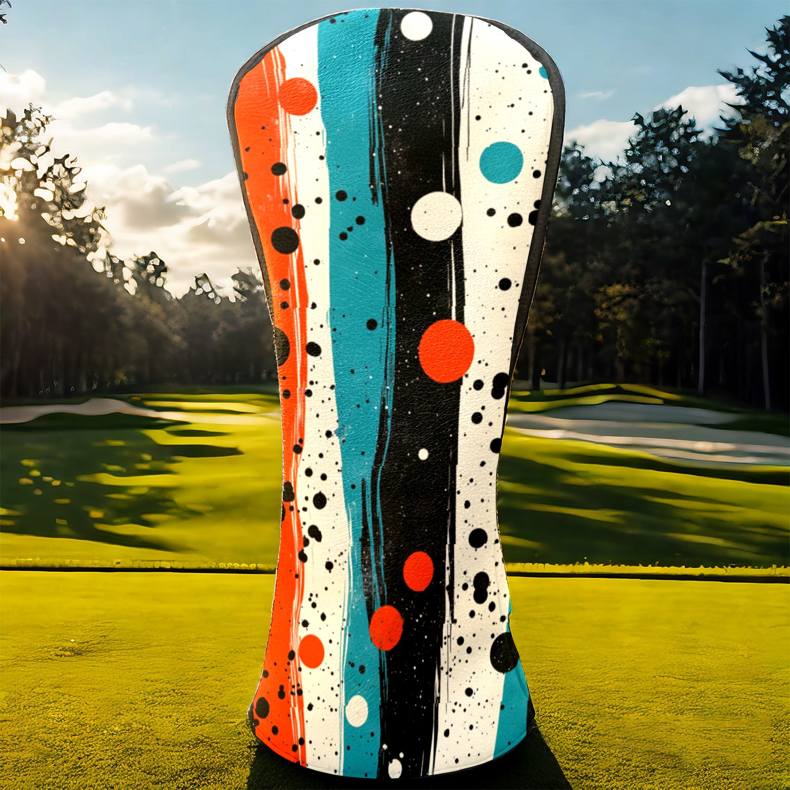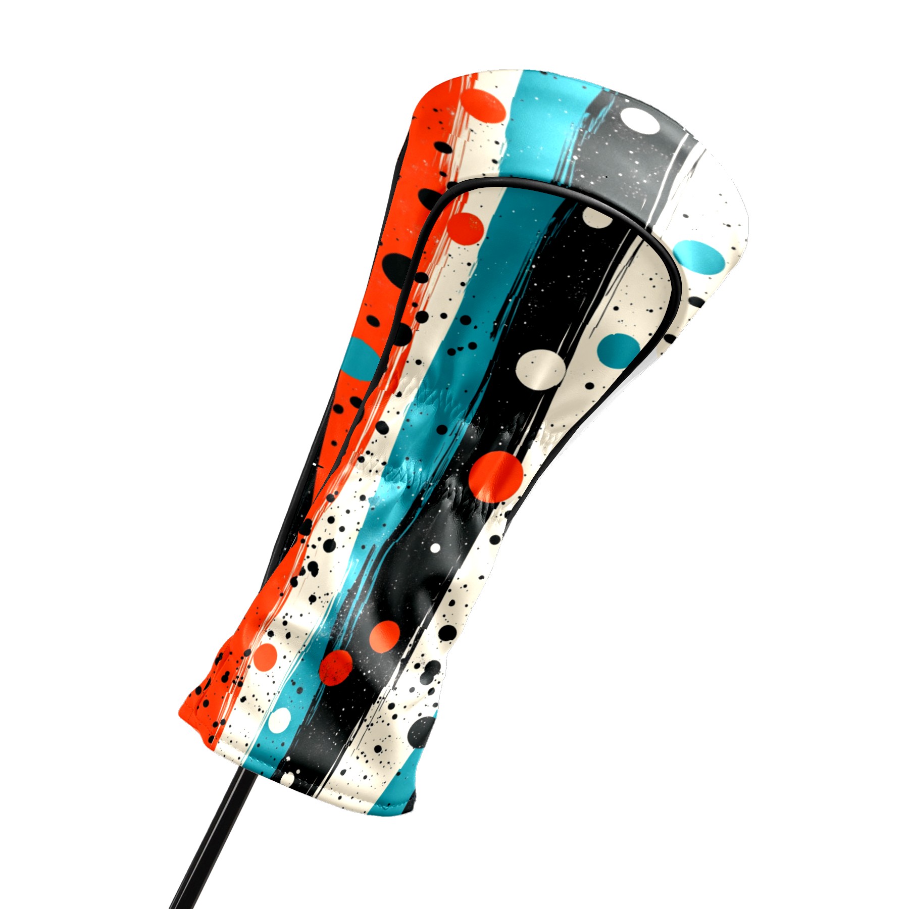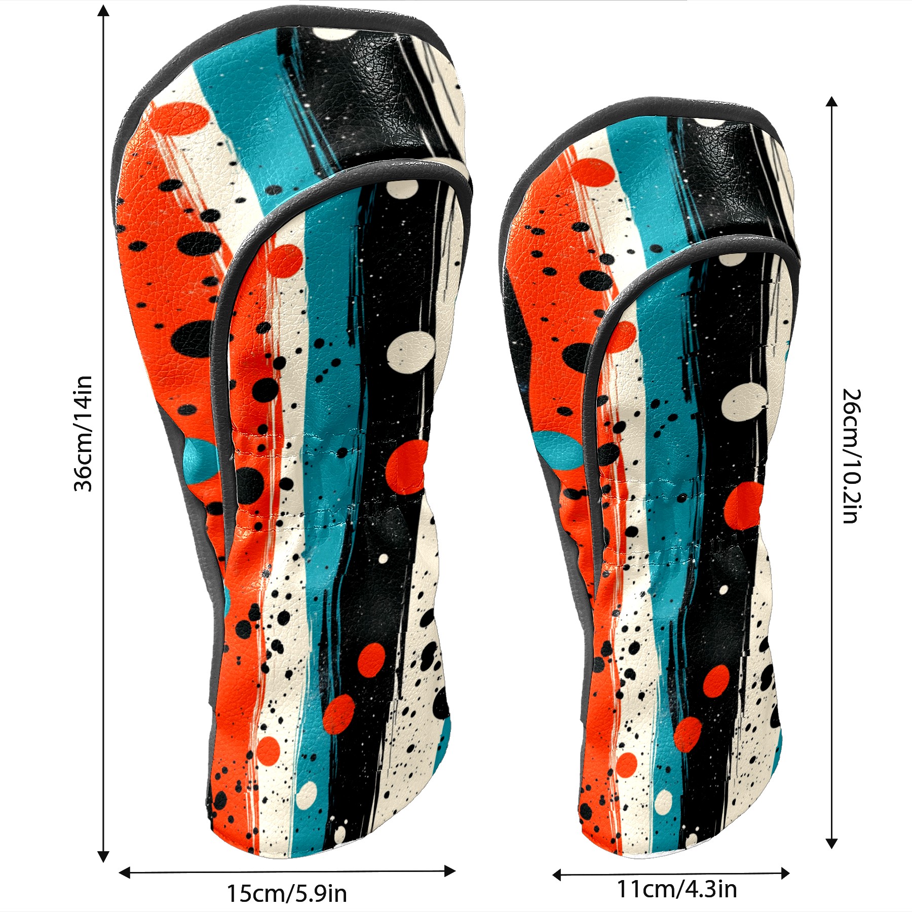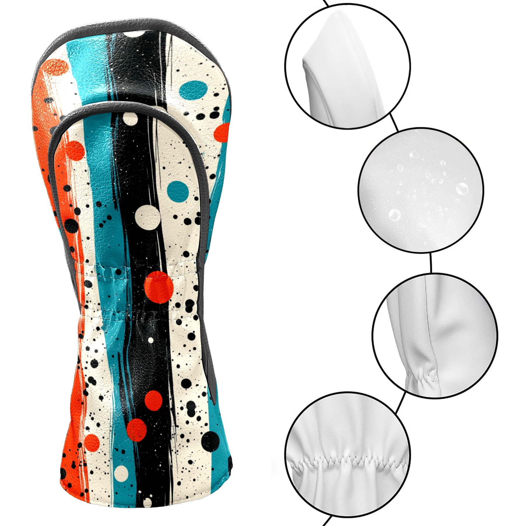 PU Leather Golf Head Covers Set – Fits Drivers/Fairway Woods/Hybrids, Ideal Gifts for Male & Female Golfers Colored Dot Pattern