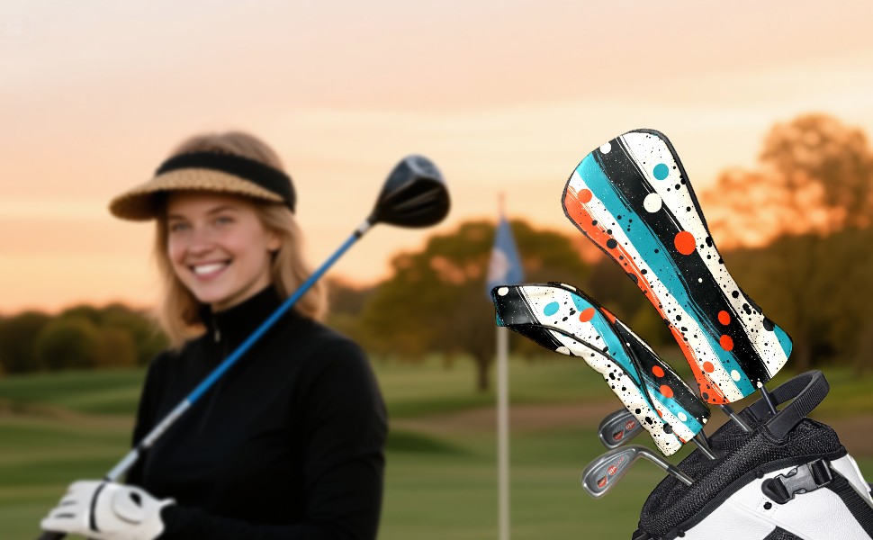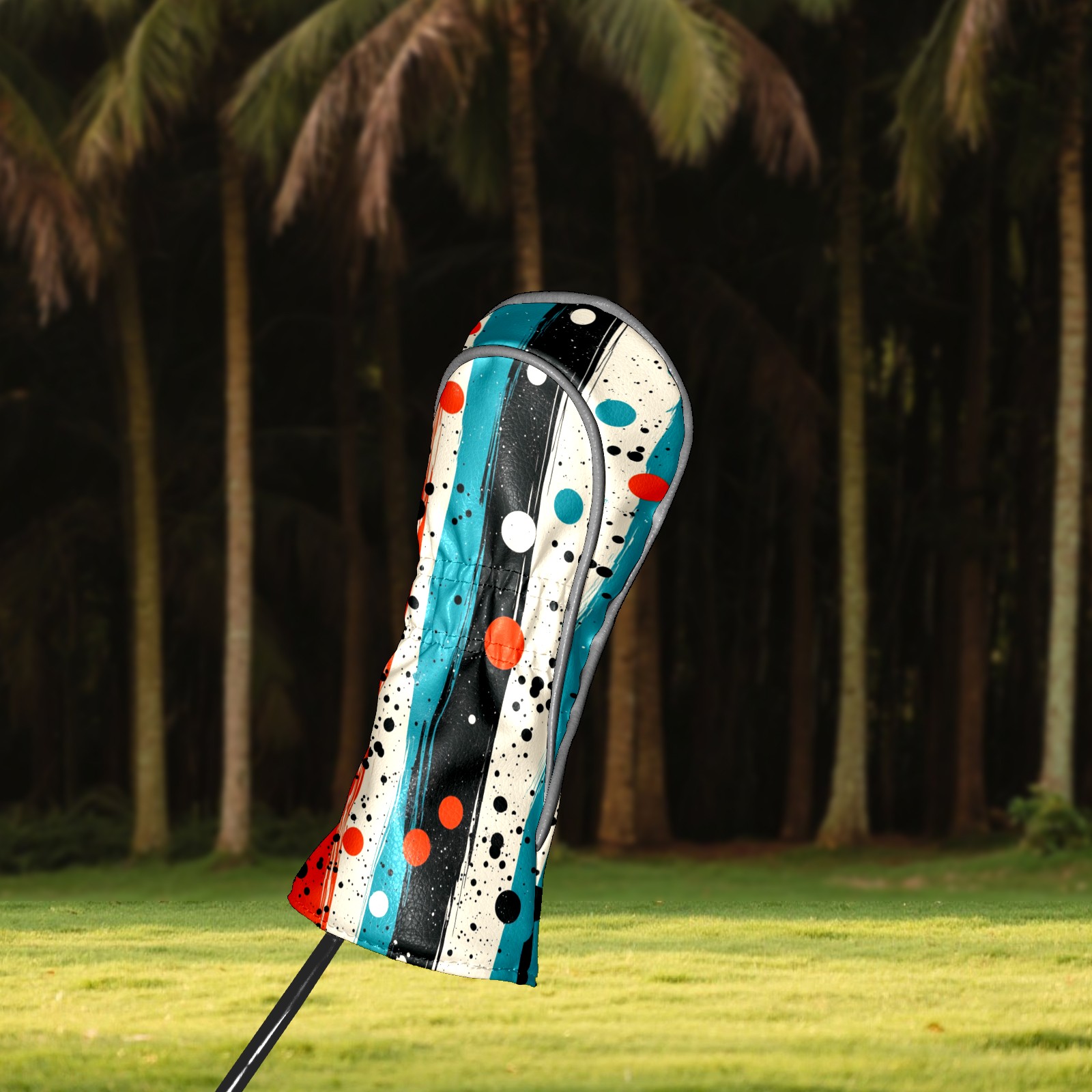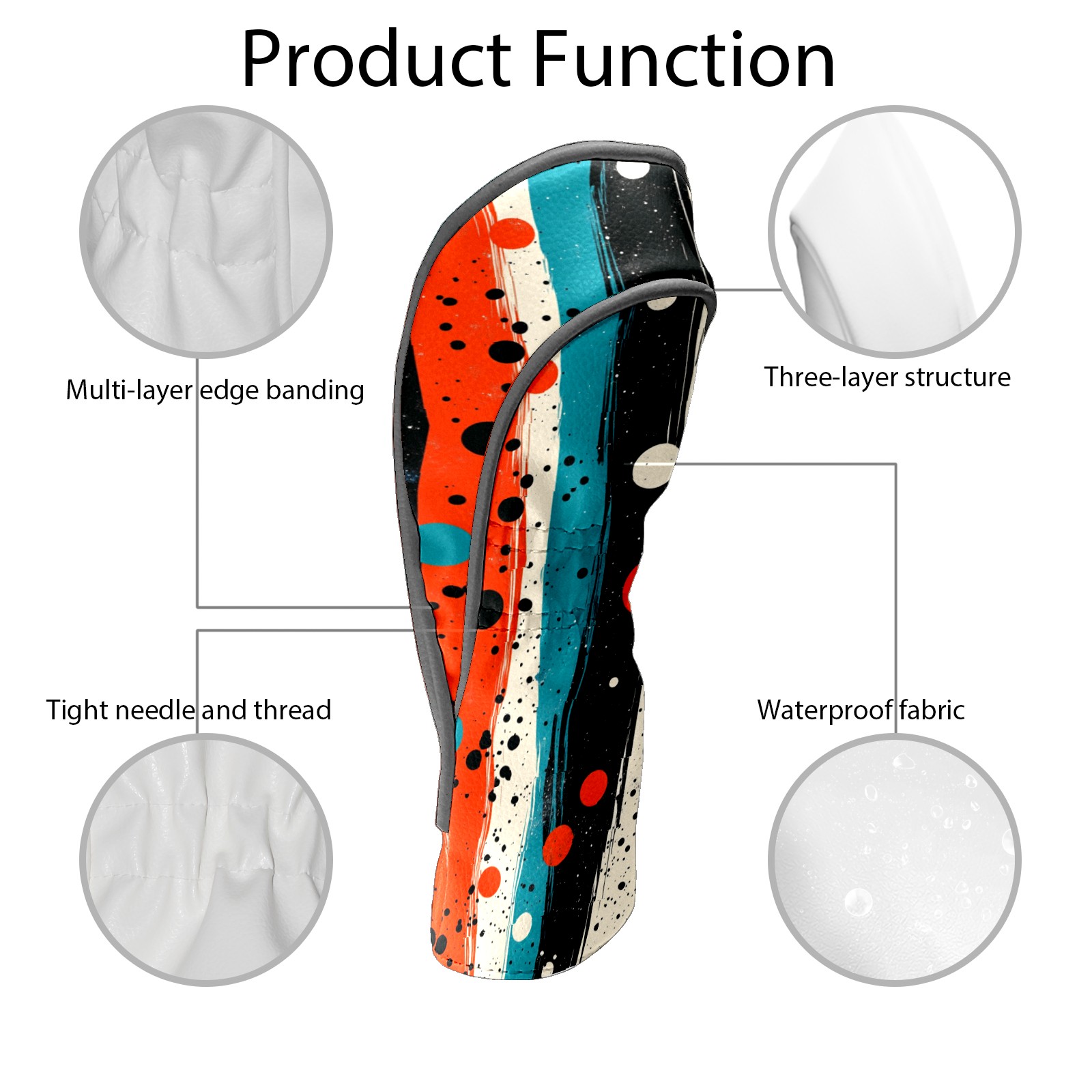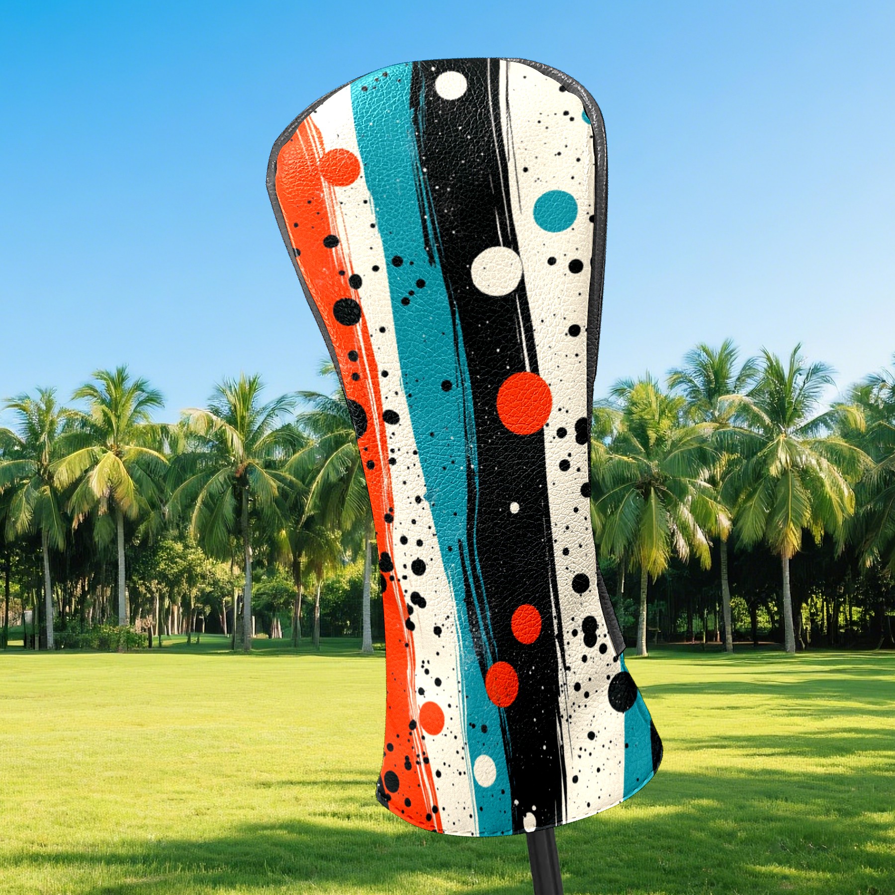 PU Leather Golf Head Covers Set – Fits Drivers/Fairway Woods/Hybrids, Ideal Gifts for Male & Female Golfers Colored Dot Pattern