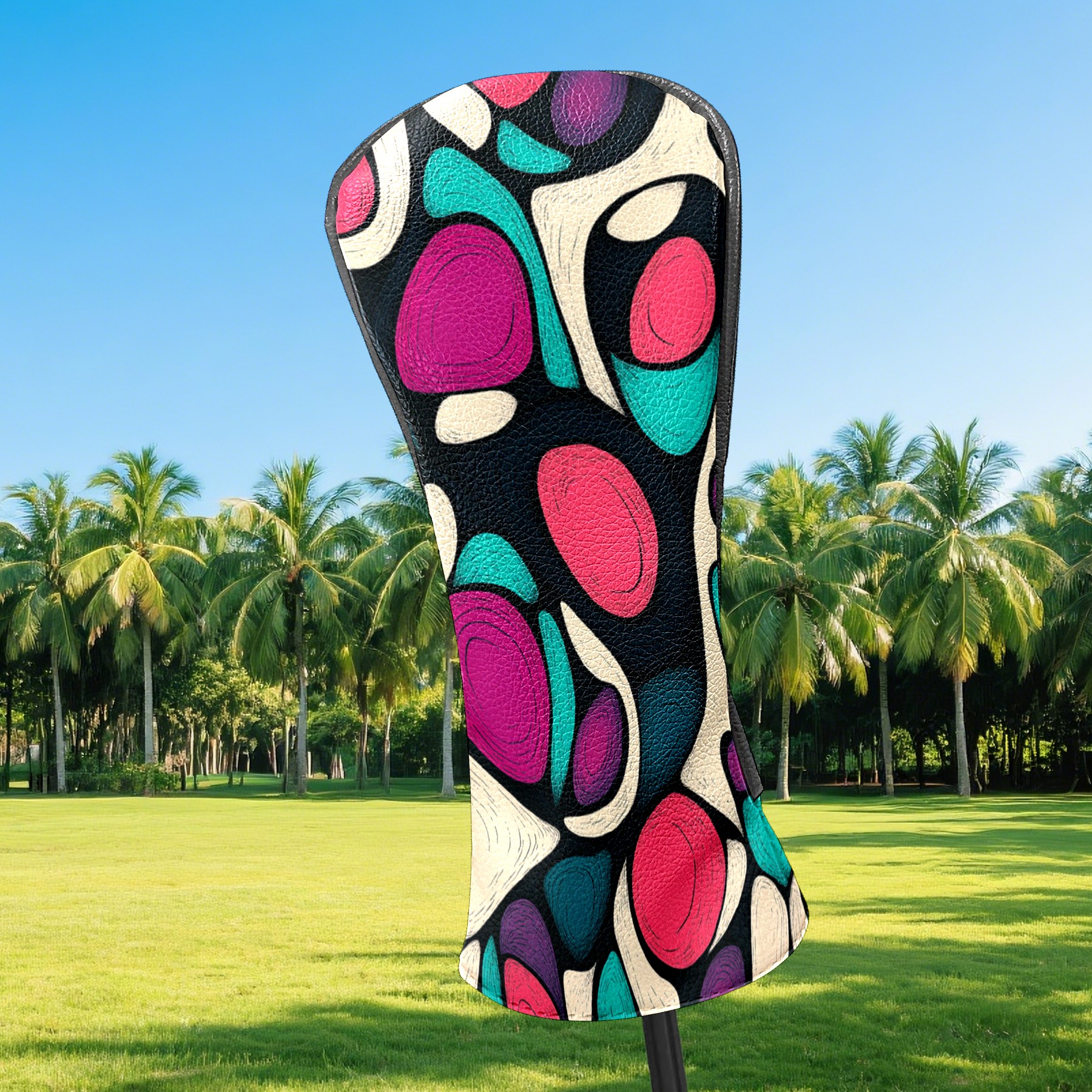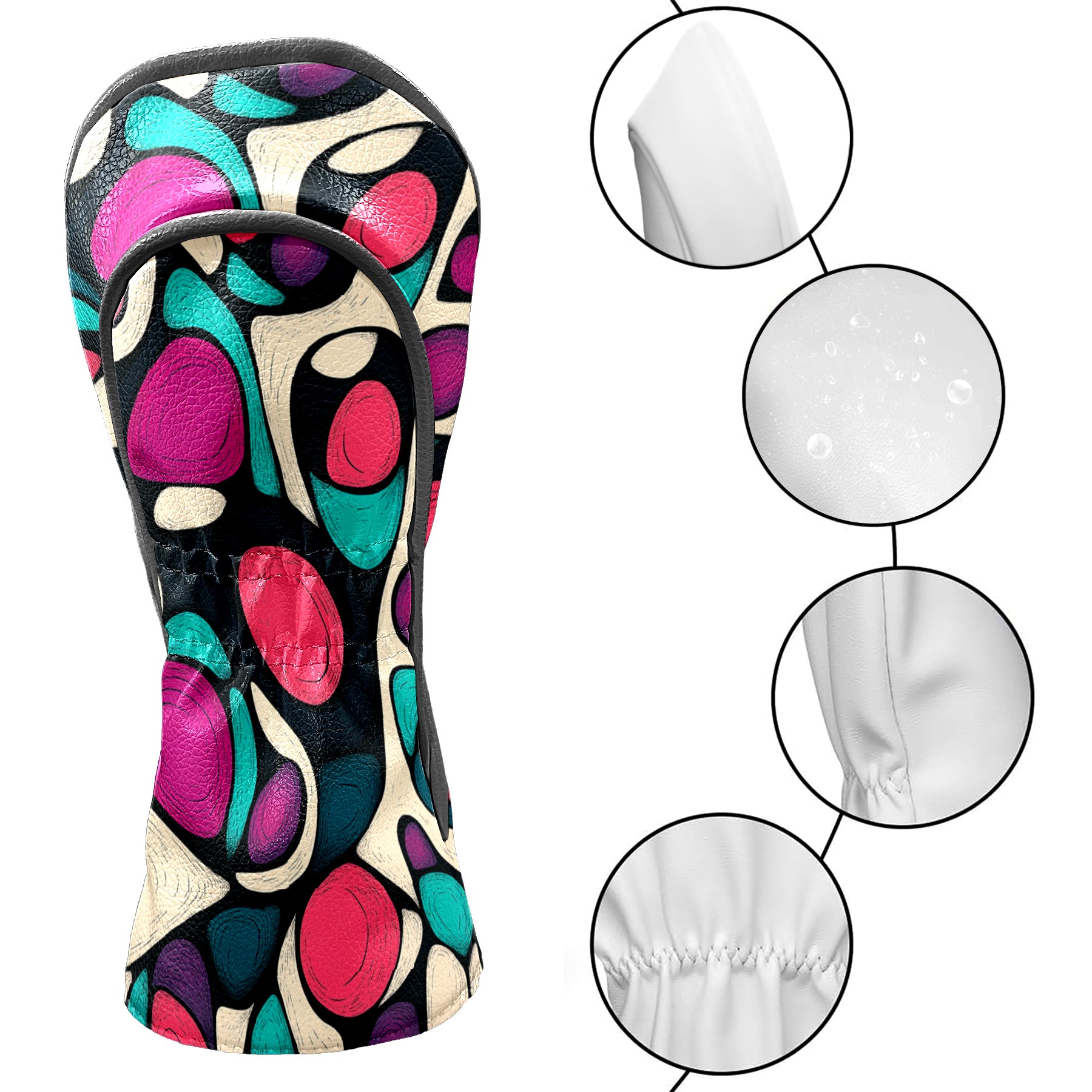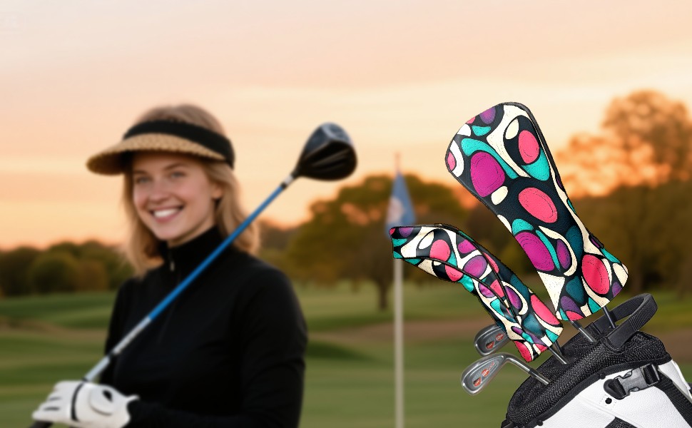 PU Leather Golf Head Covers Set – Fits Drivers/Fairway Woods/Hybrids, Ideal Gifts for Male & Female Golfers Purple Circle Pattern