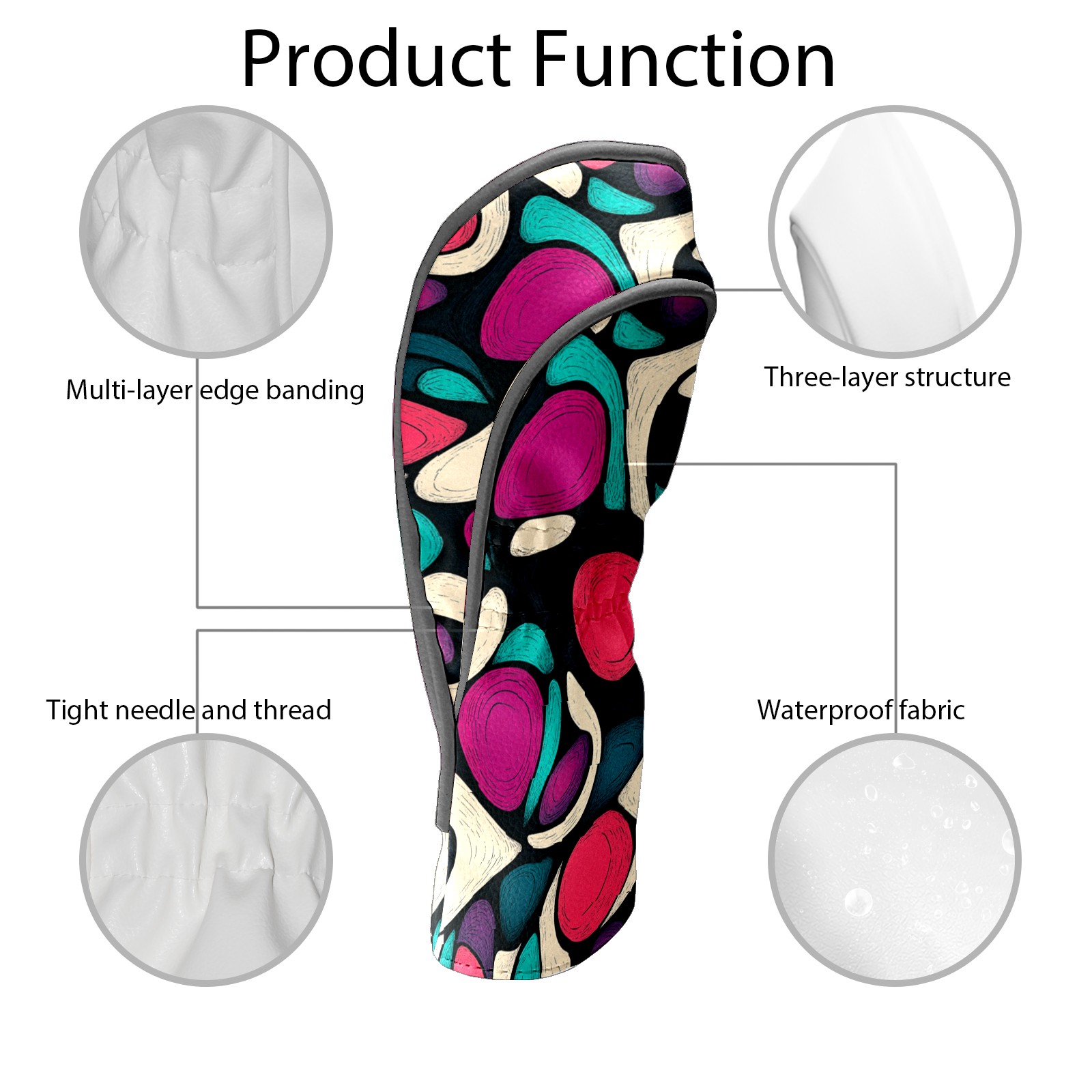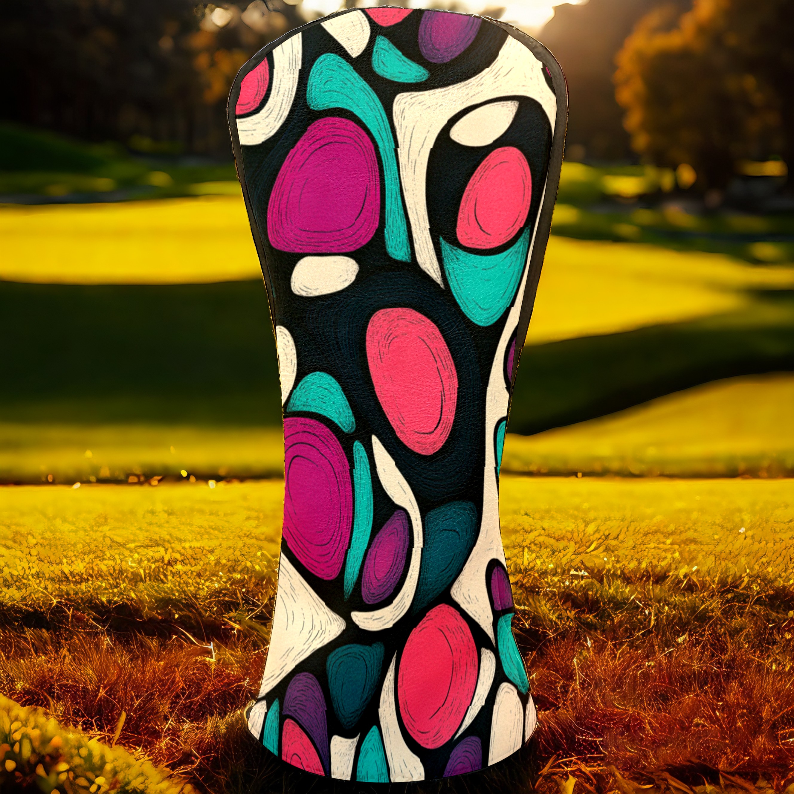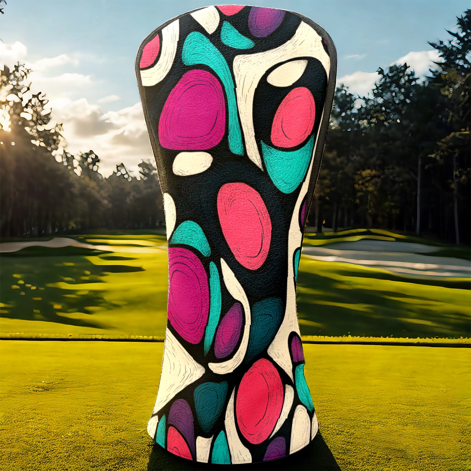 PU Leather Golf Head Covers Set – Fits Drivers/Fairway Woods/Hybrids, Ideal Gifts for Male & Female Golfers Purple Circle Pattern