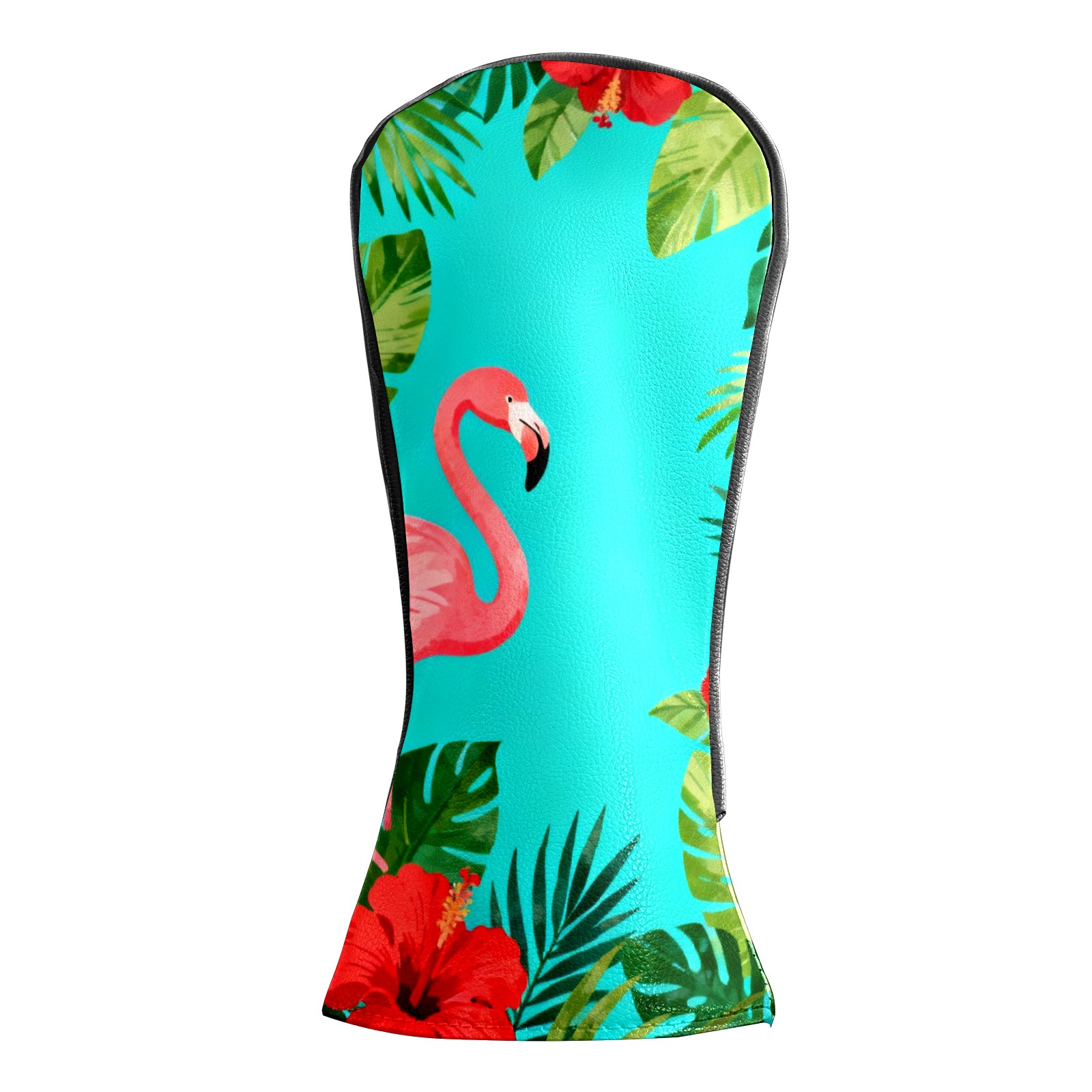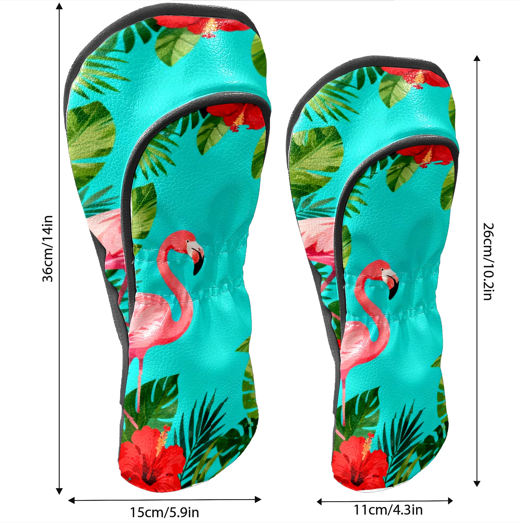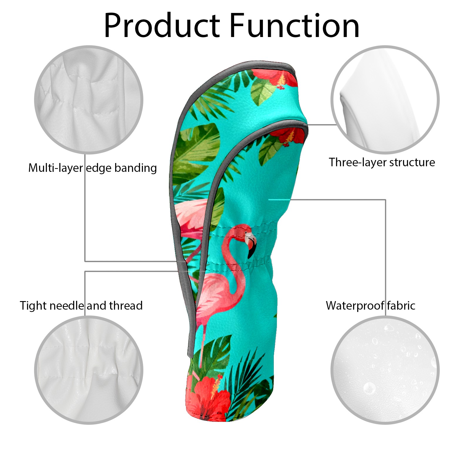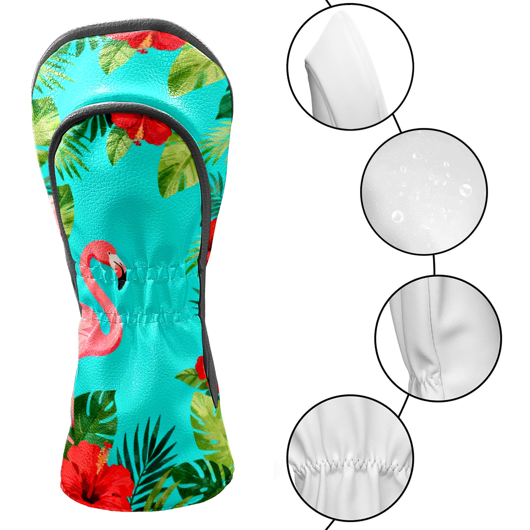 PU Leather Golf Head Covers Set – Fits Drivers/Fairway Woods/Hybrids, Ideal Gifts for Male & Female Golfers Tropical Flamingo Pattern3
