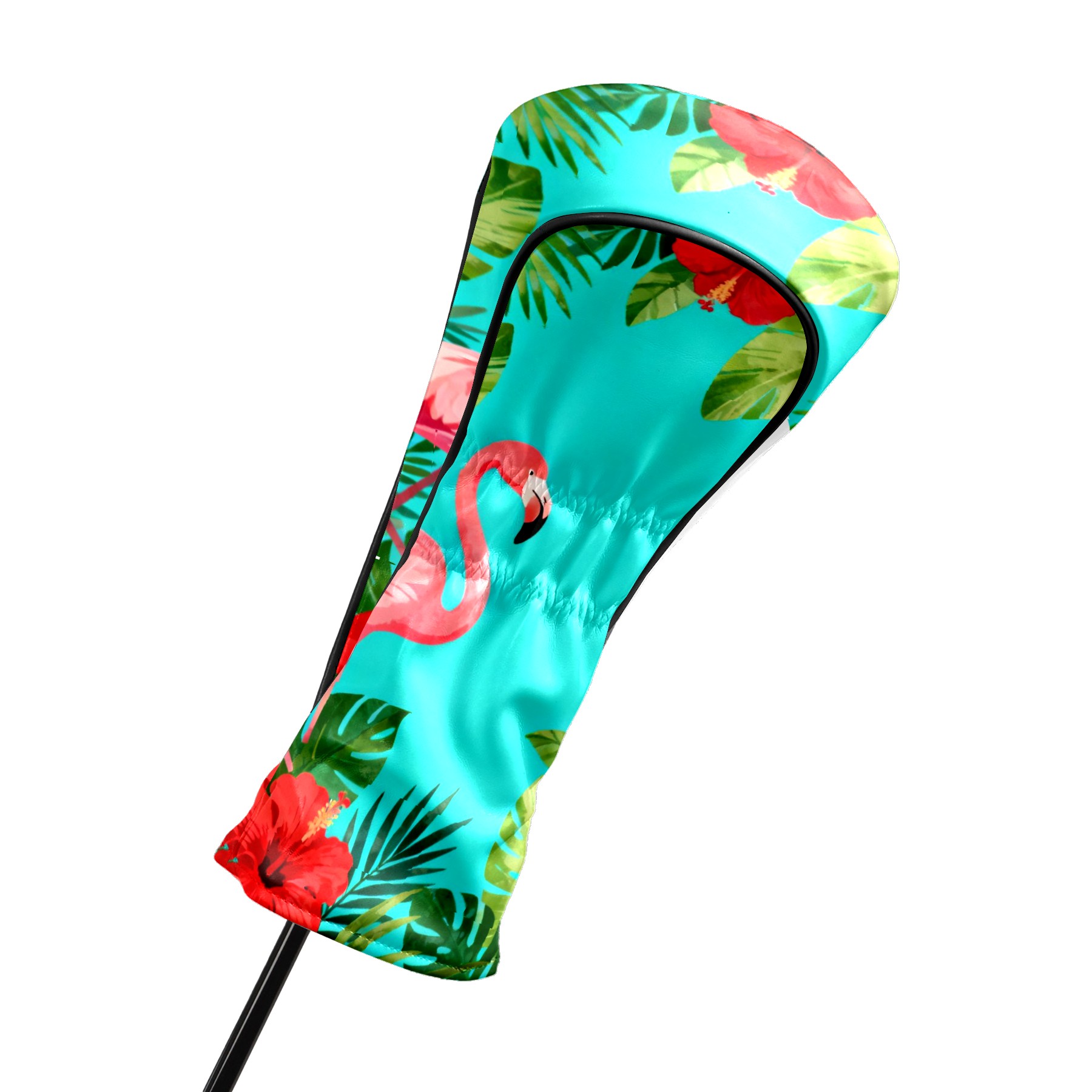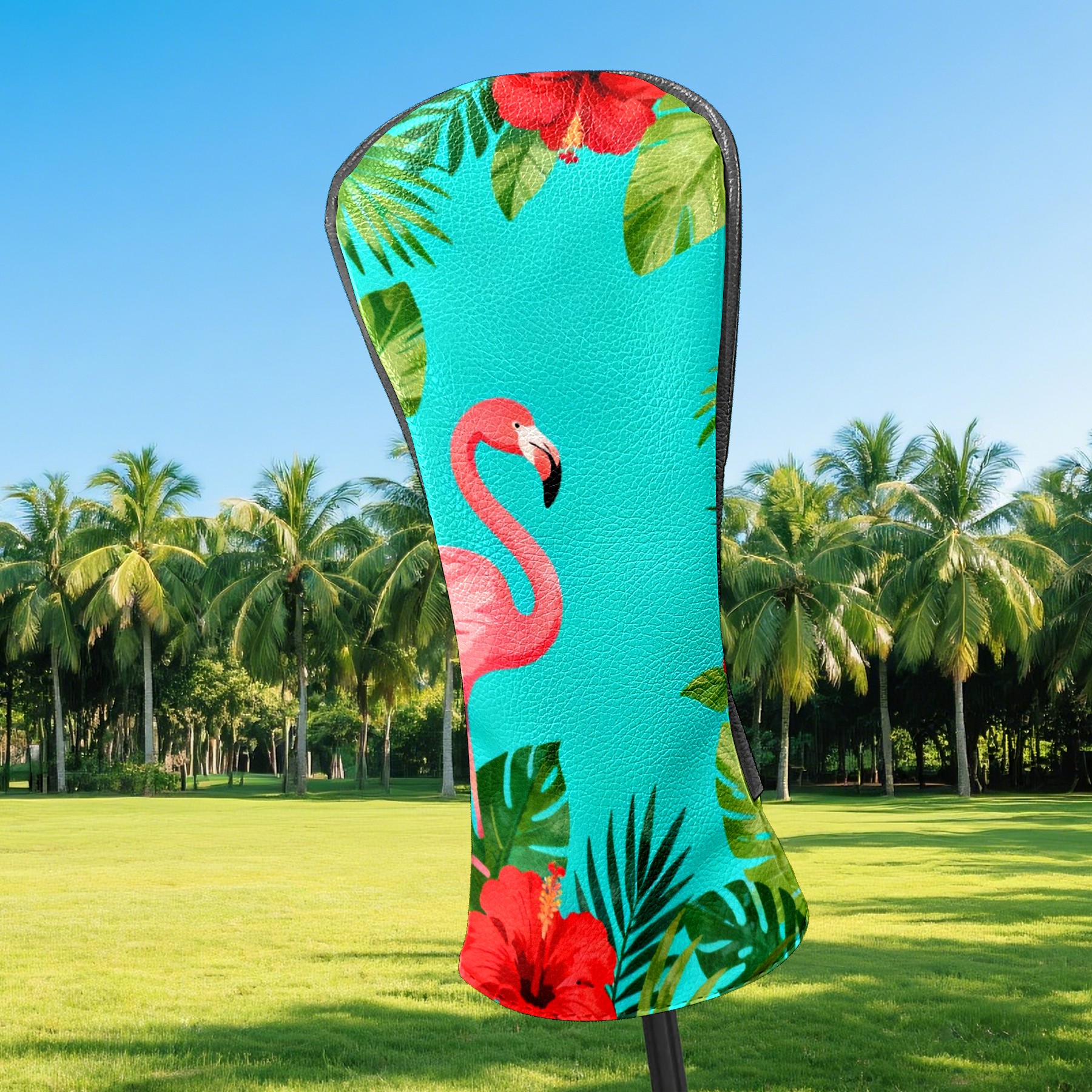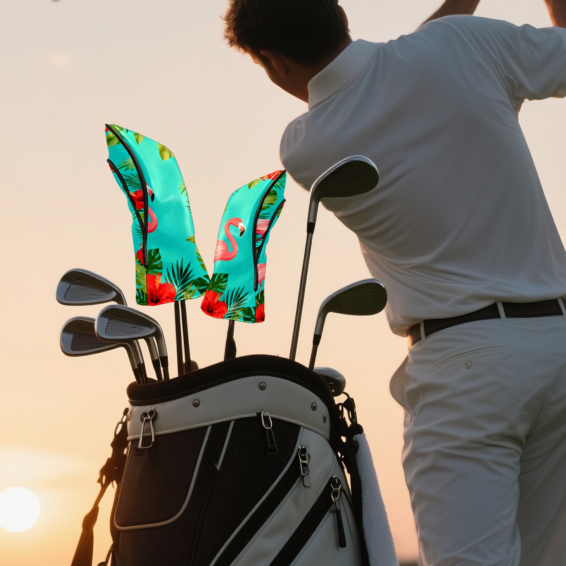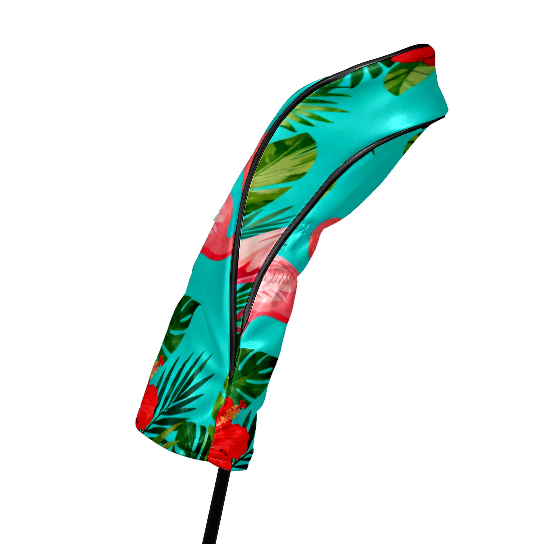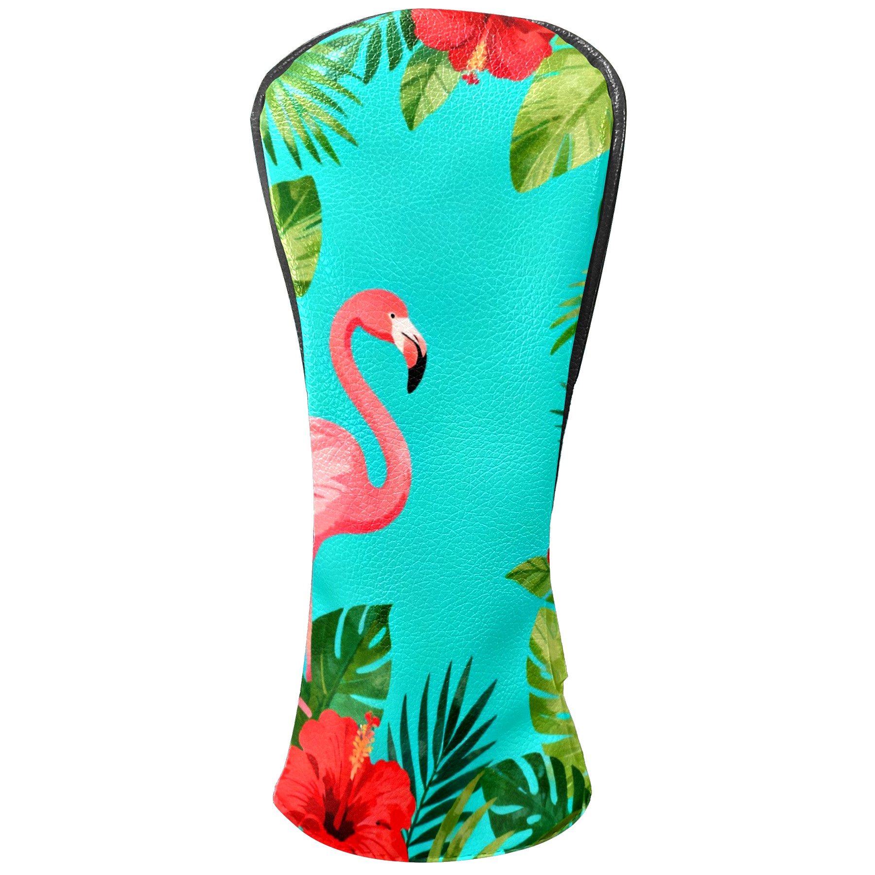 PU Leather Golf Head Covers Set – Fits Drivers/Fairway Woods/Hybrids, Ideal Gifts for Male & Female Golfers Tropical Flamingo Pattern3