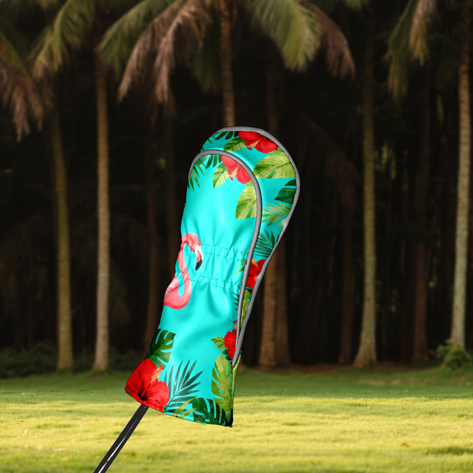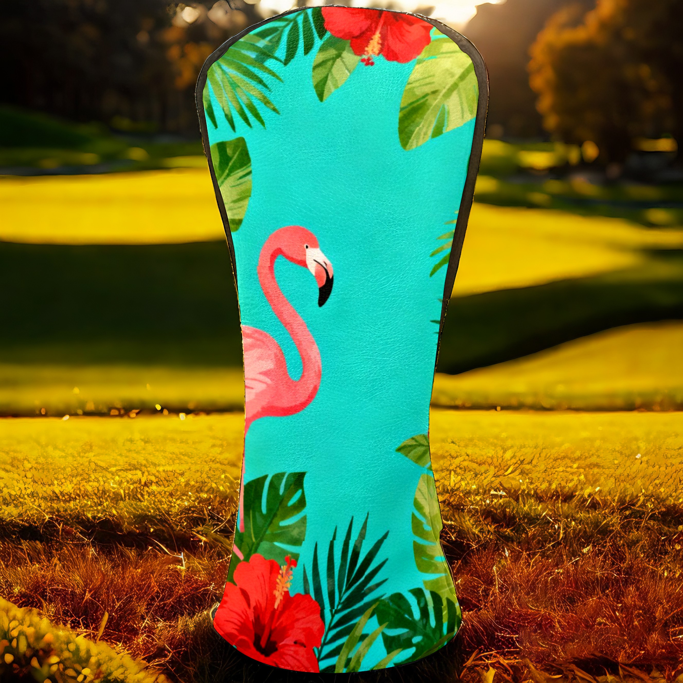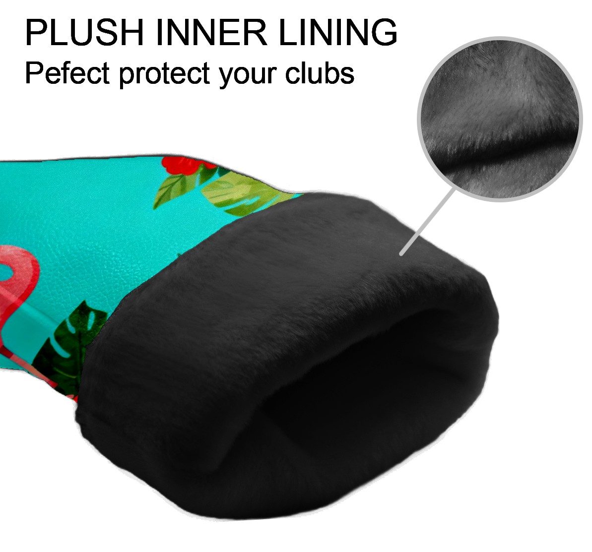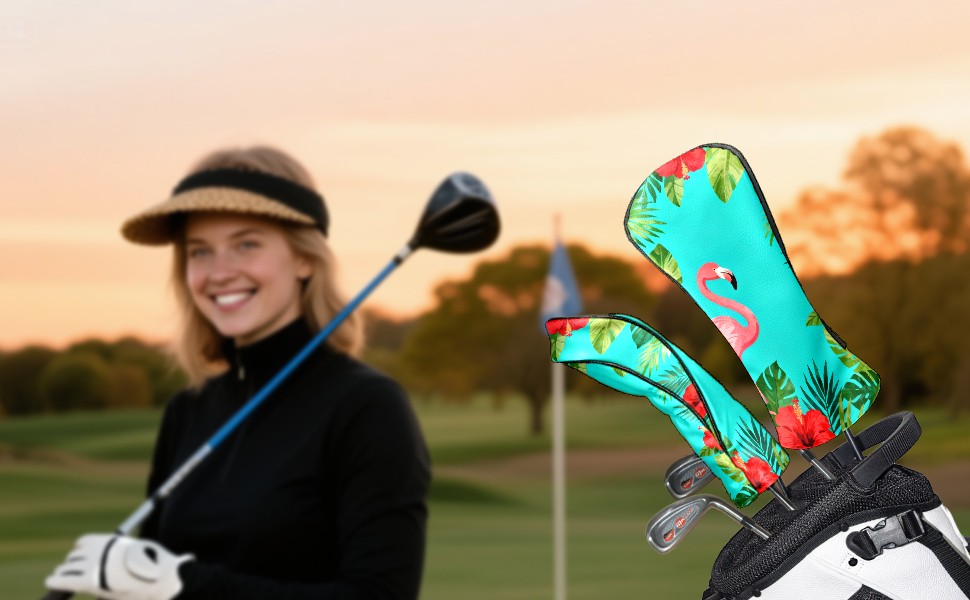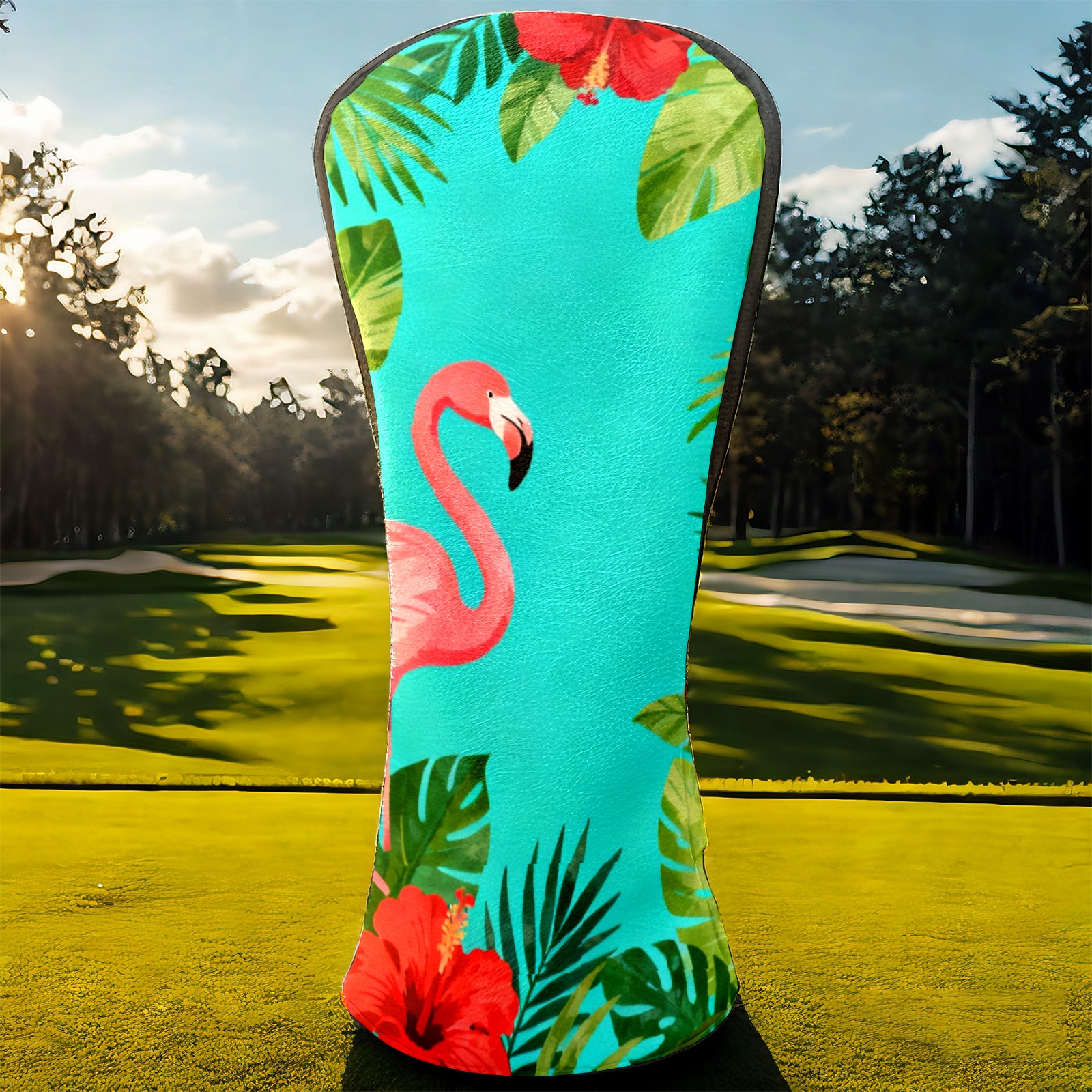 PU Leather Golf Head Covers Set – Fits Drivers/Fairway Woods/Hybrids, Ideal Gifts for Male & Female Golfers Tropical Flamingo Pattern3
