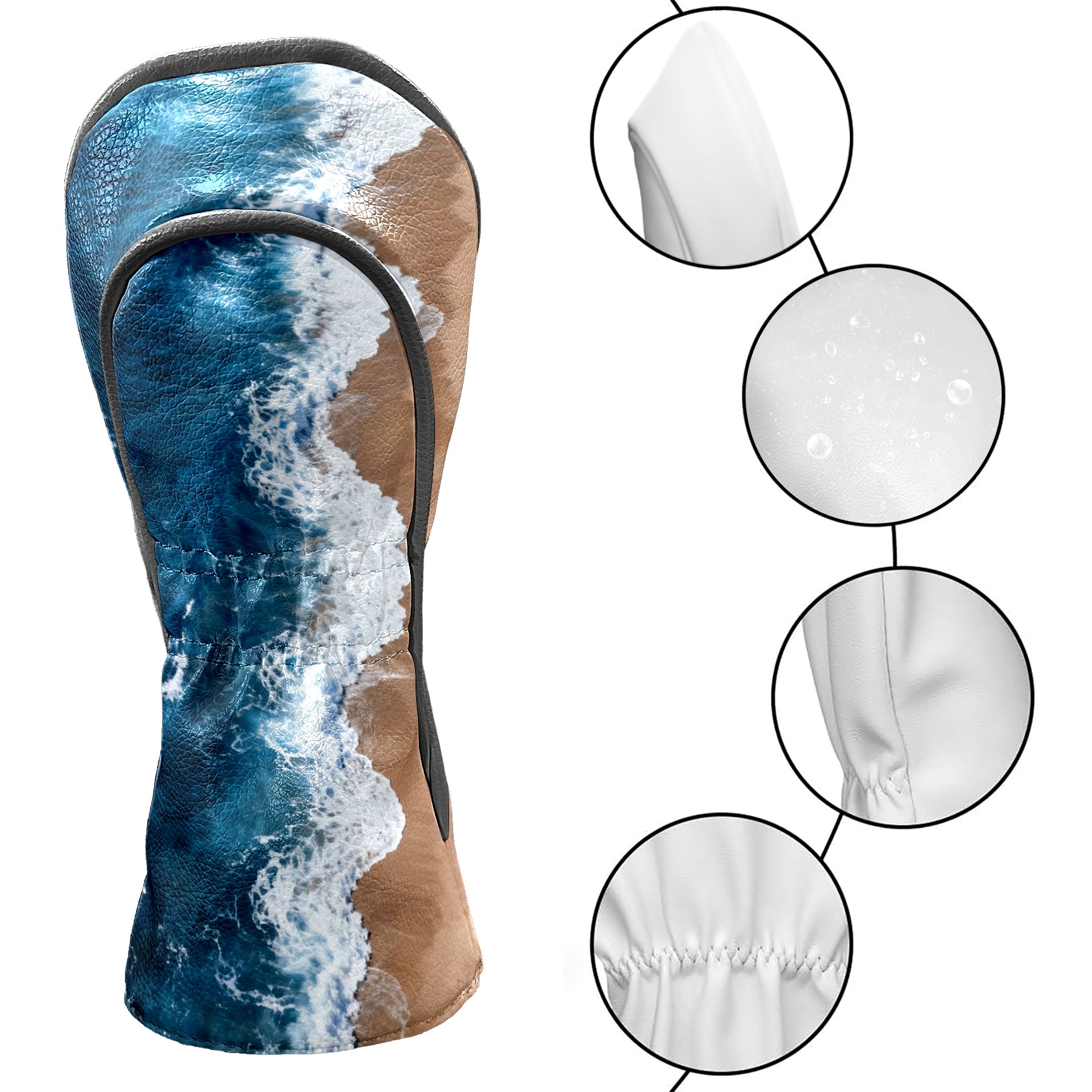 PU Leather Golf Head Covers Set – Fits Drivers/Fairway Woods/Hybrids, Ideal Gifts for Male & Female Golfers Wave Pattern1